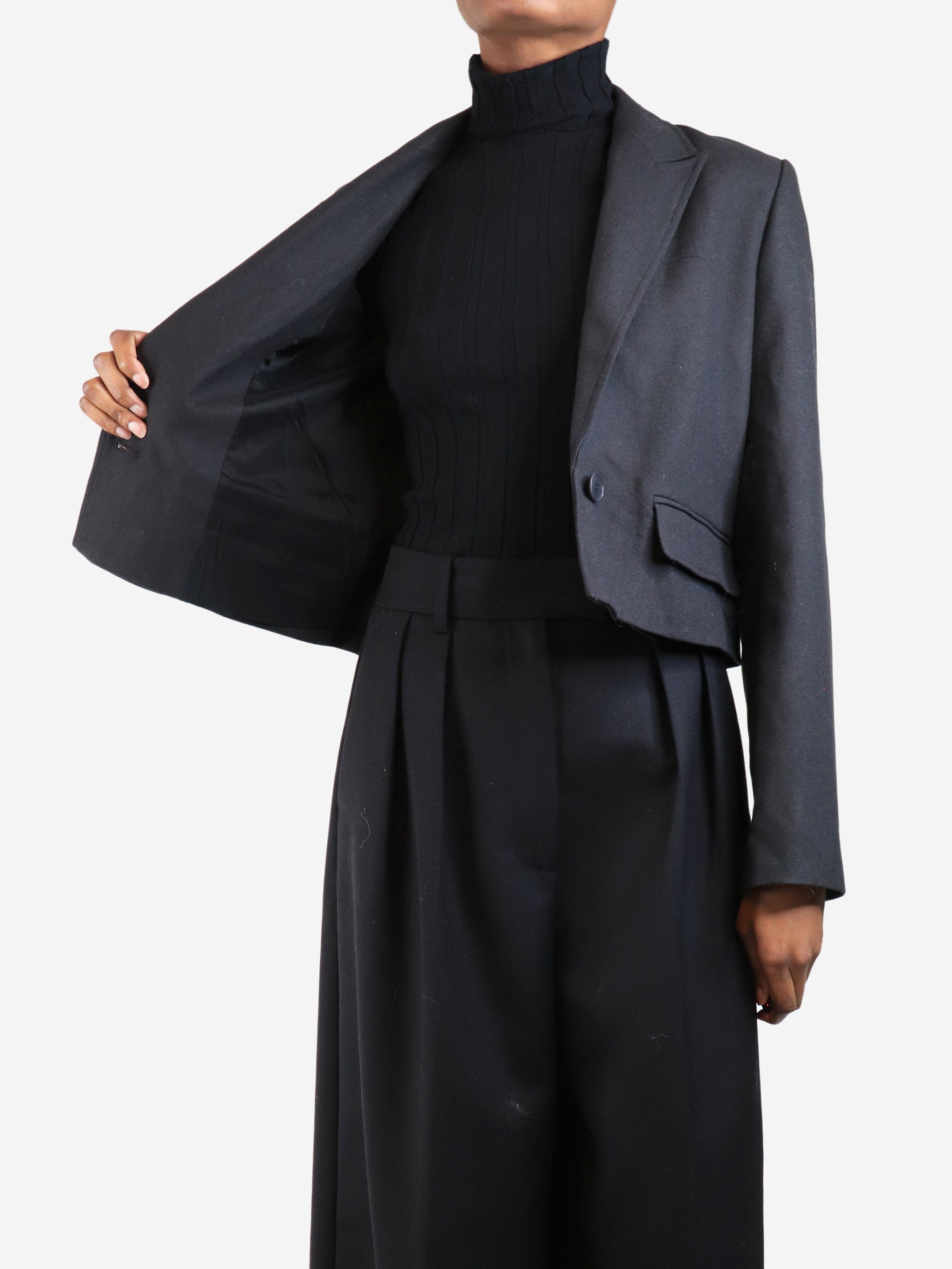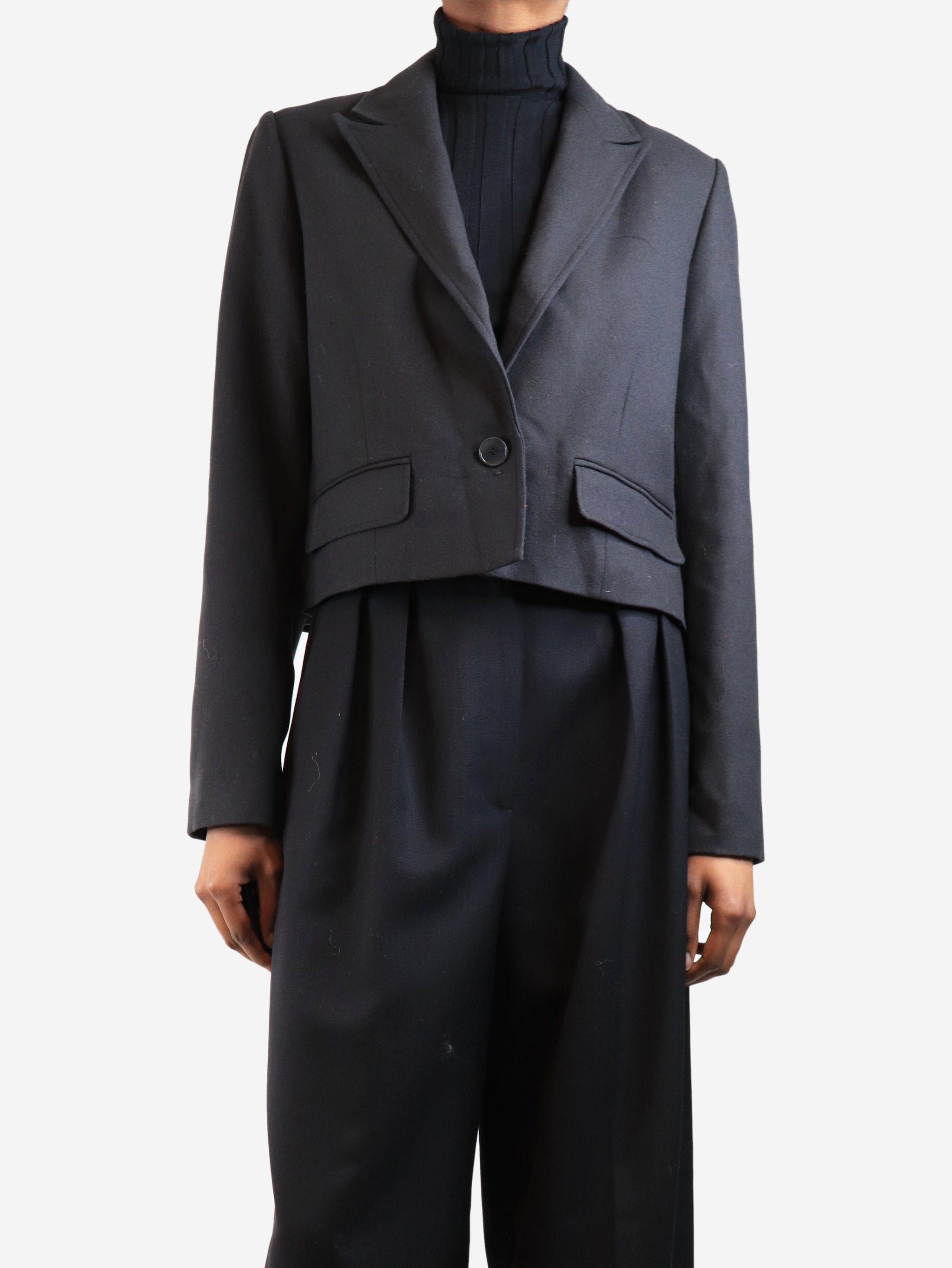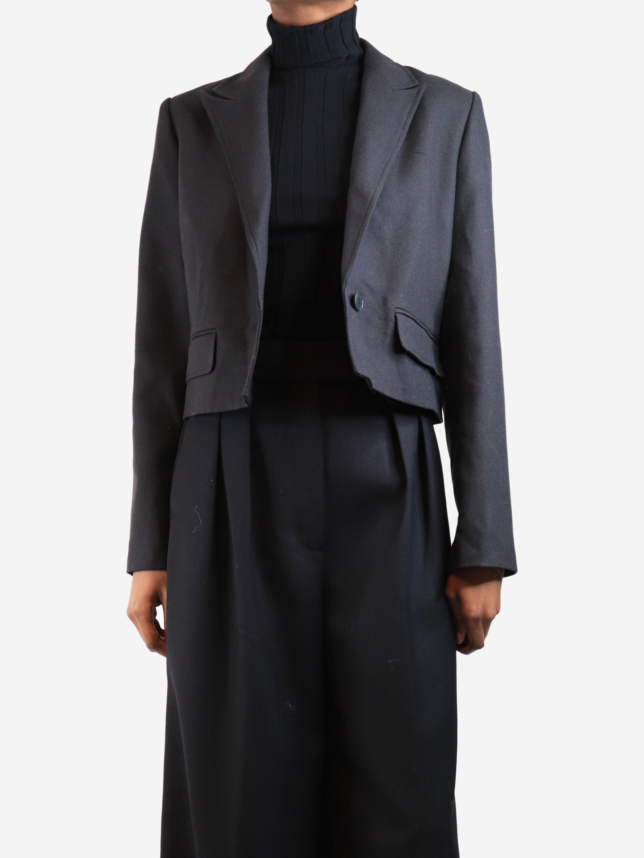 Dark smoke cropped wool blazer - size UK 6