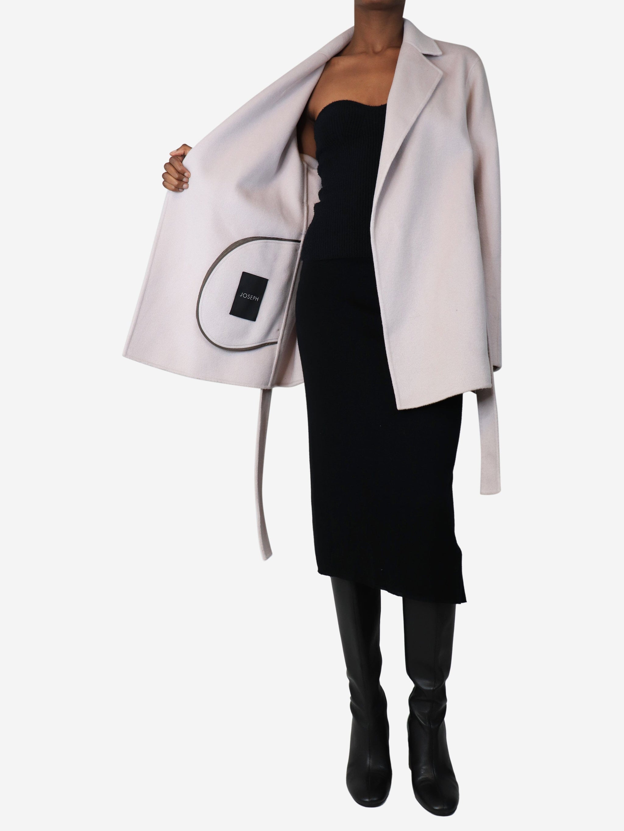Dusty pink belted wool and cashmere-blend coat - size UK 6
