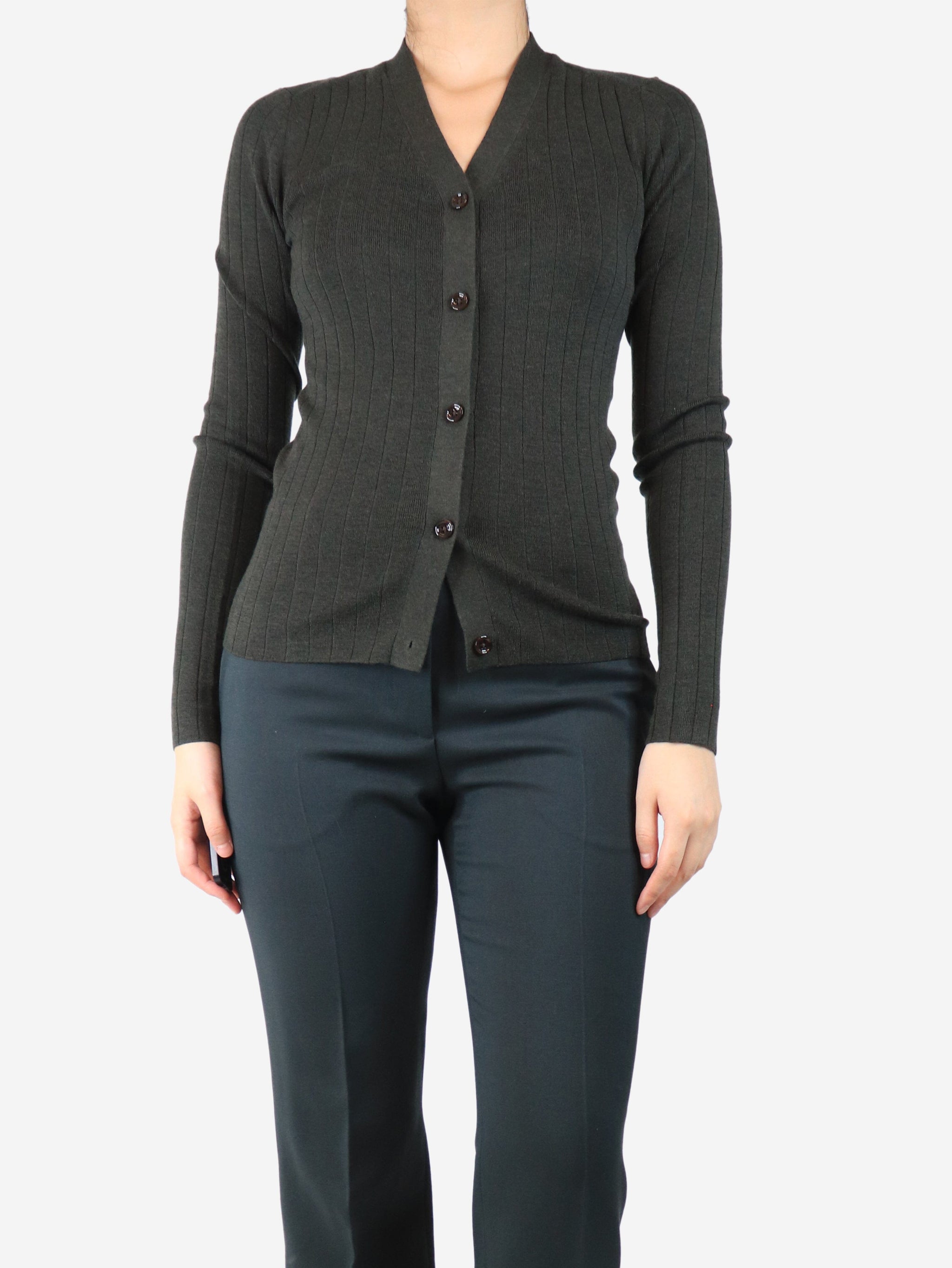 Khaki fine merino ribbed cardigan - size S