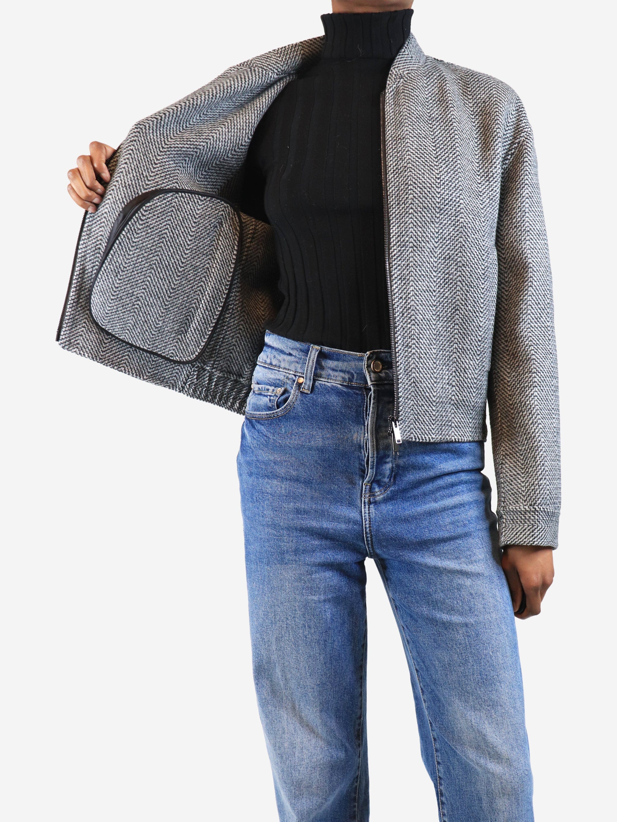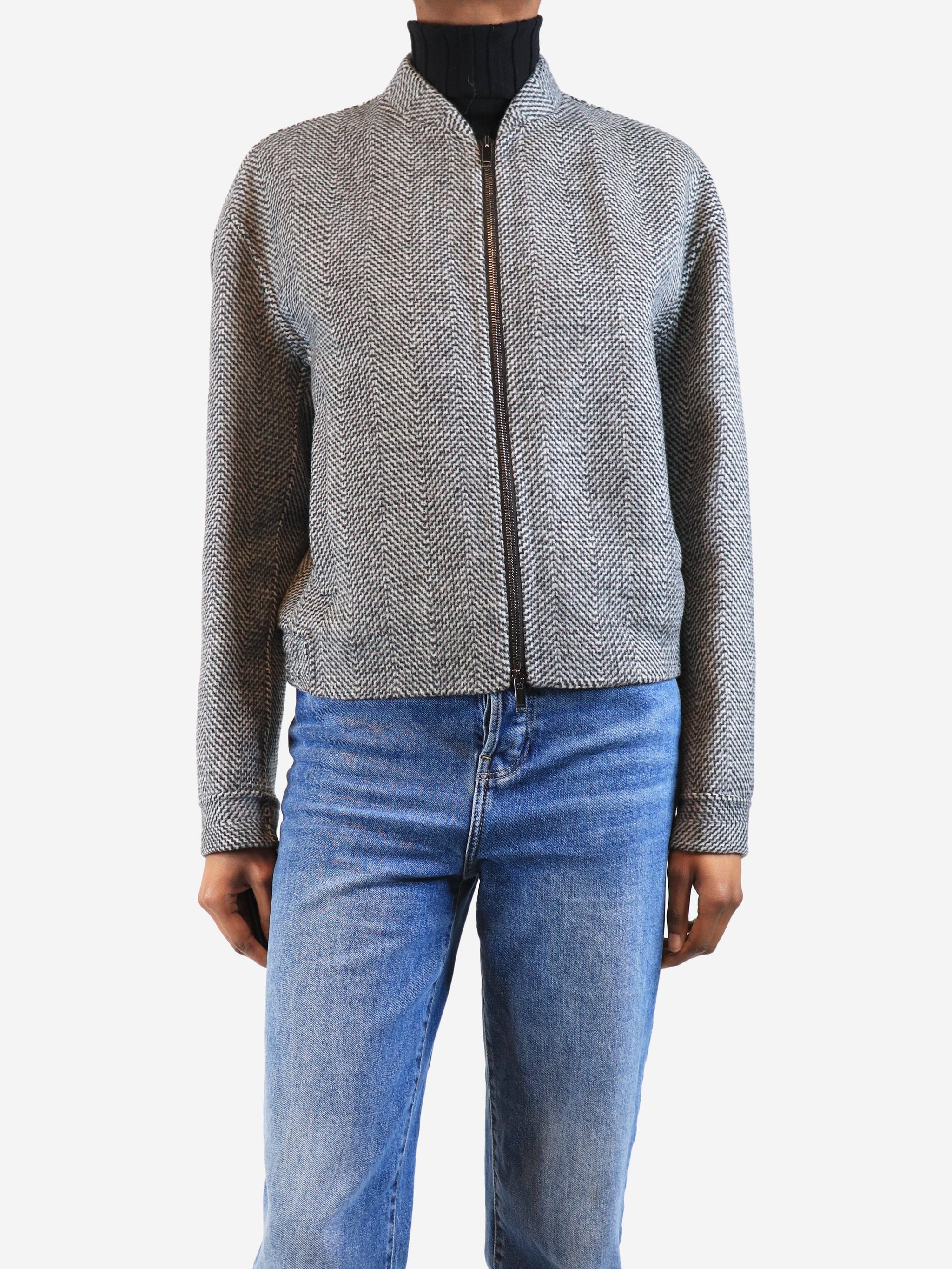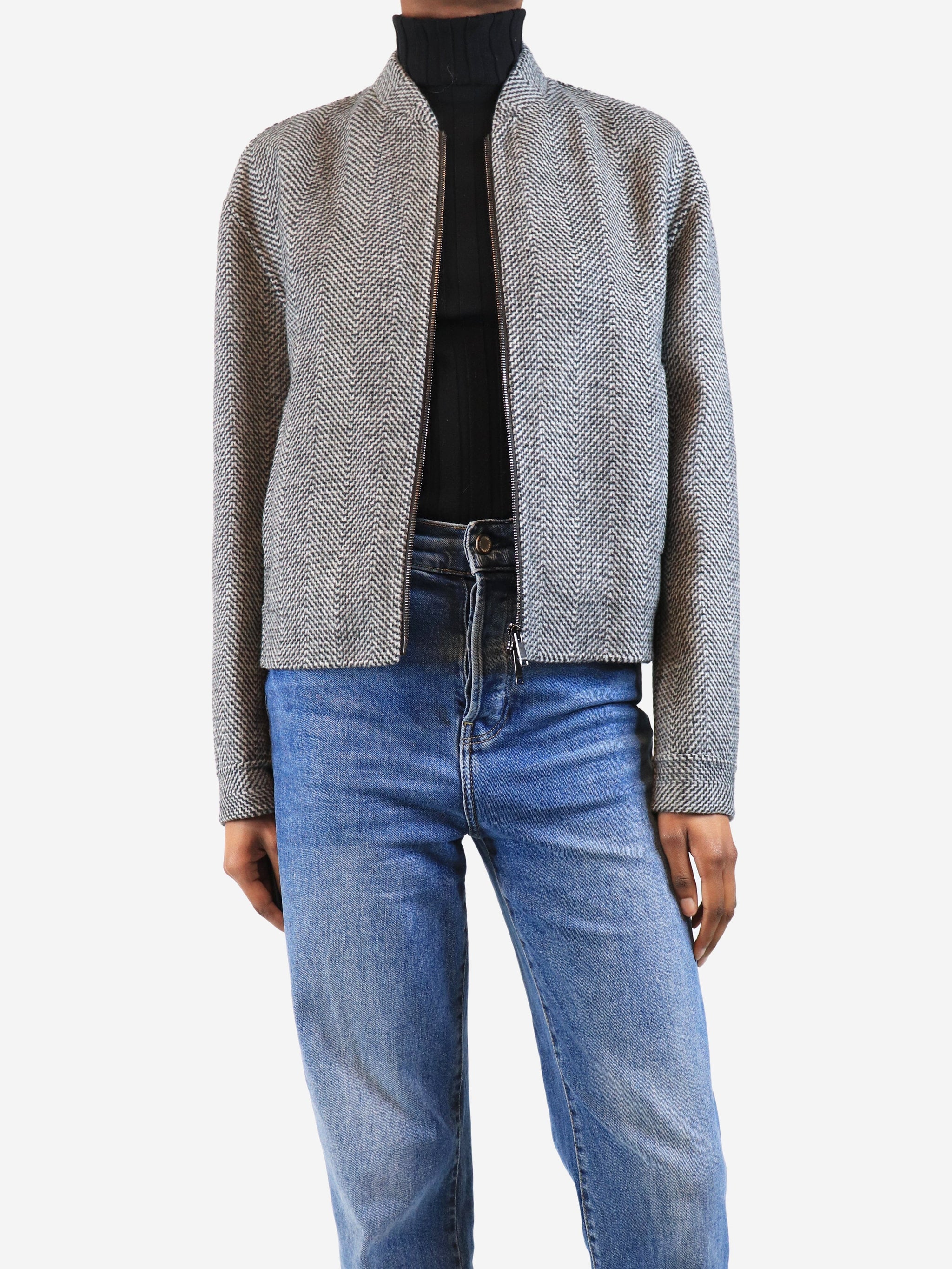 Smoke grey Herringbone double-face wool jacket - size UK 6