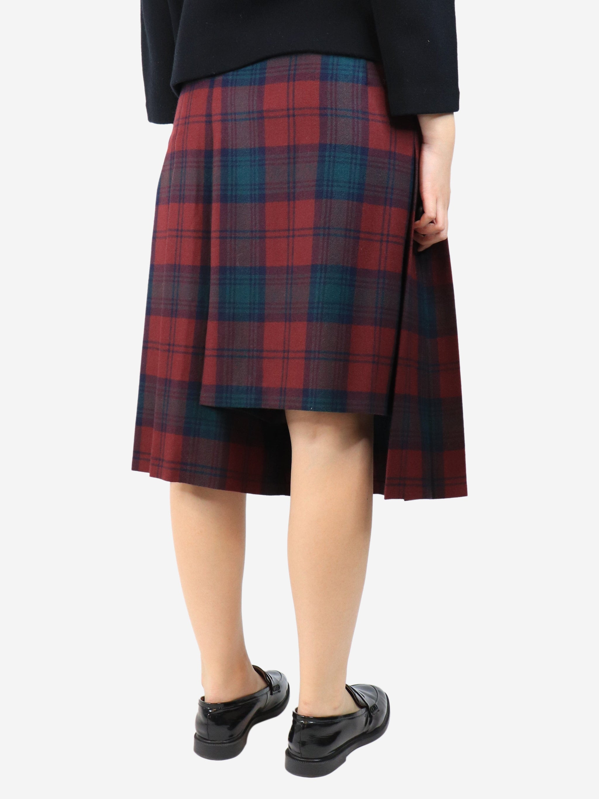 Red tartan pleated midi skirt - size L