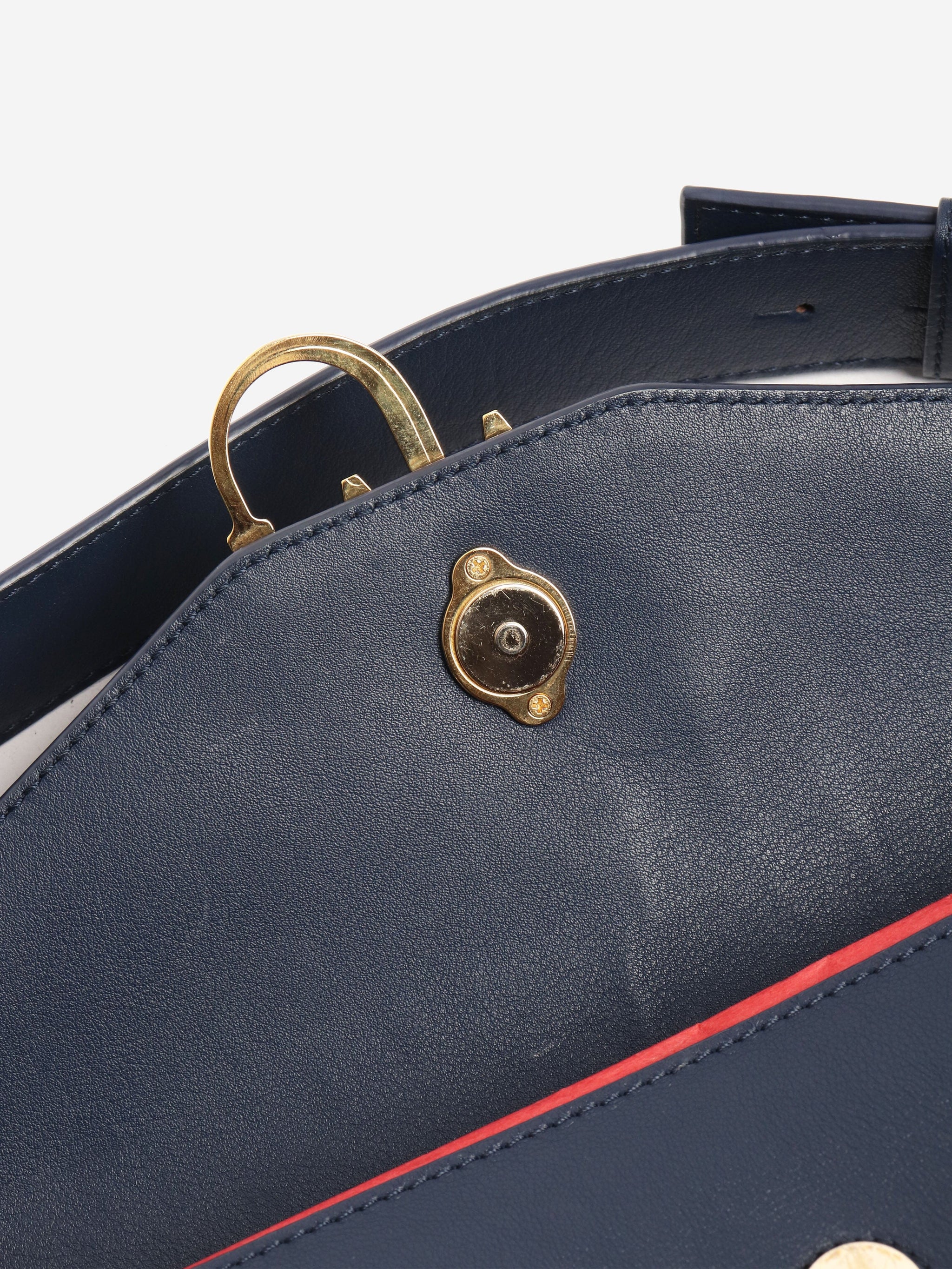 Navy leather logo shoulder bag