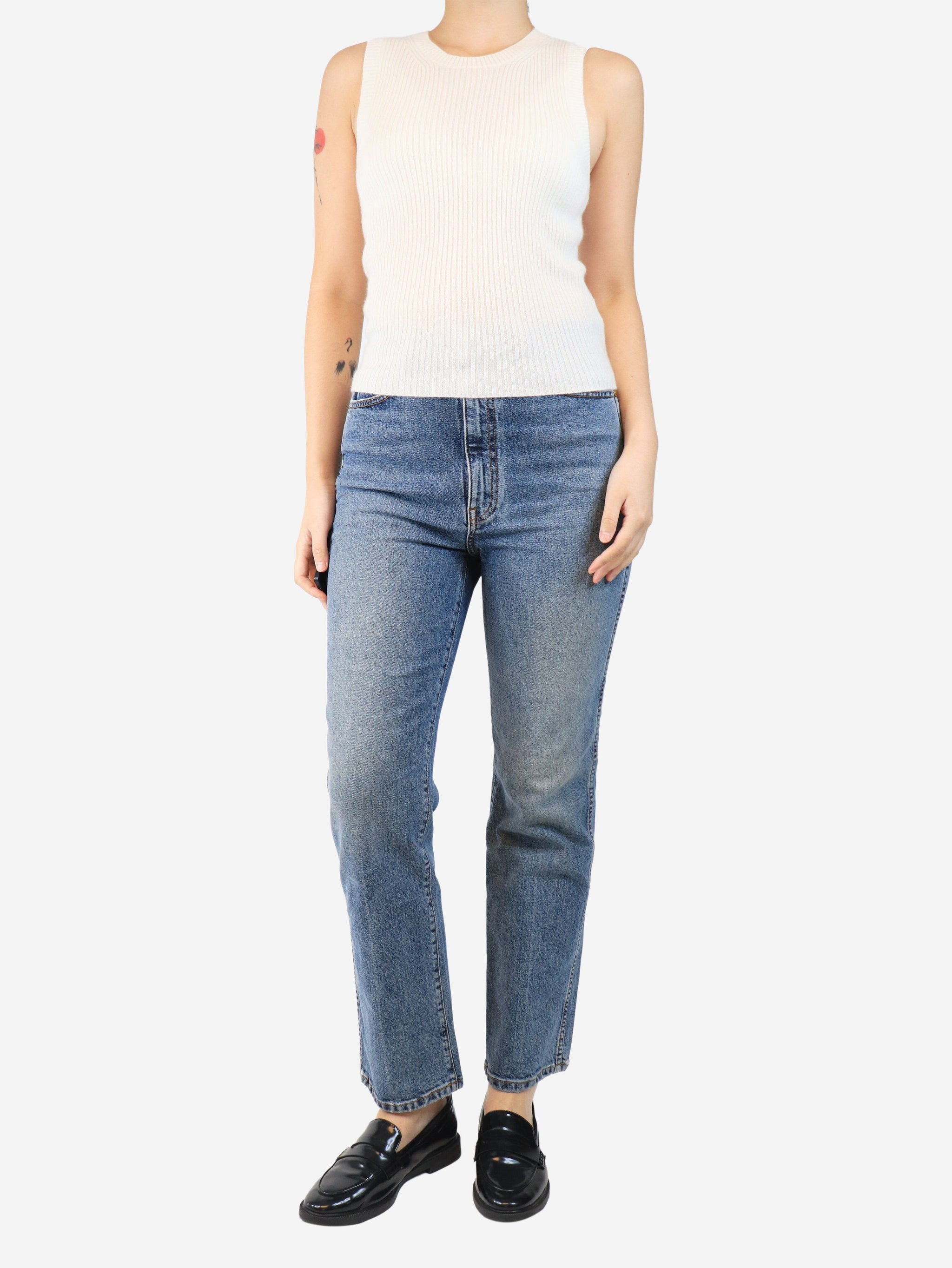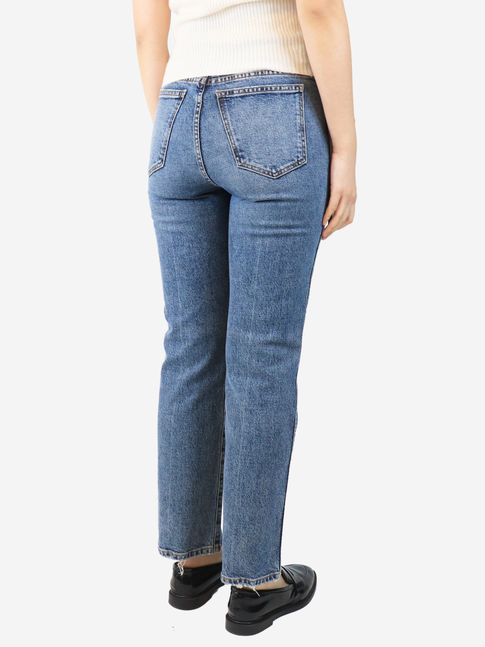 Blue light wash ribcage jeans - size UK 10