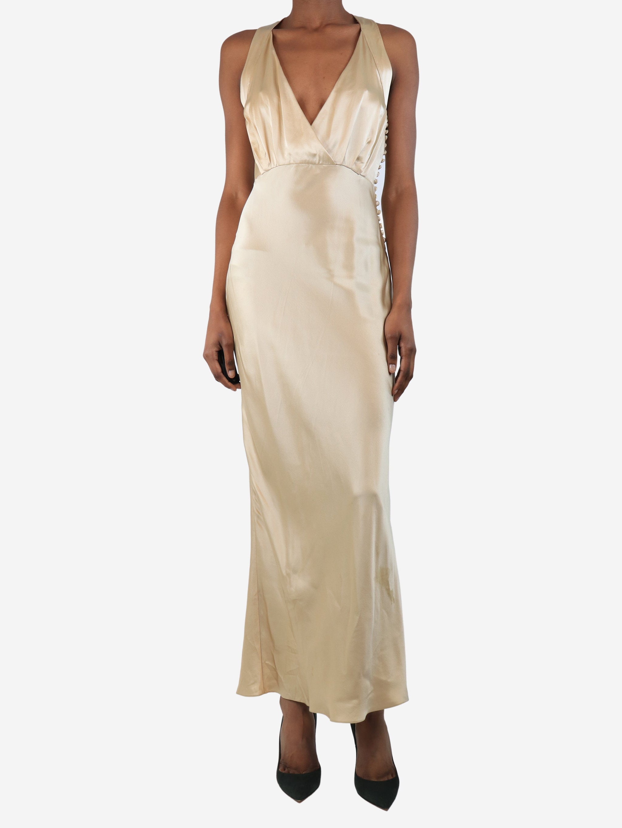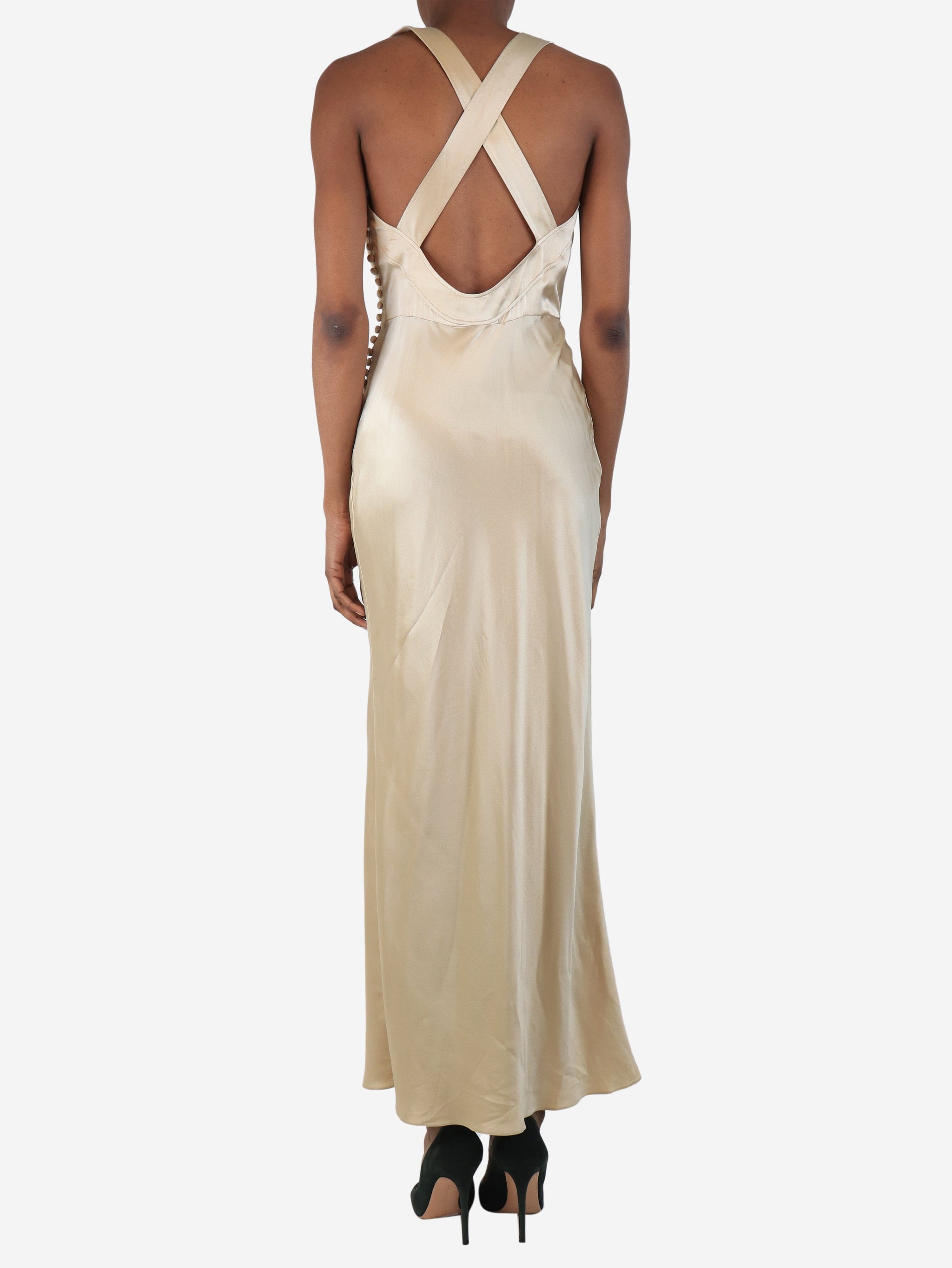 Gold silk midi slip dress - size UK 6