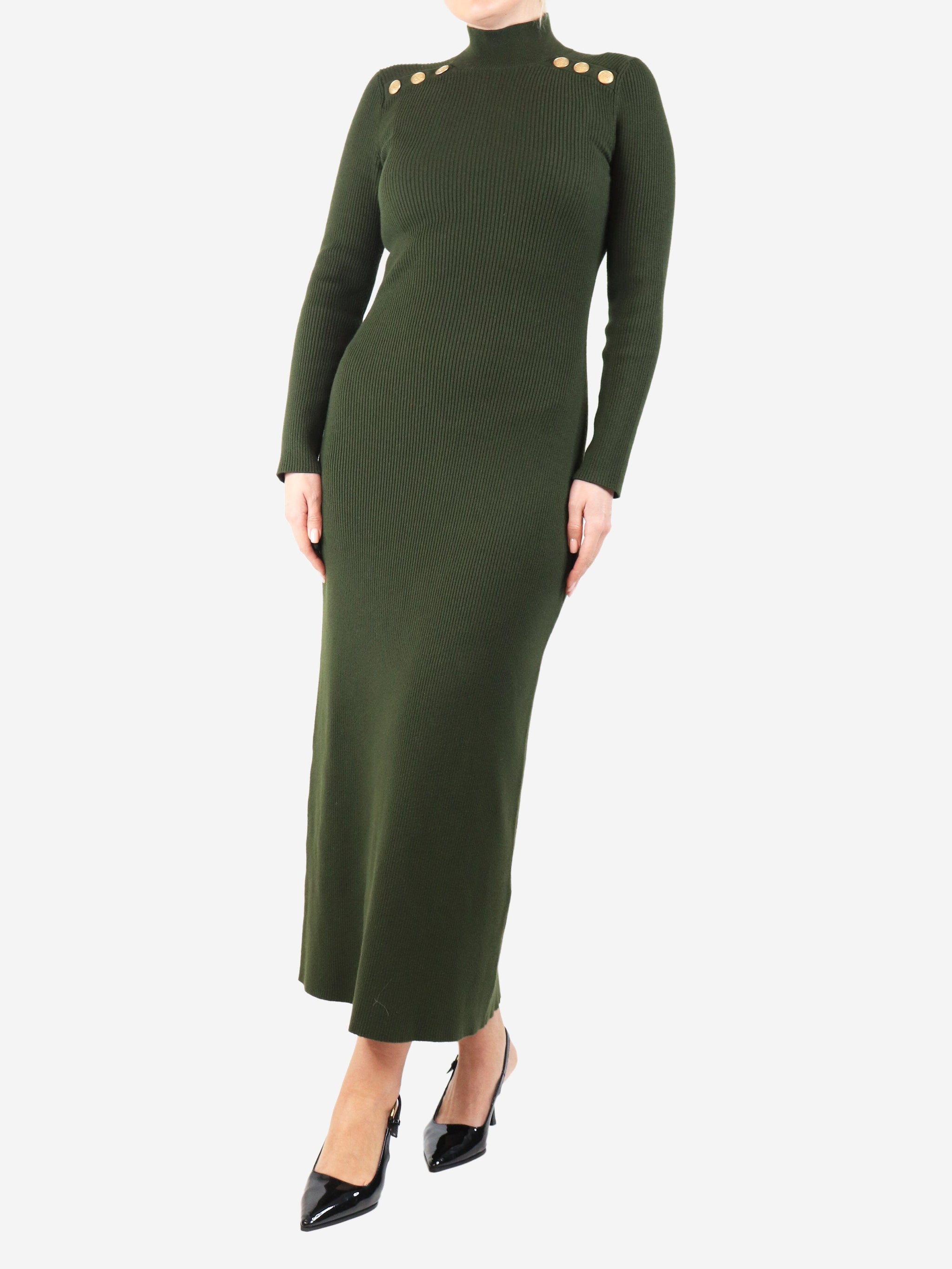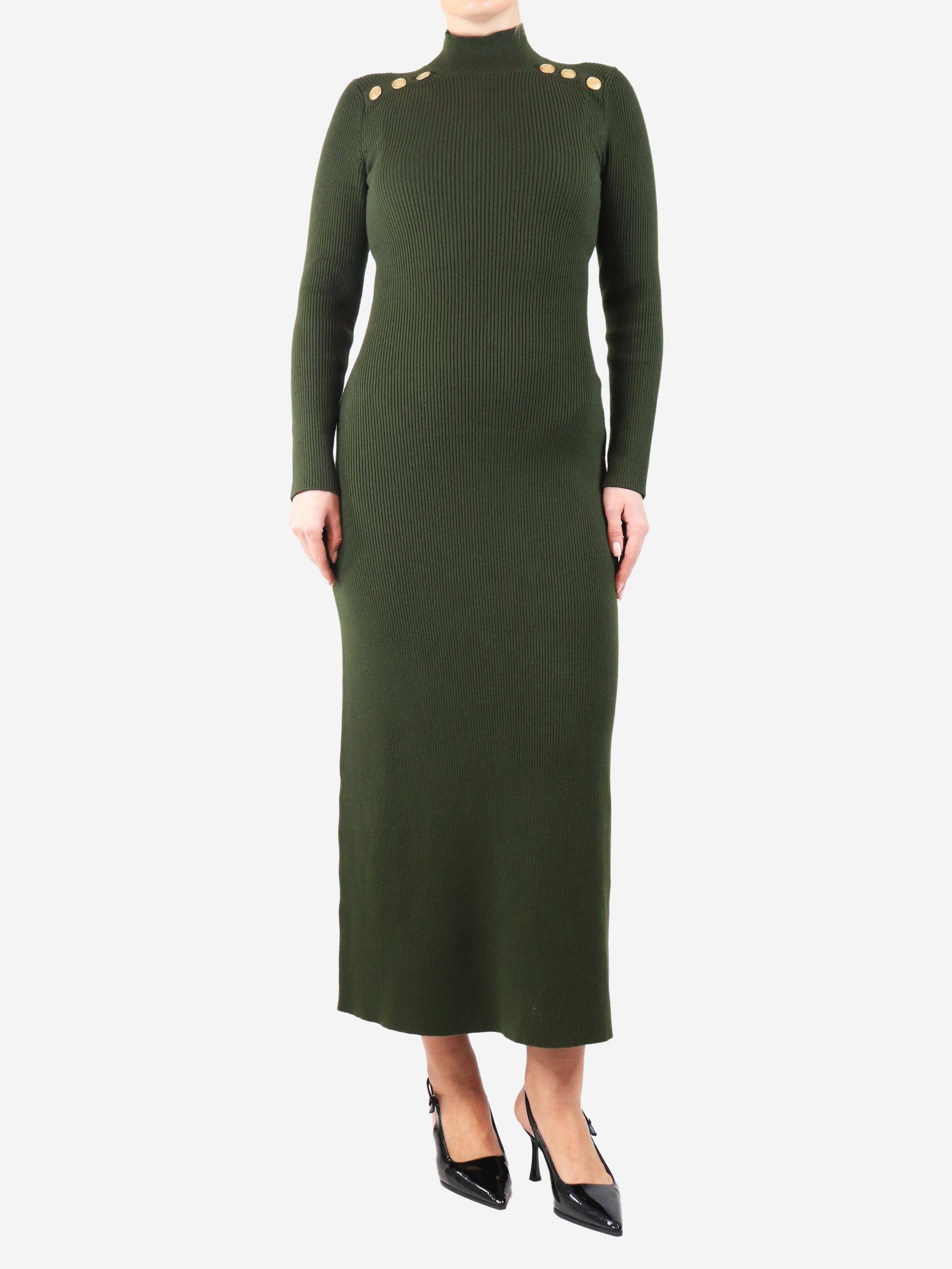 Dark green rib-knit midi dress - size S