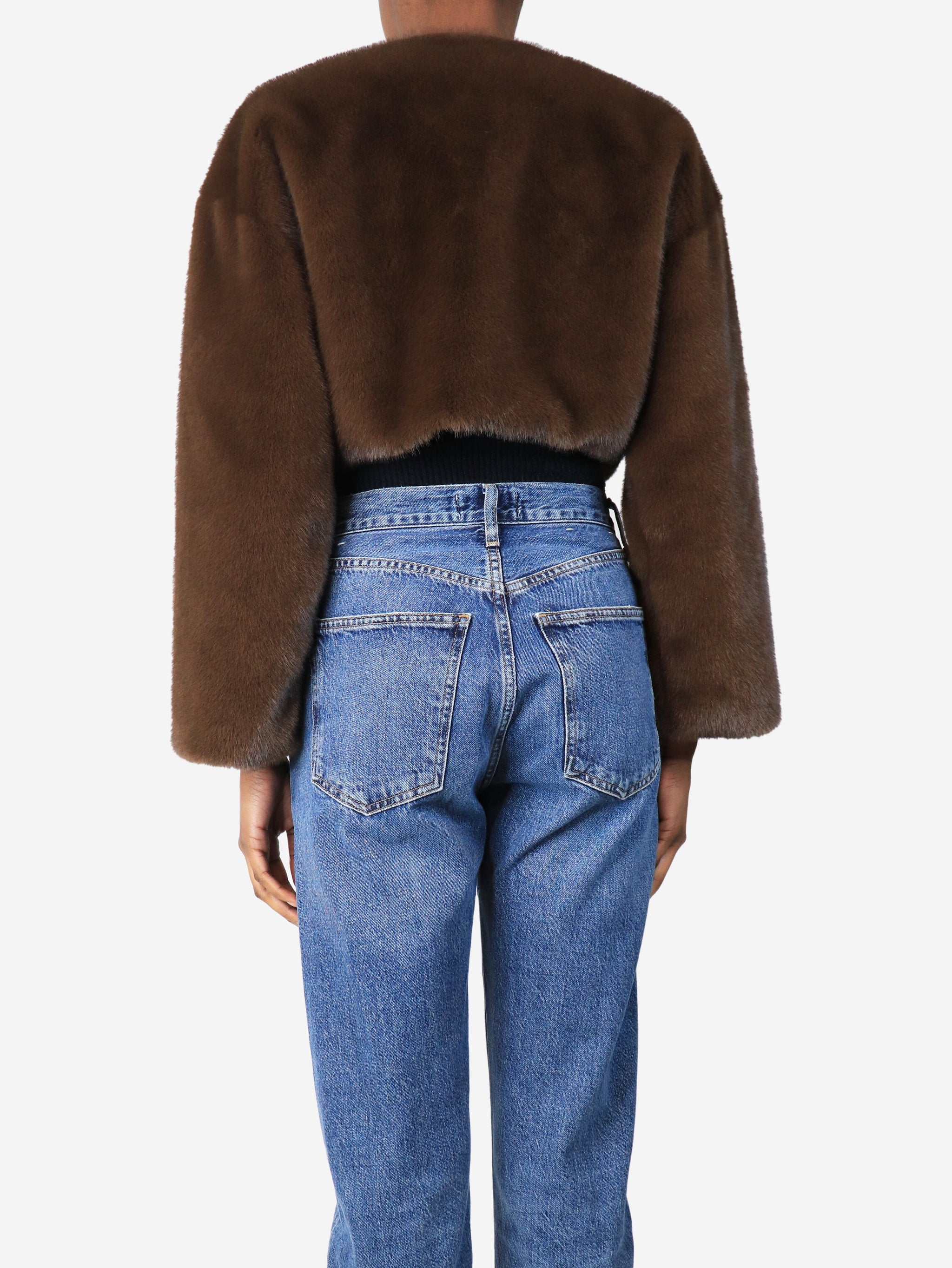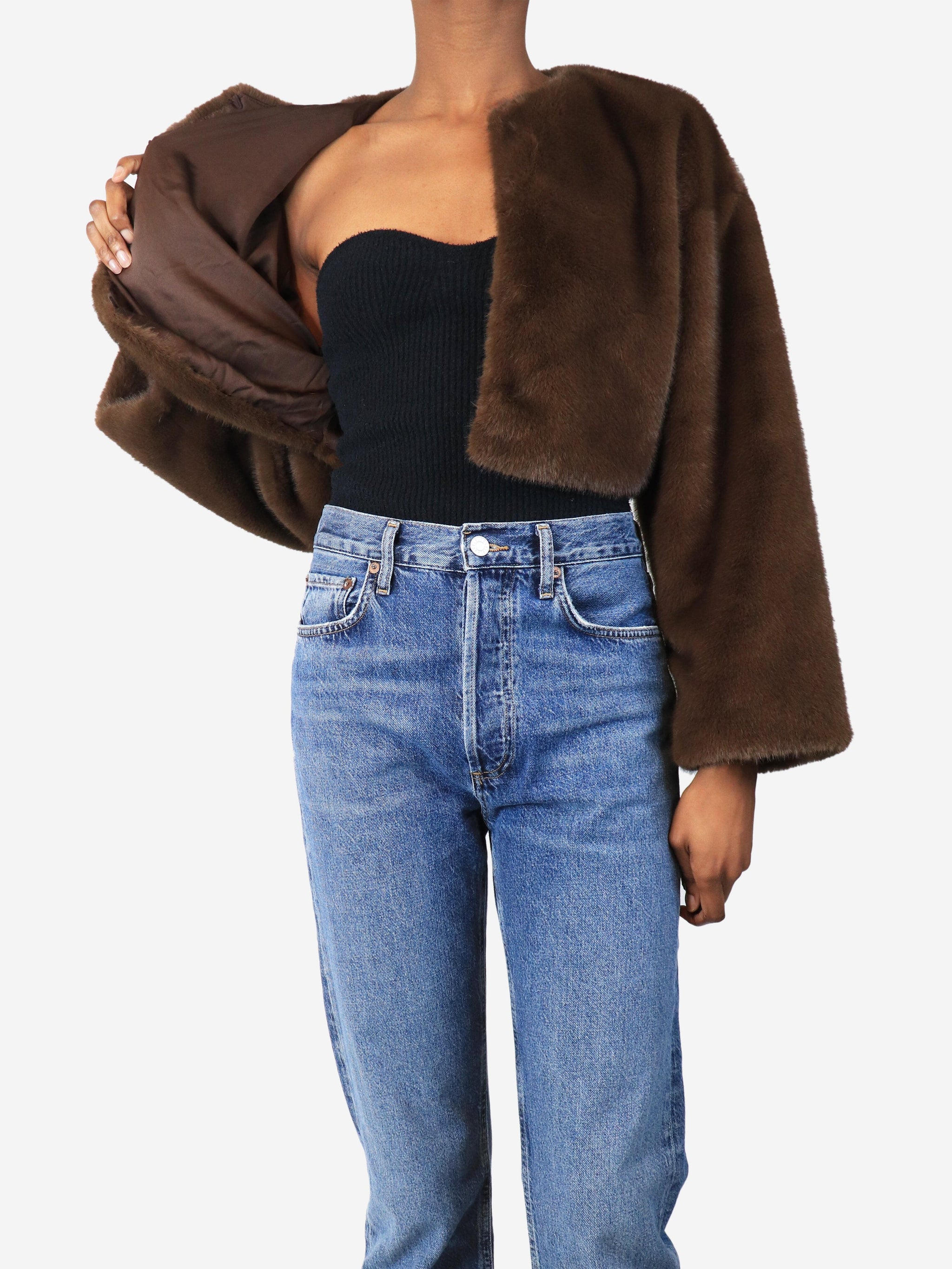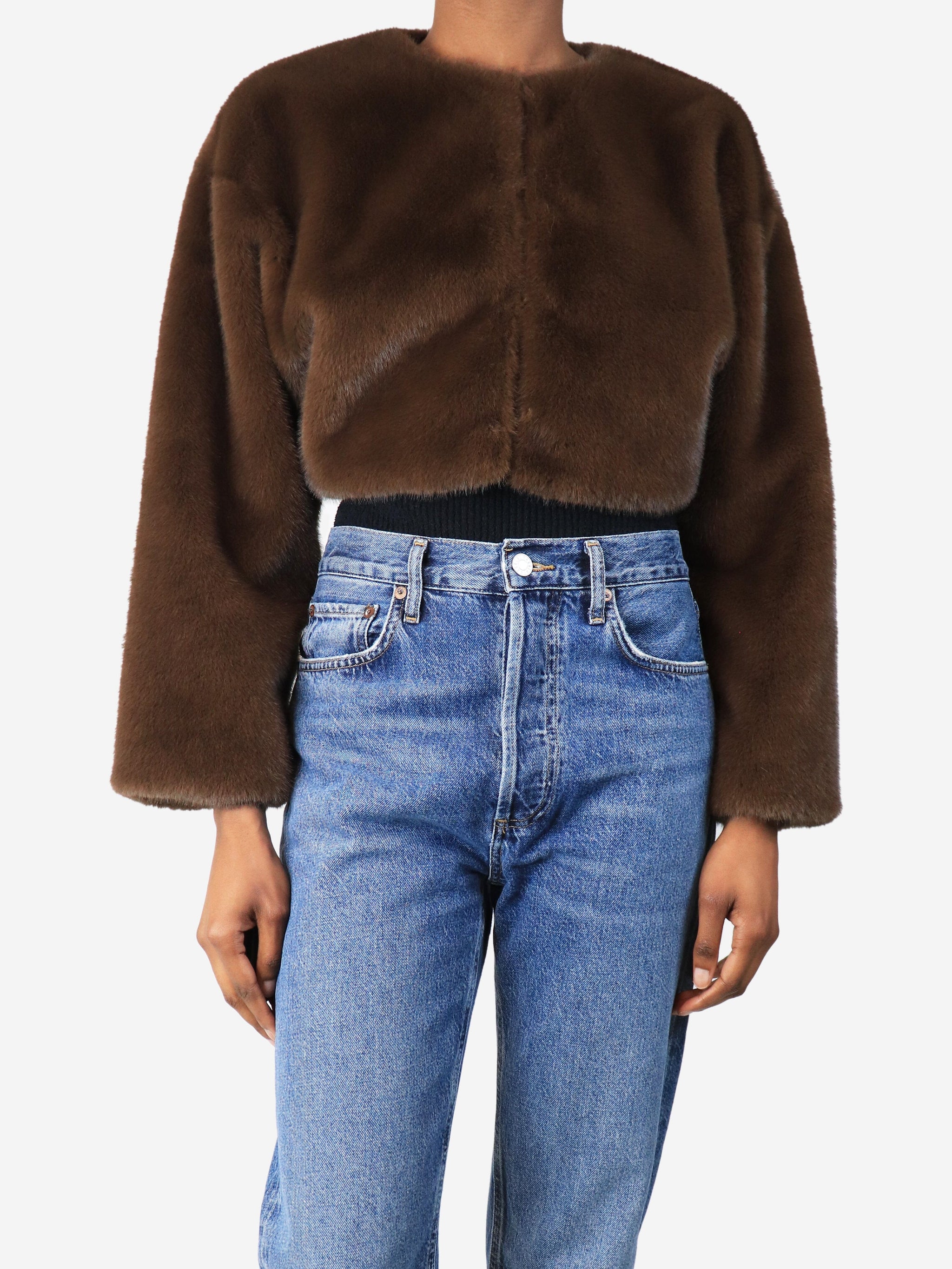 Walnut faux fur cropped jacket - size S