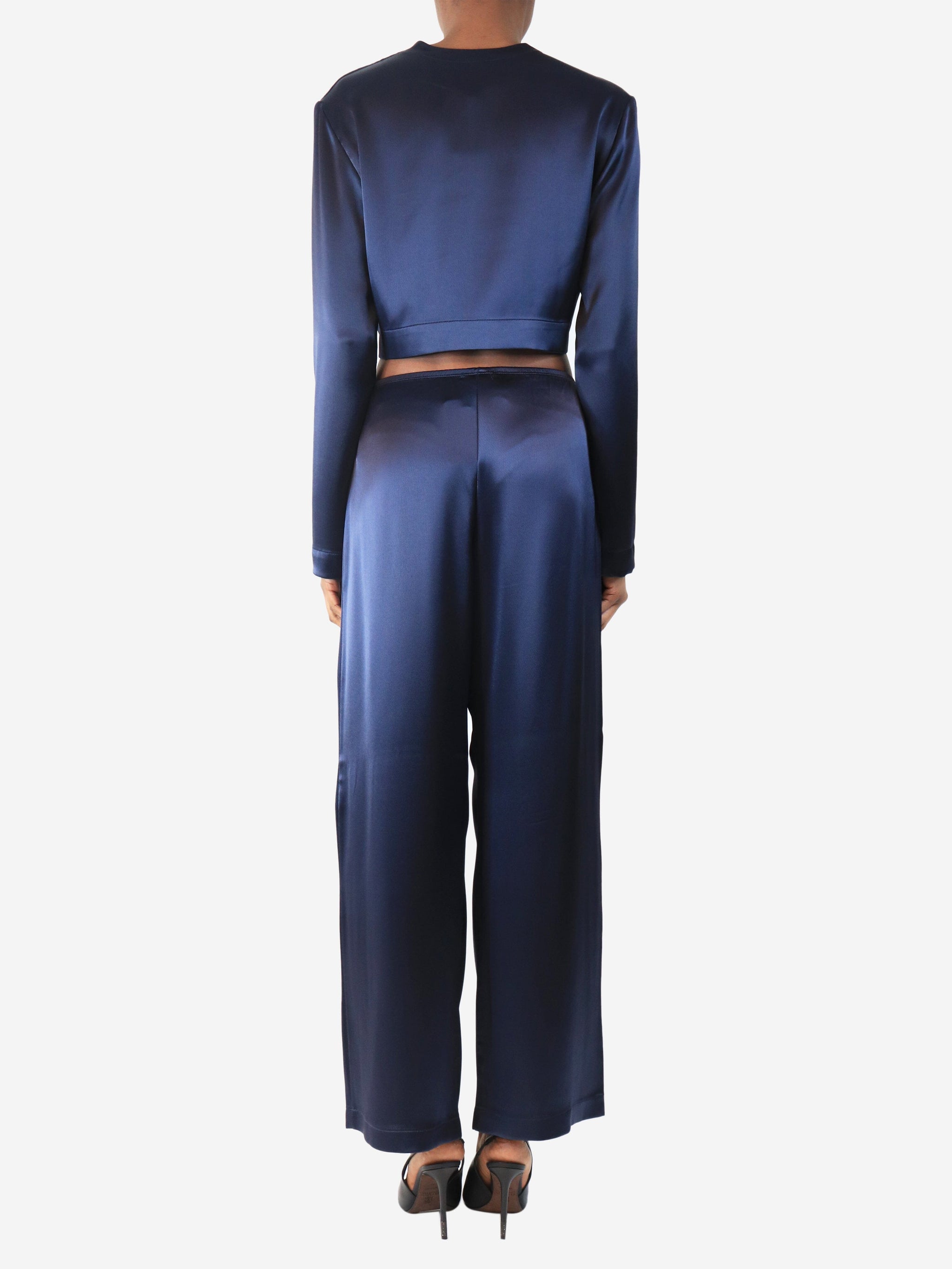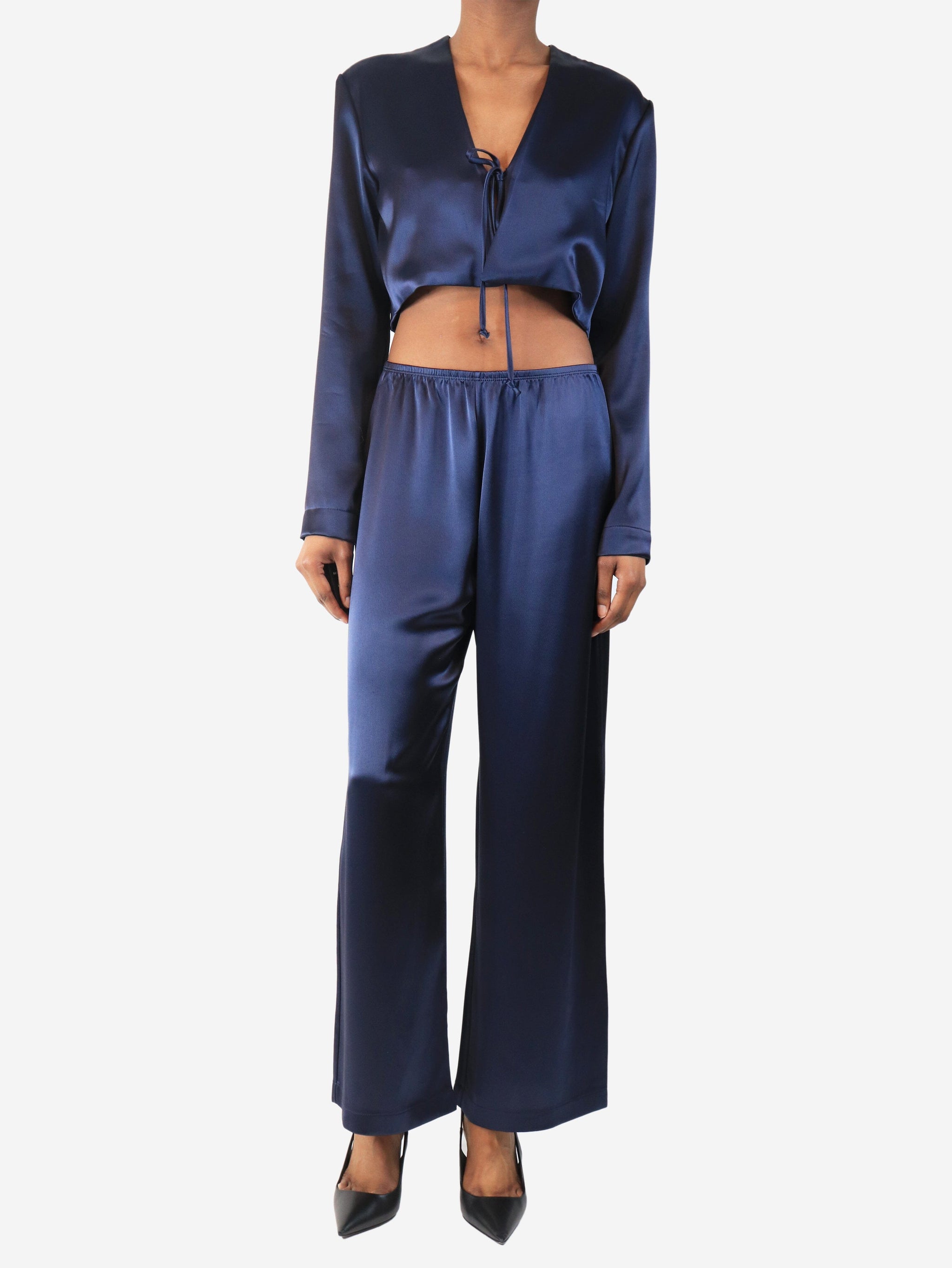 Navy satin two piece - size XS
