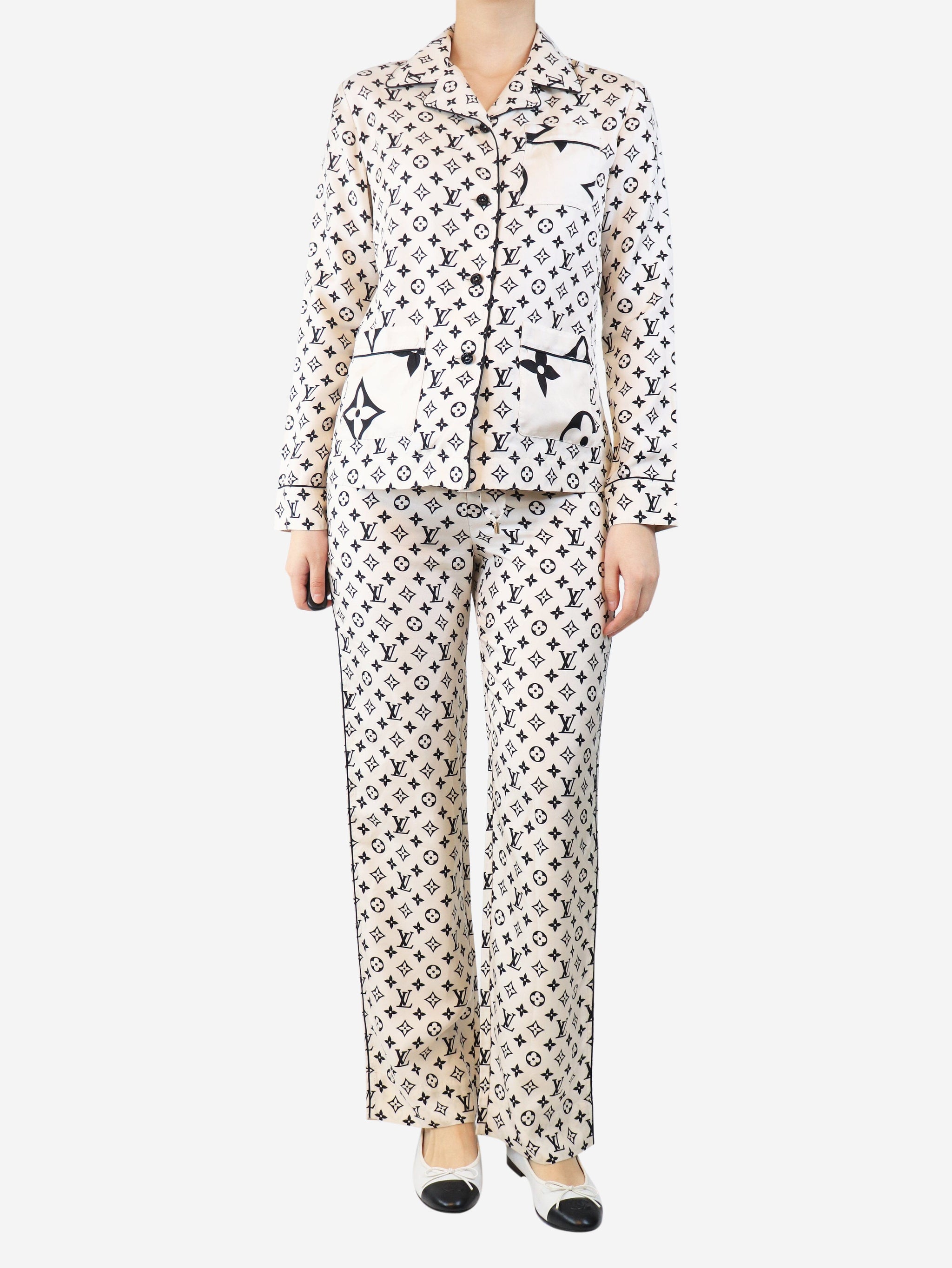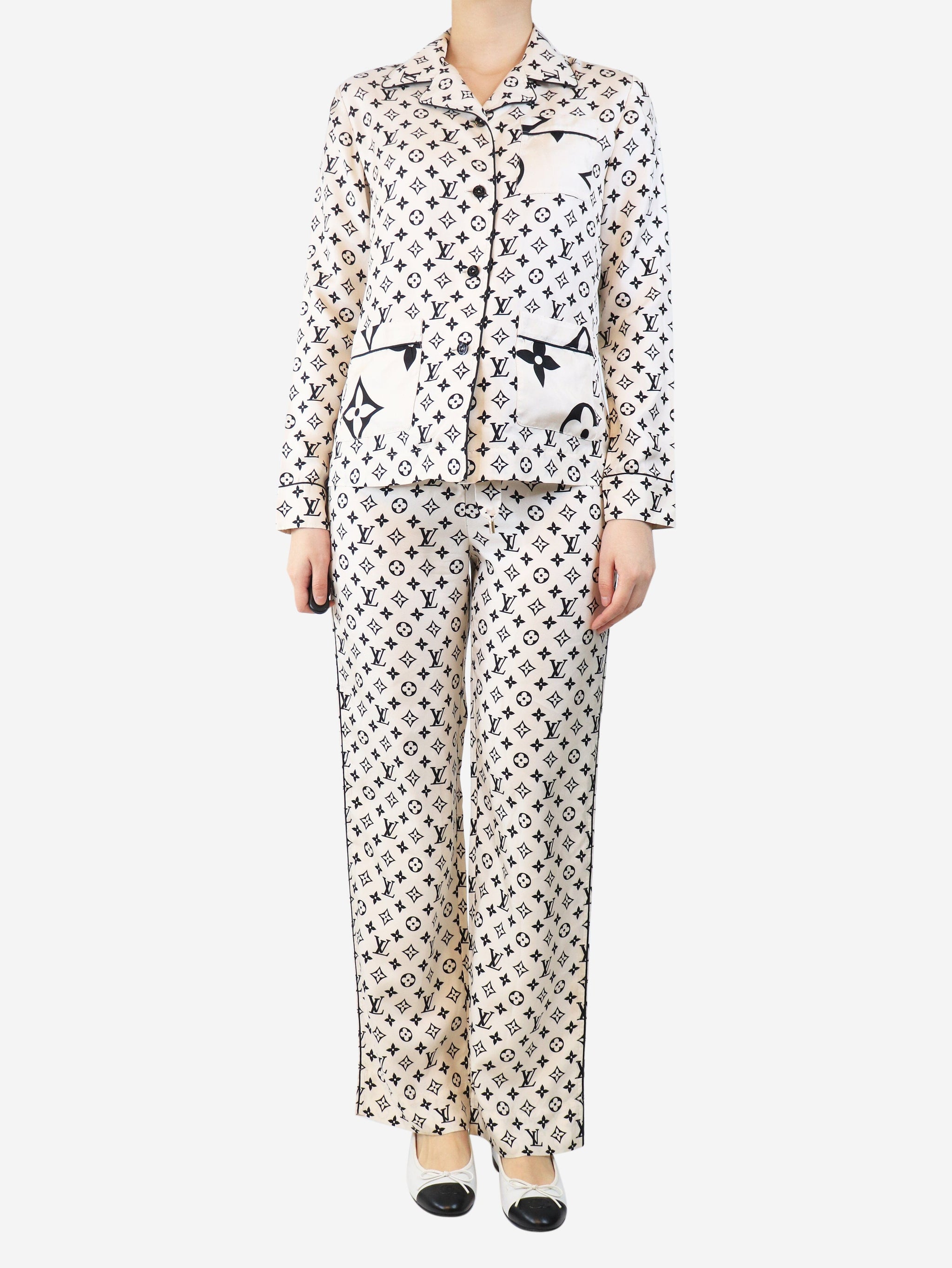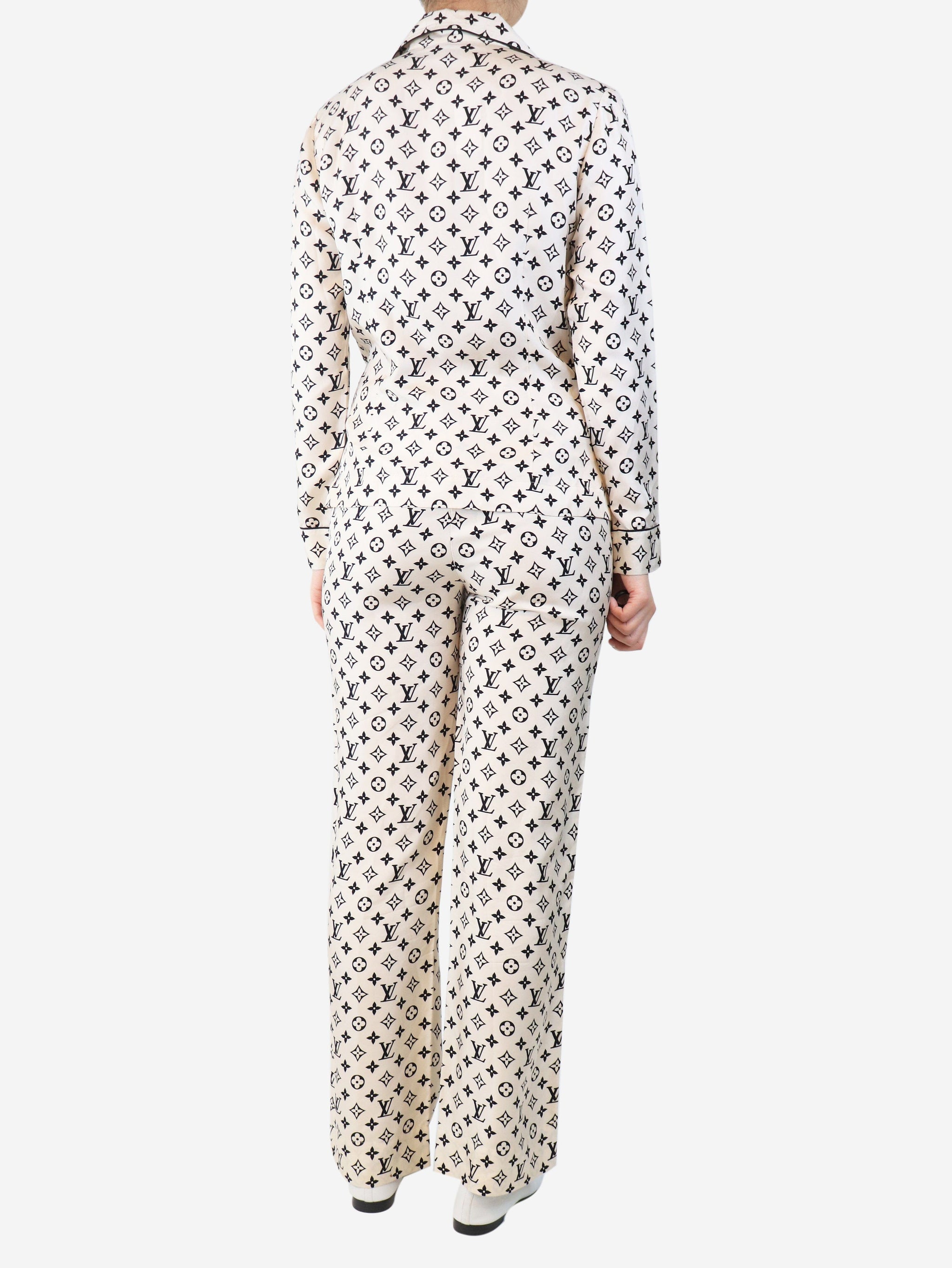 Cream silk top and trouser pajama set - size UK 8