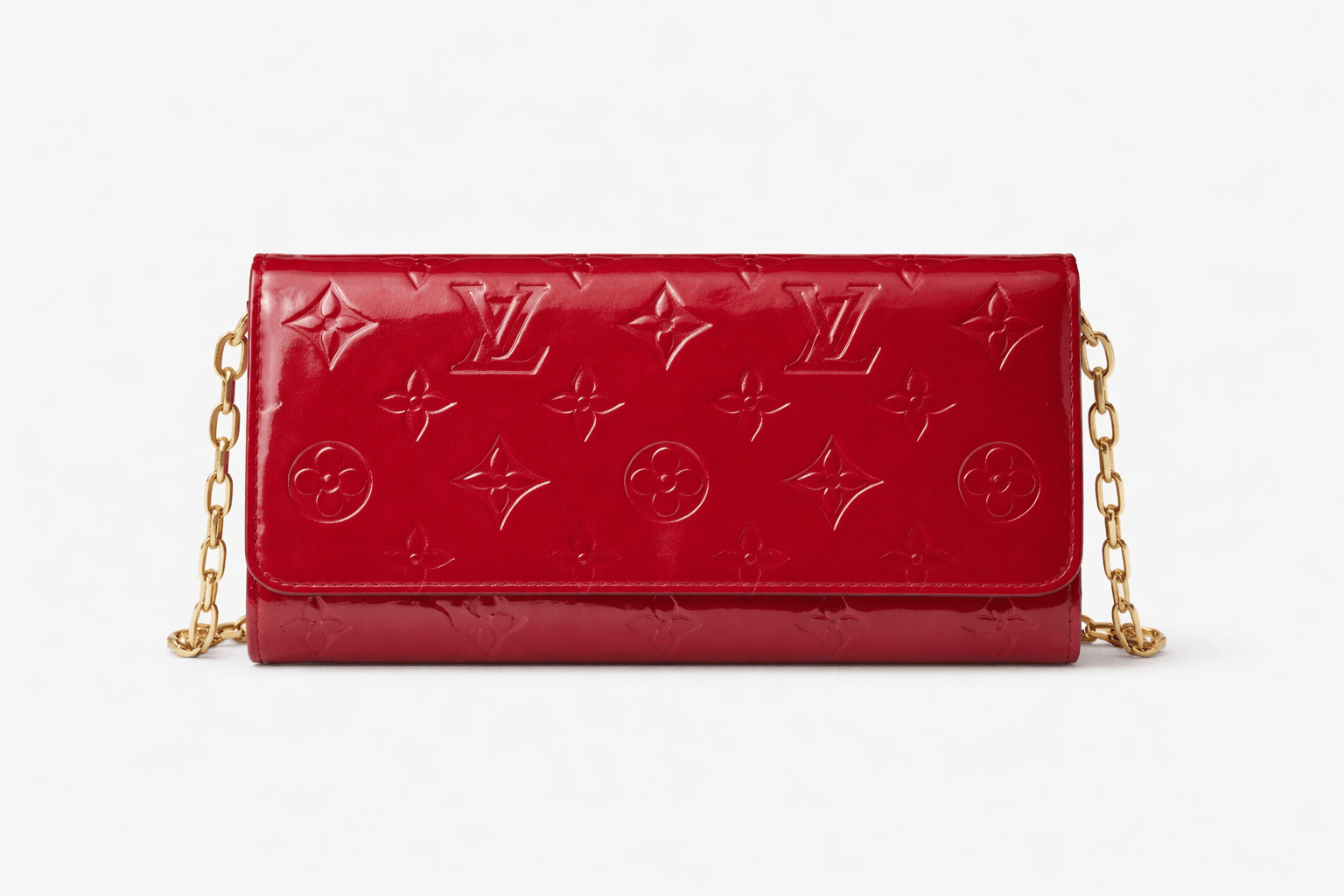 Red Monogram Vernis chain wallet