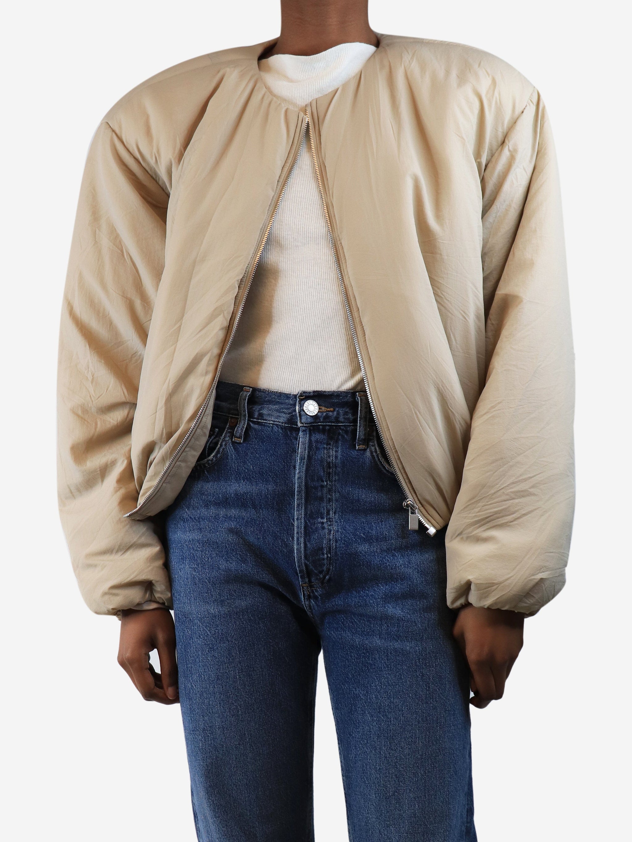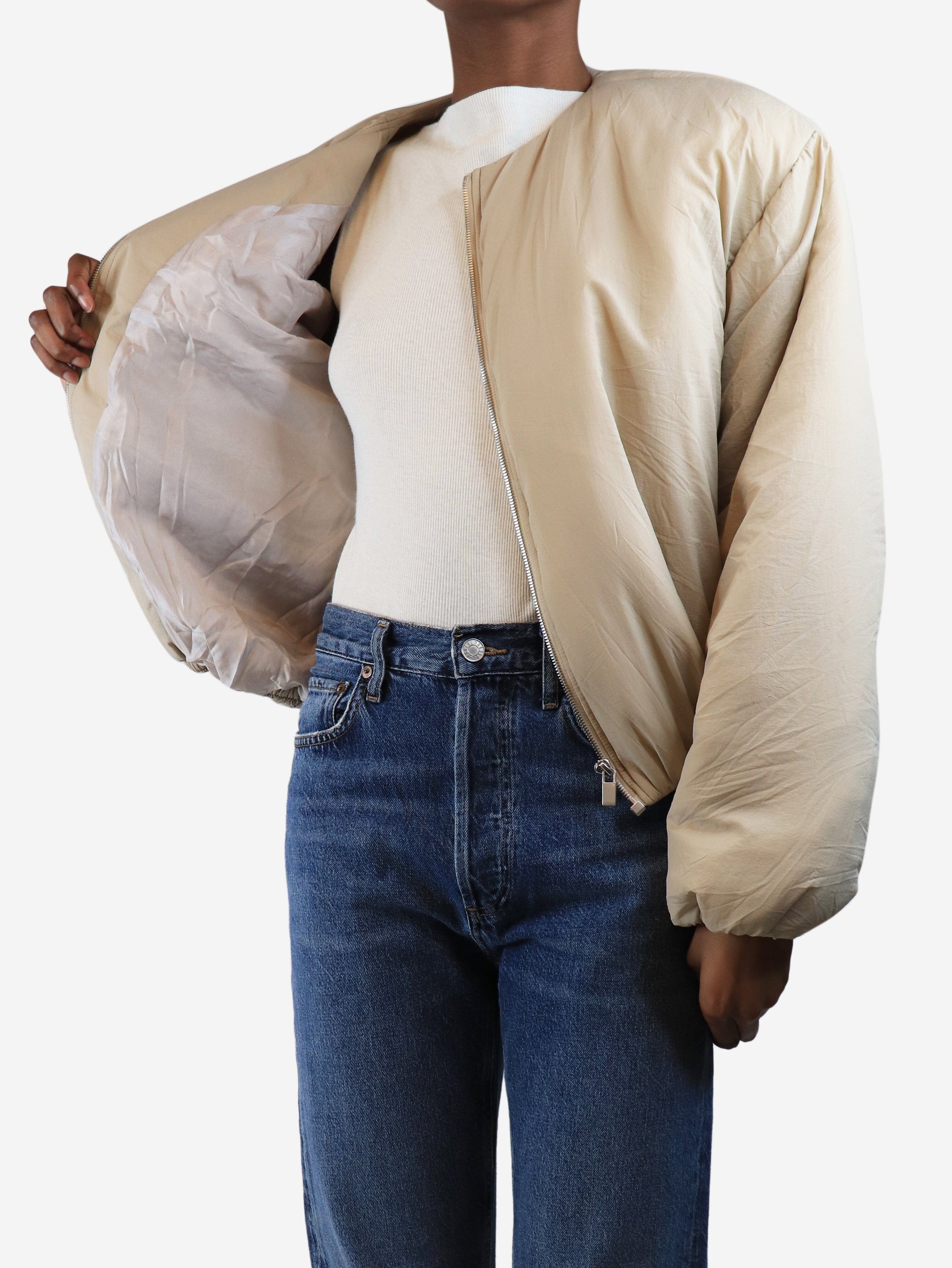 Beige bomber jacket - size UK 6
