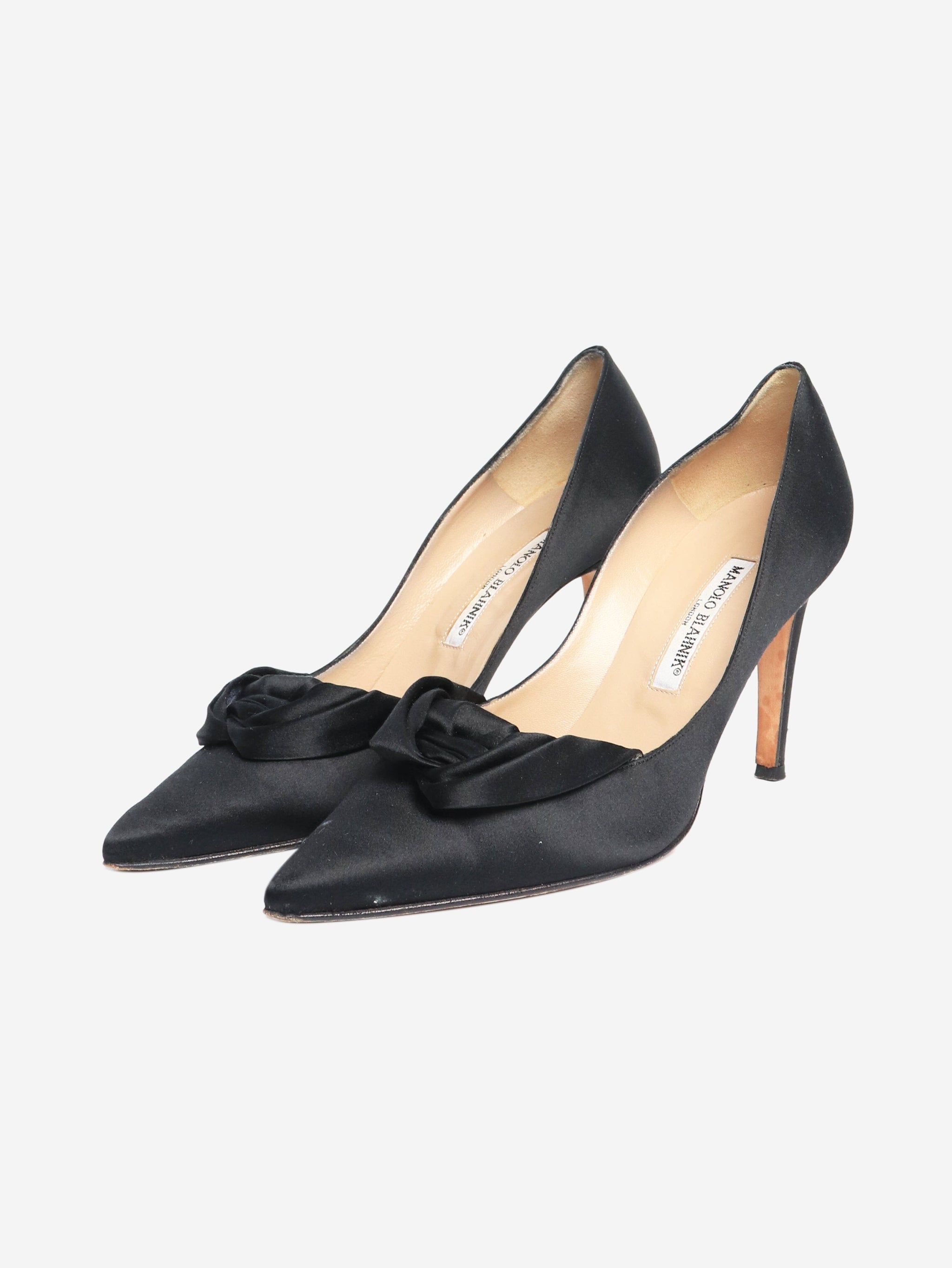 Black satin pleat pumps - size EU 40.5
