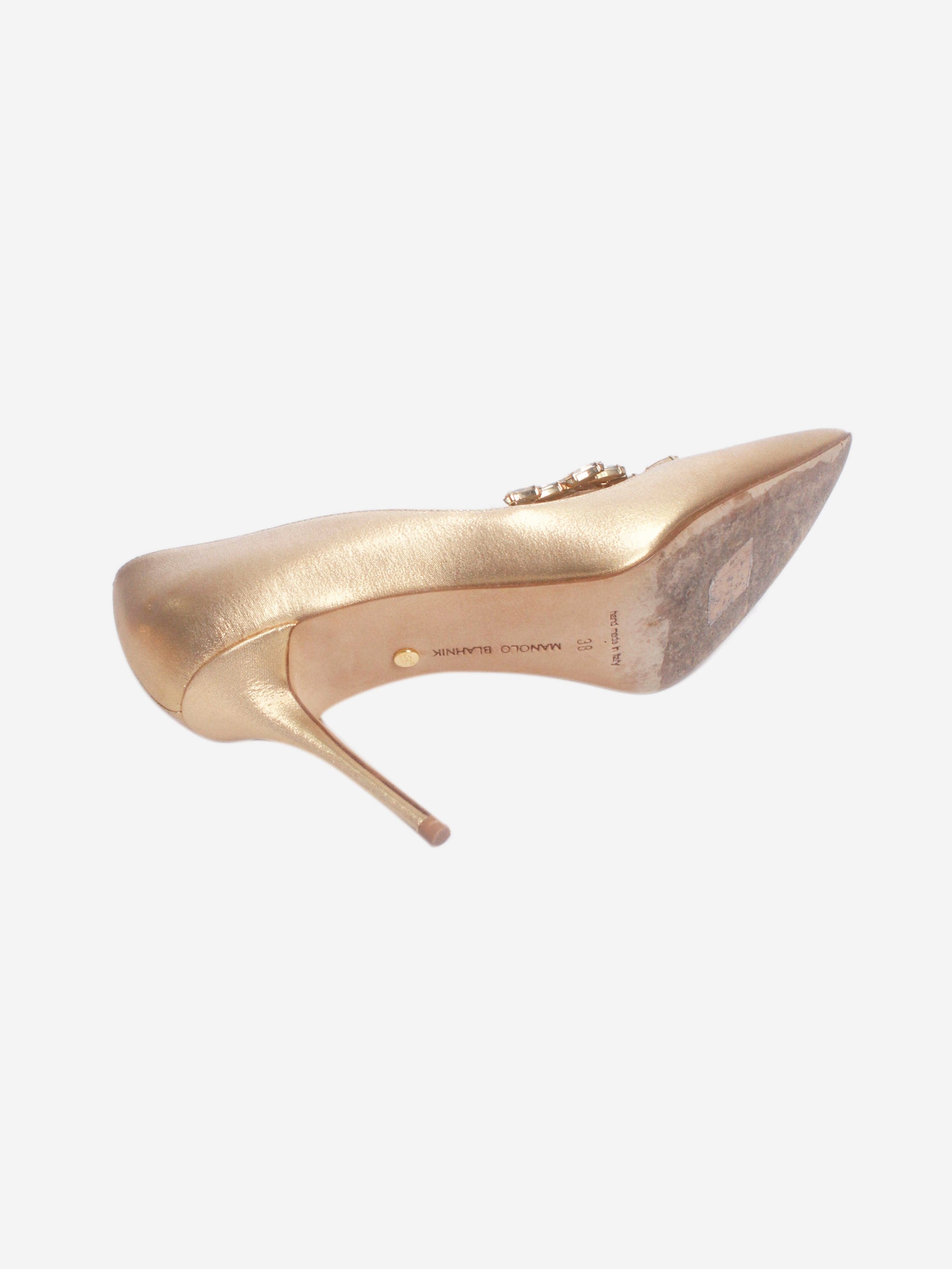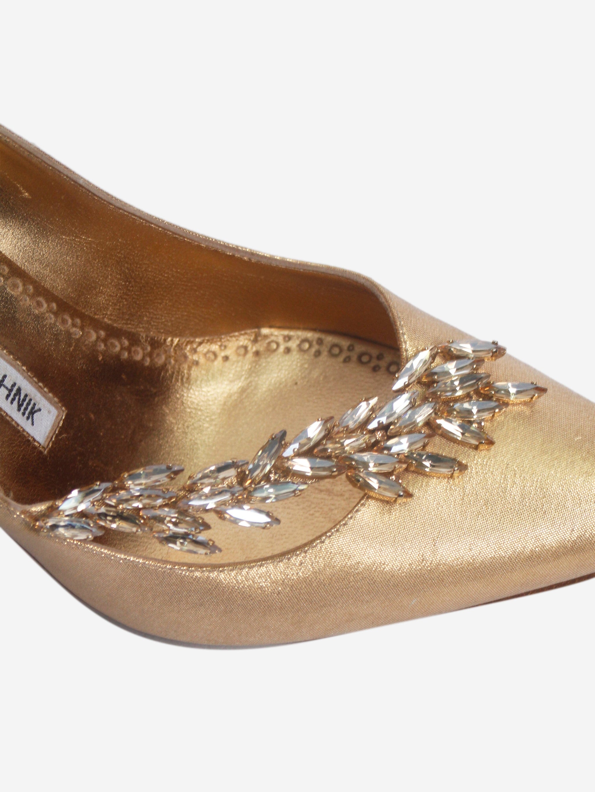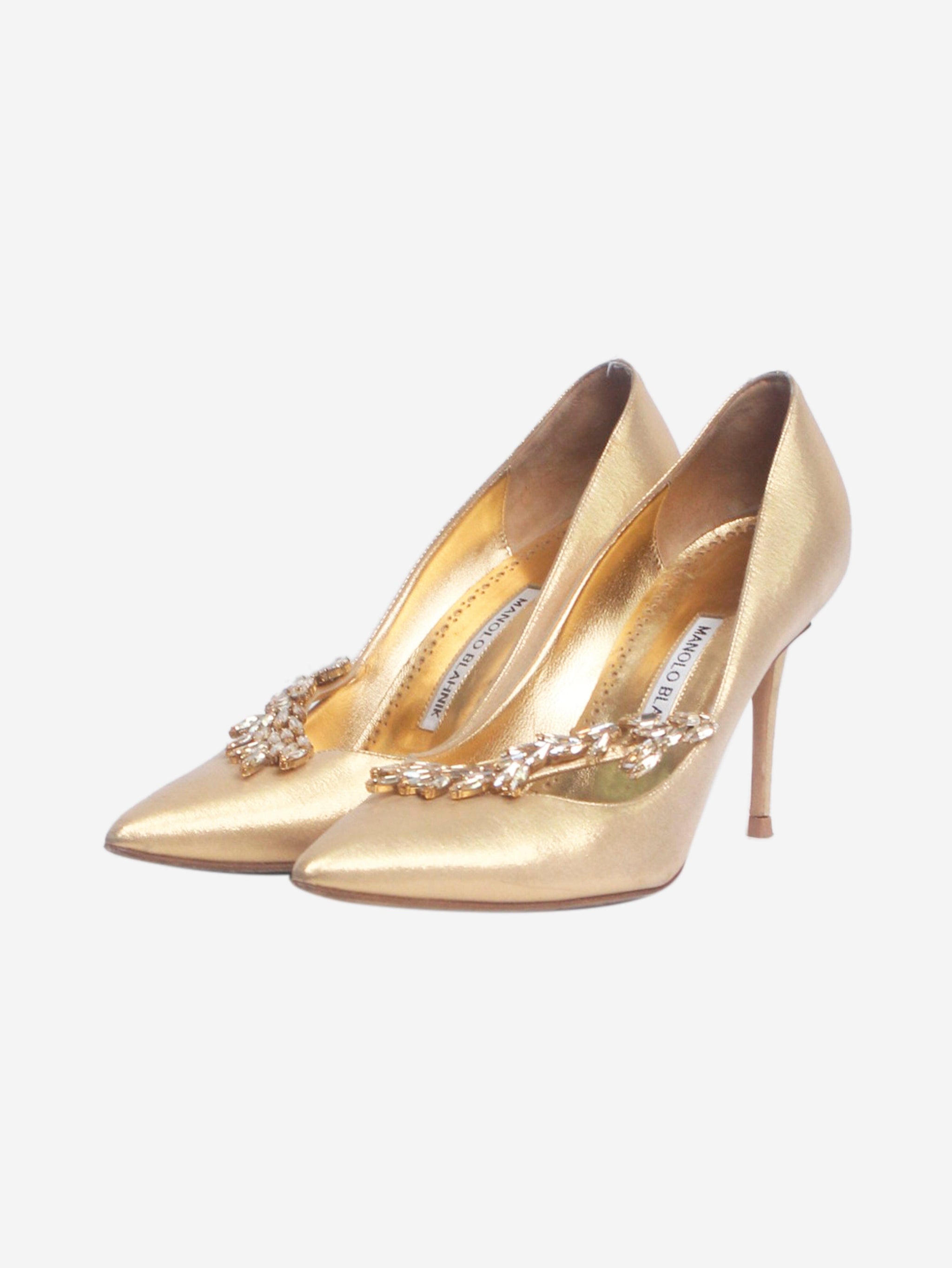 Gold Nadira metallic bejewlled pumps - size EU 38