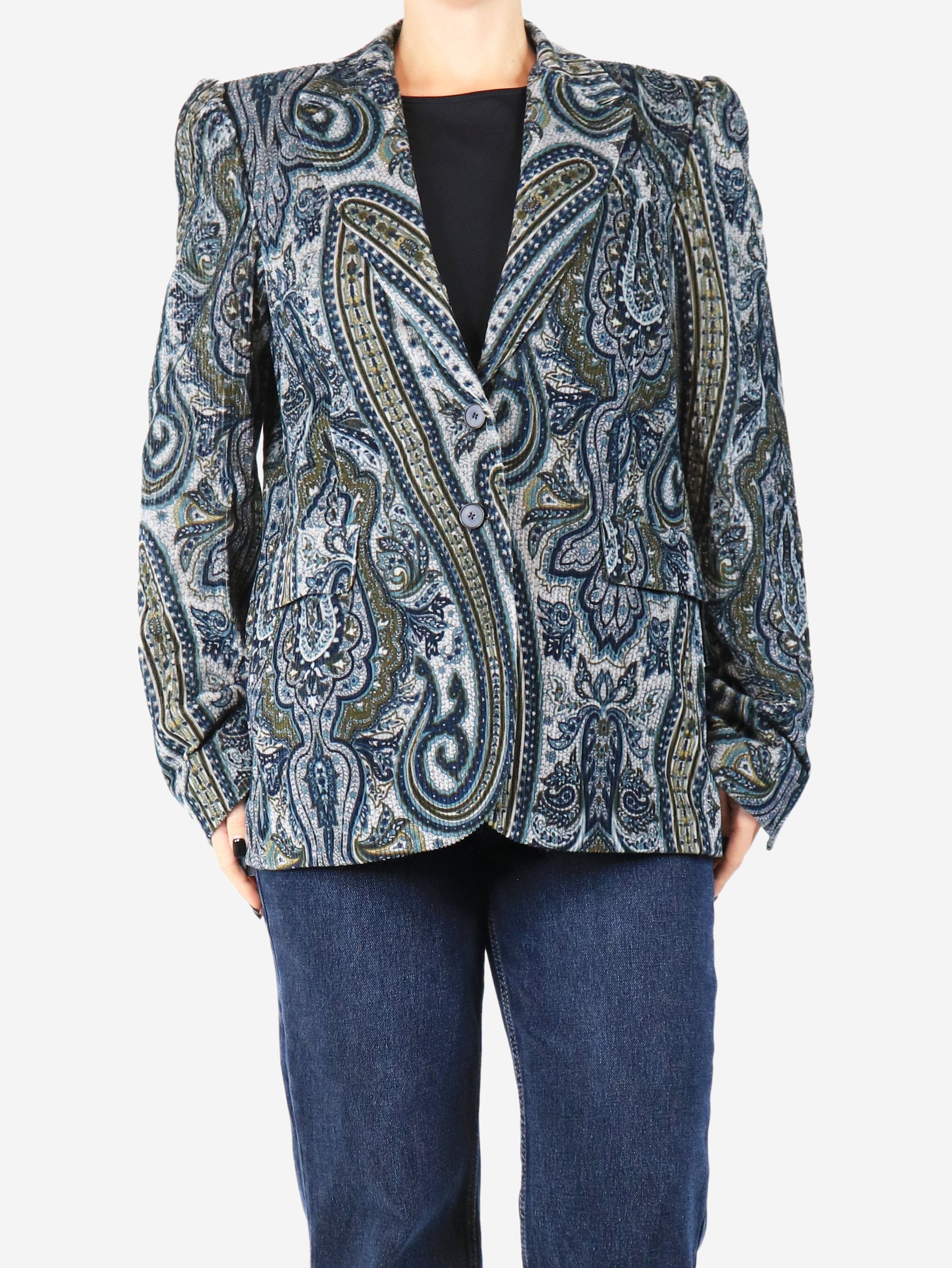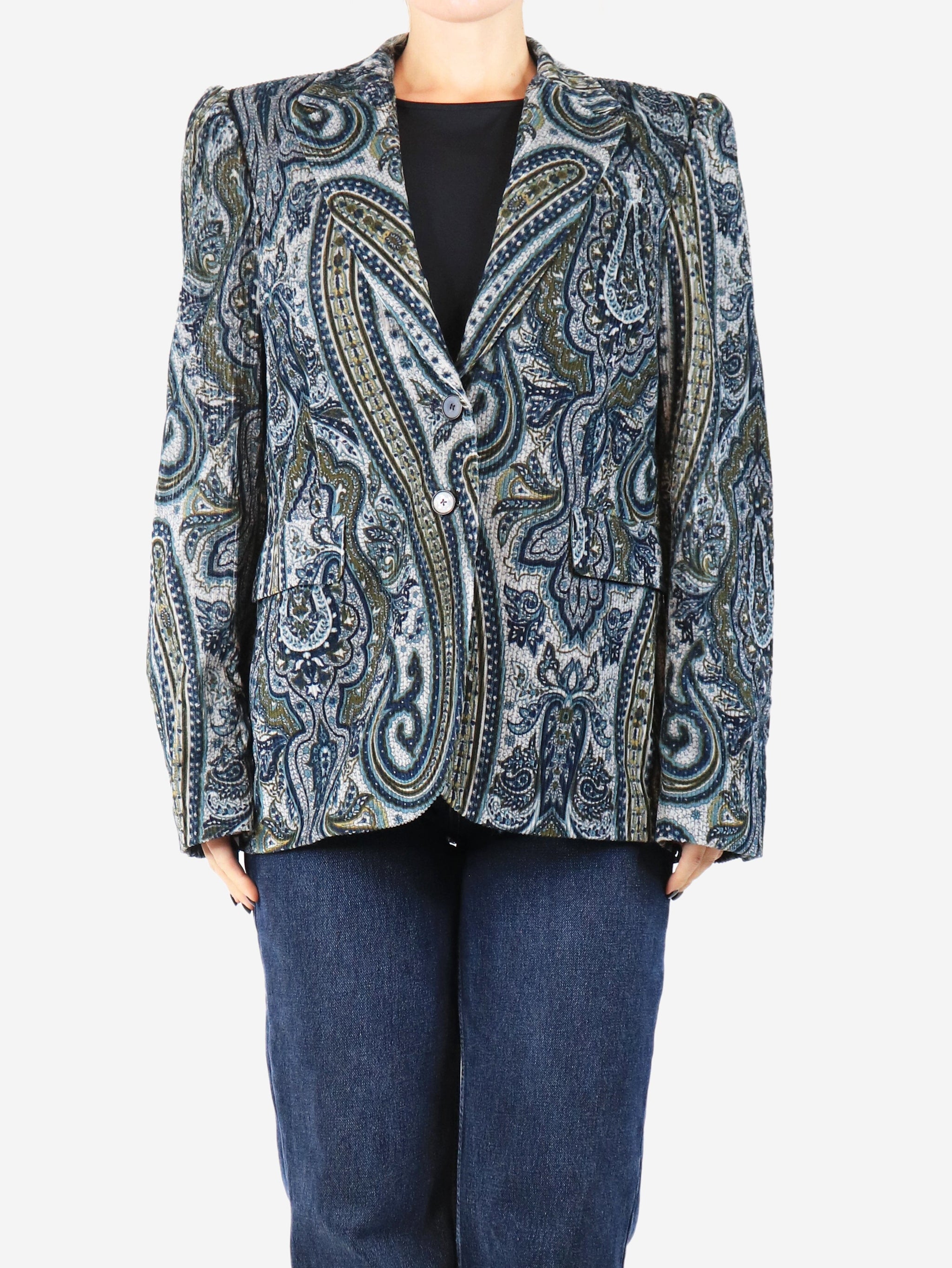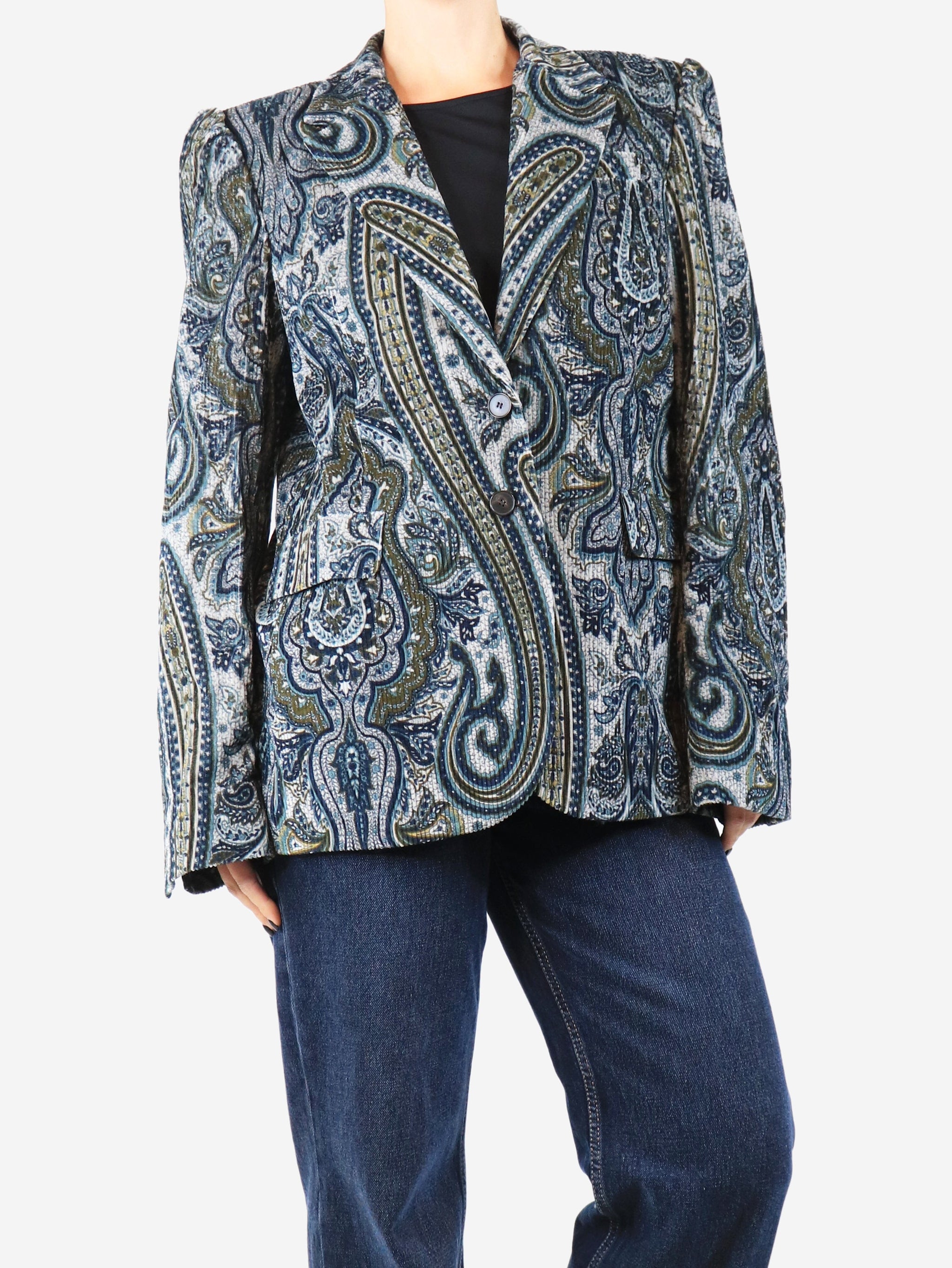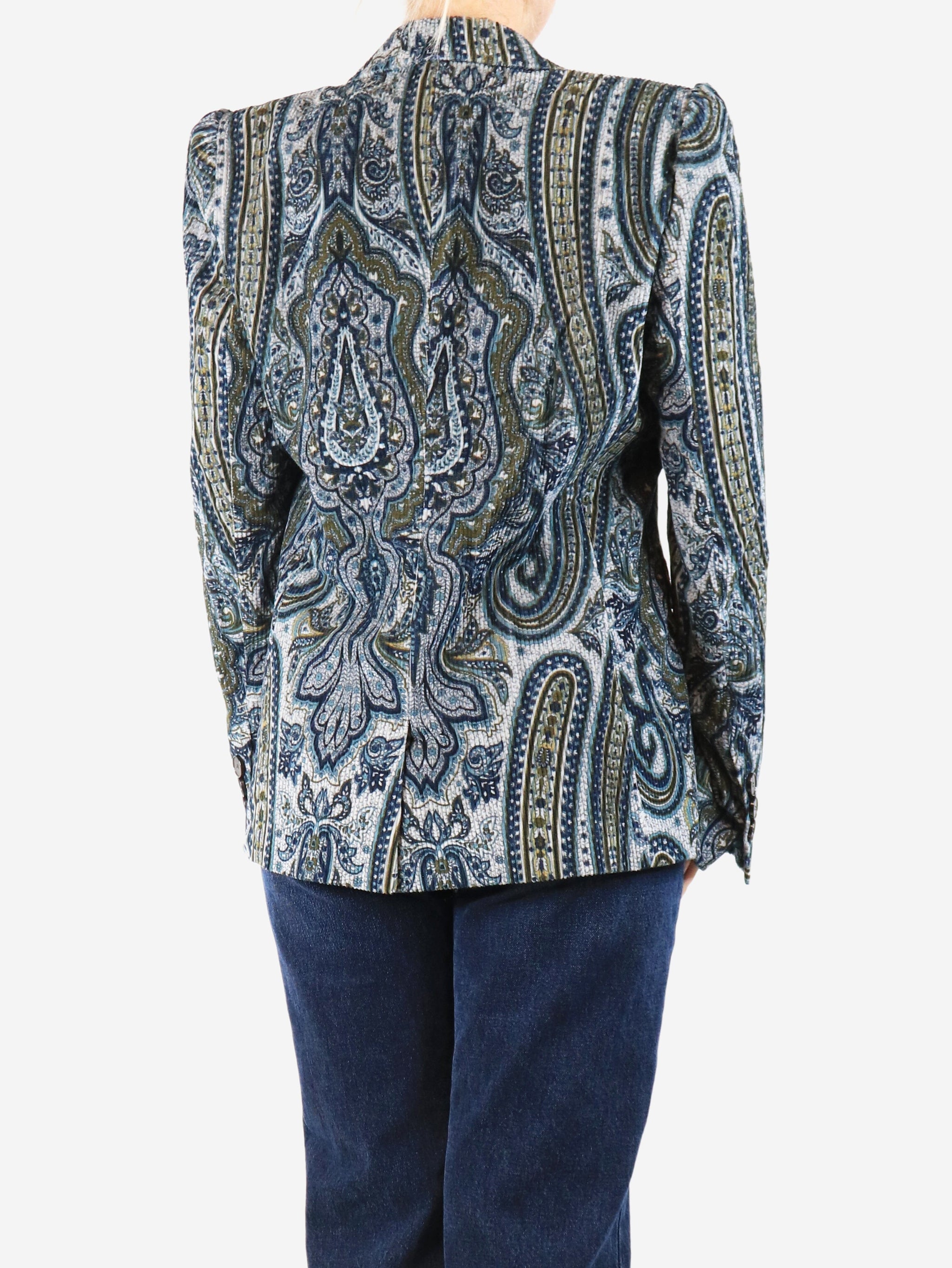 Blue corduroy paisley jacket - size UK 12