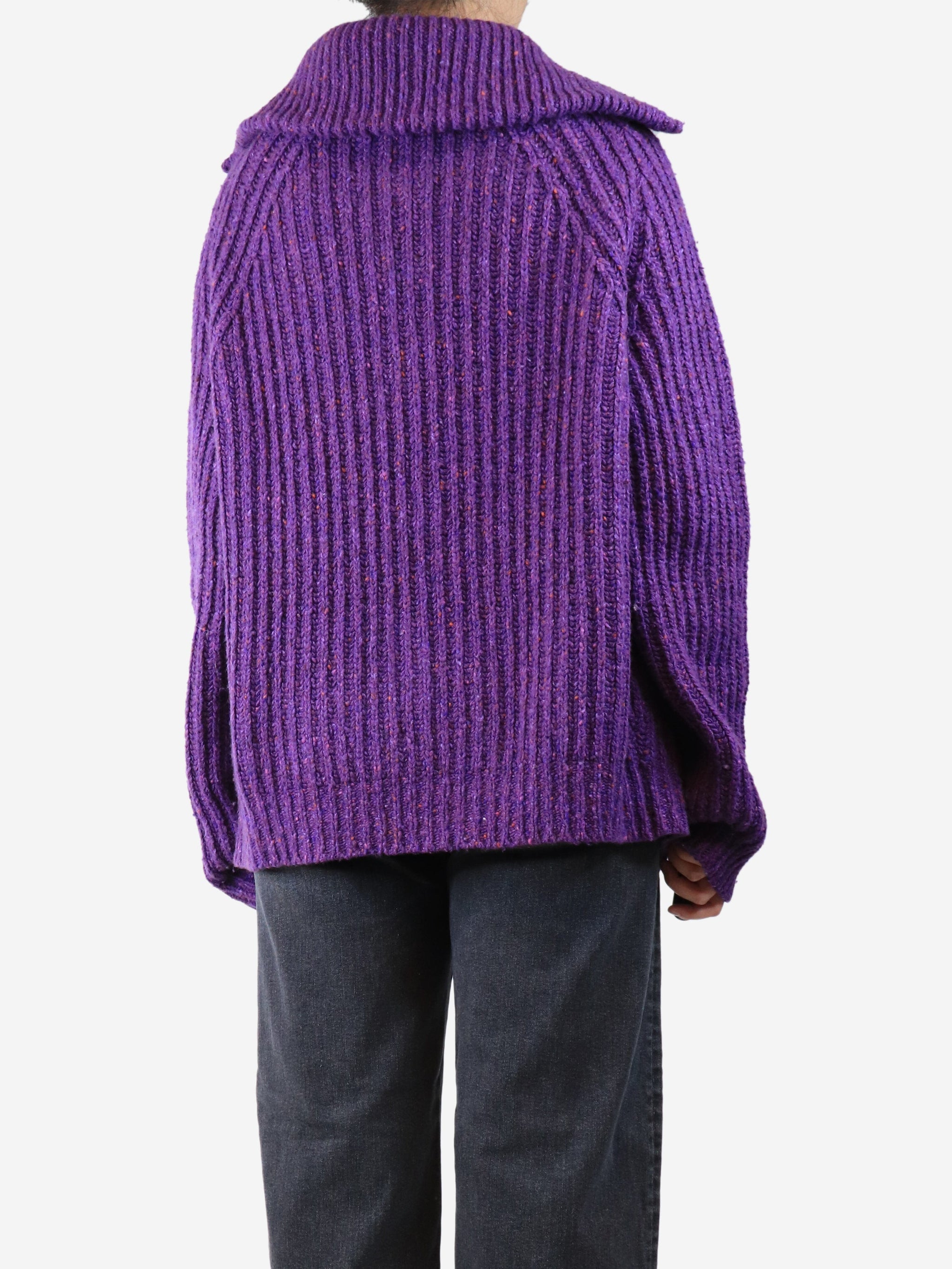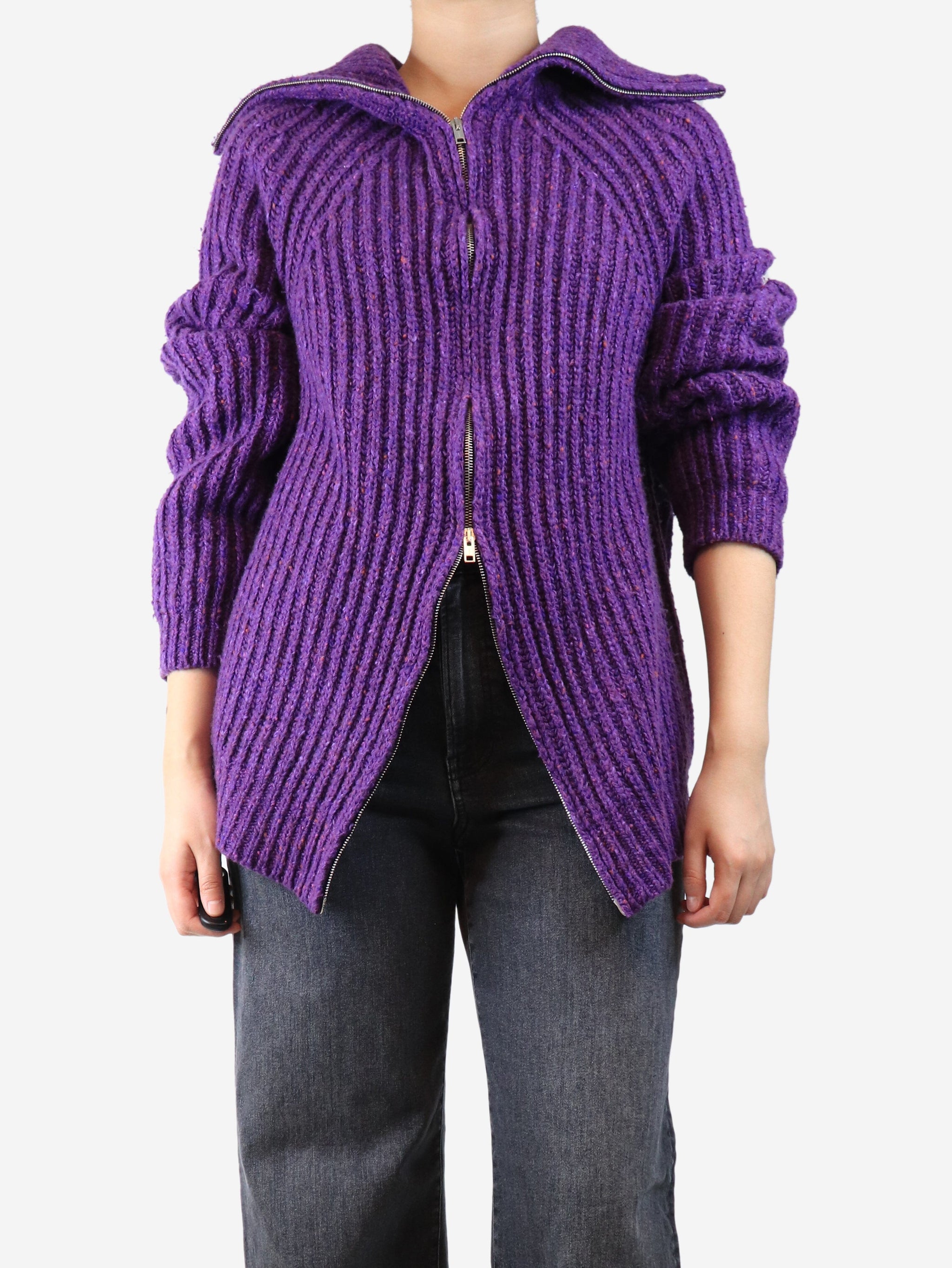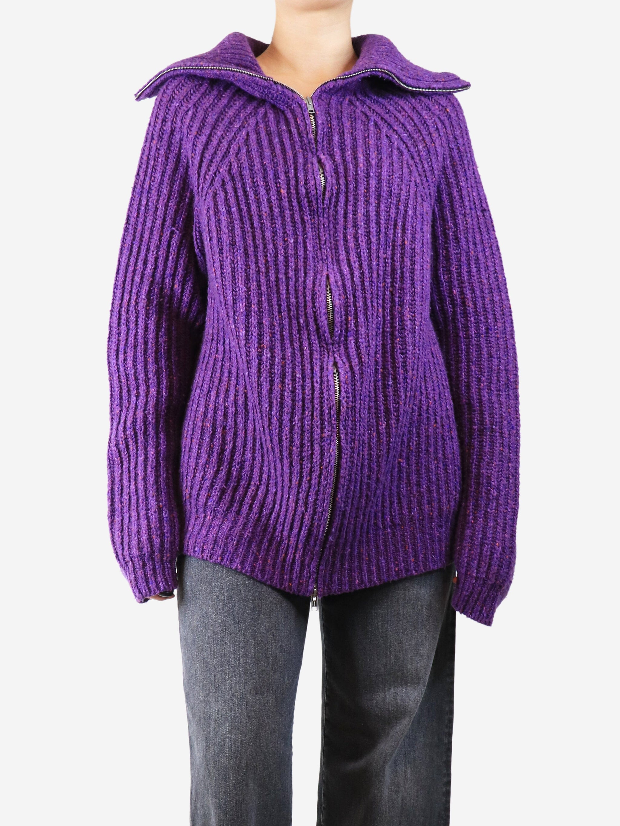 Purple chunky ribbed zip cardigan - size UK 16