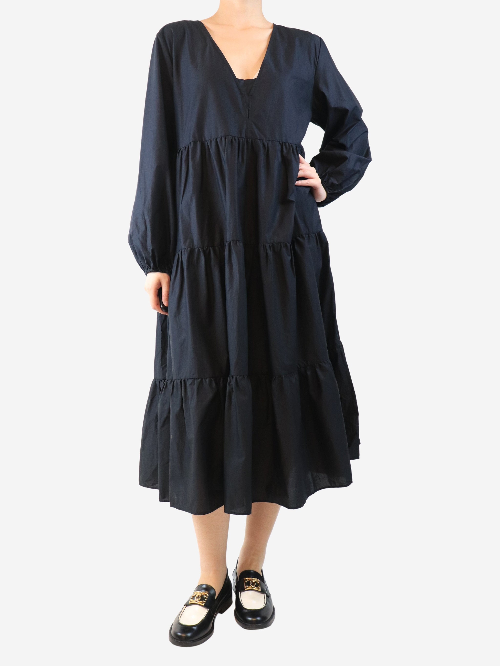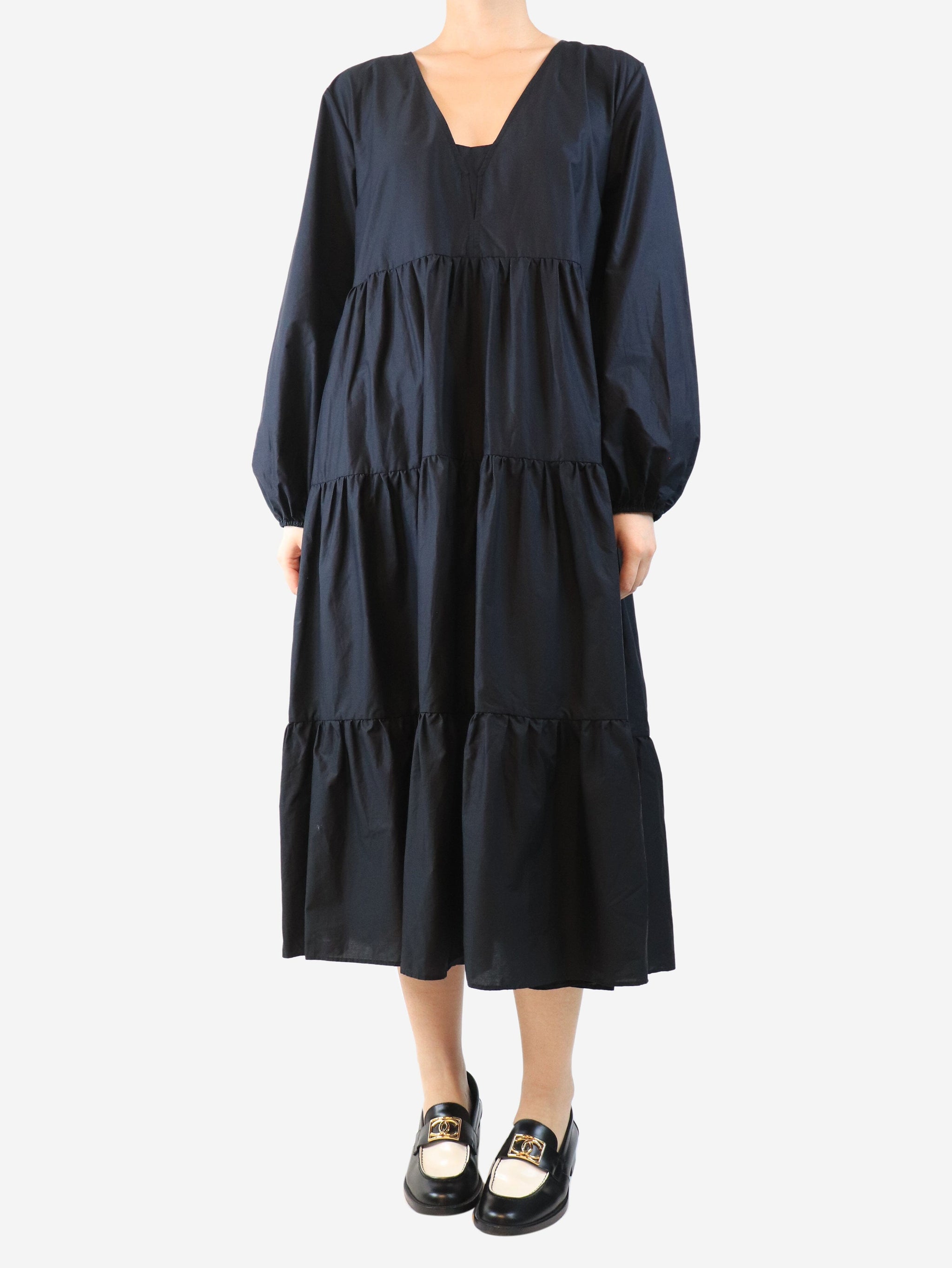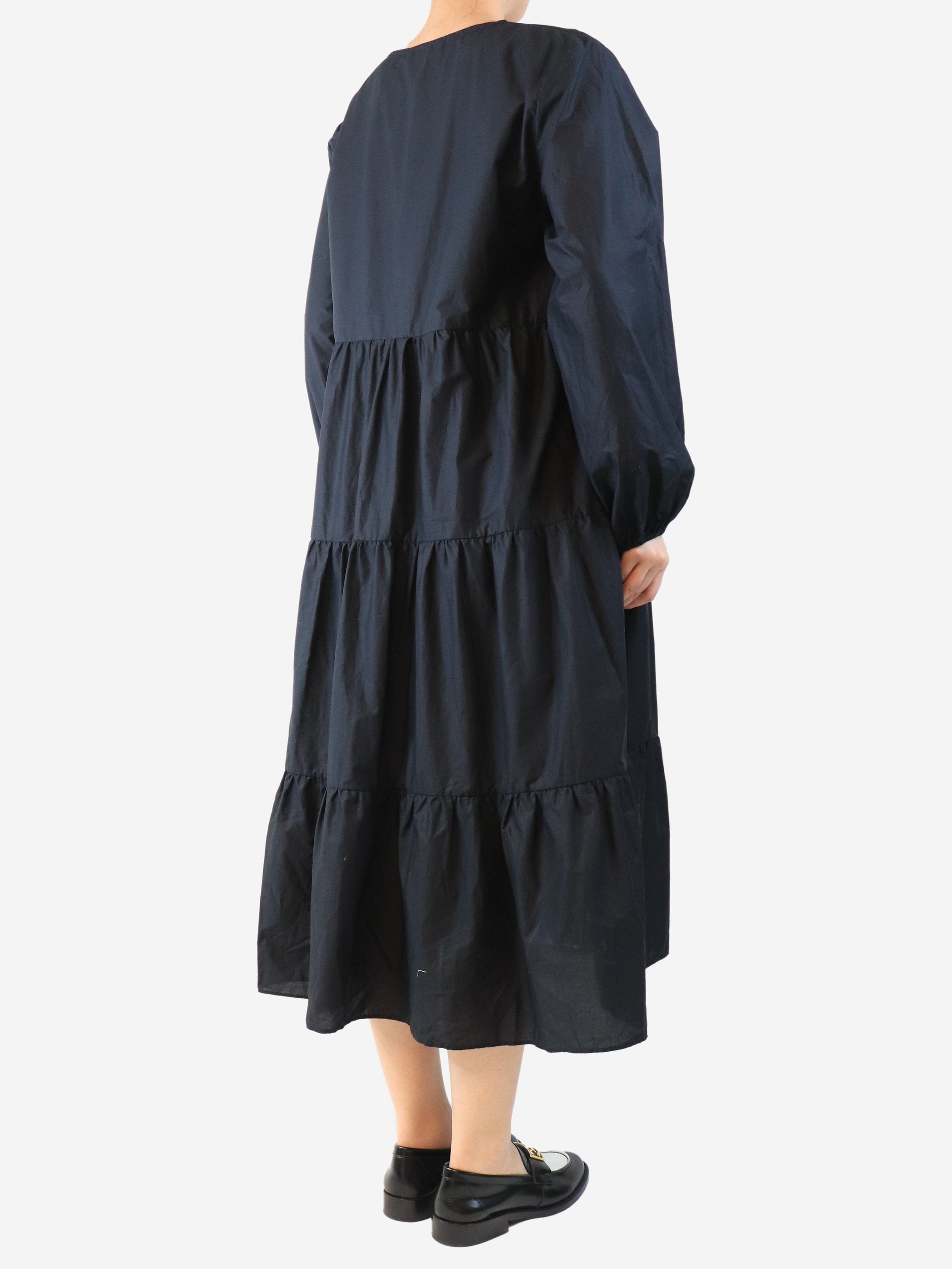 Black cotton tiered midi dress - size UK 10