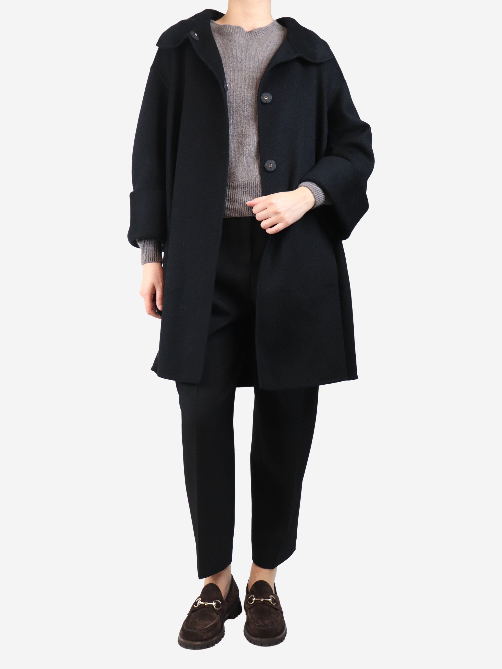 Black wool and cashmere-blend coat - size UK 10