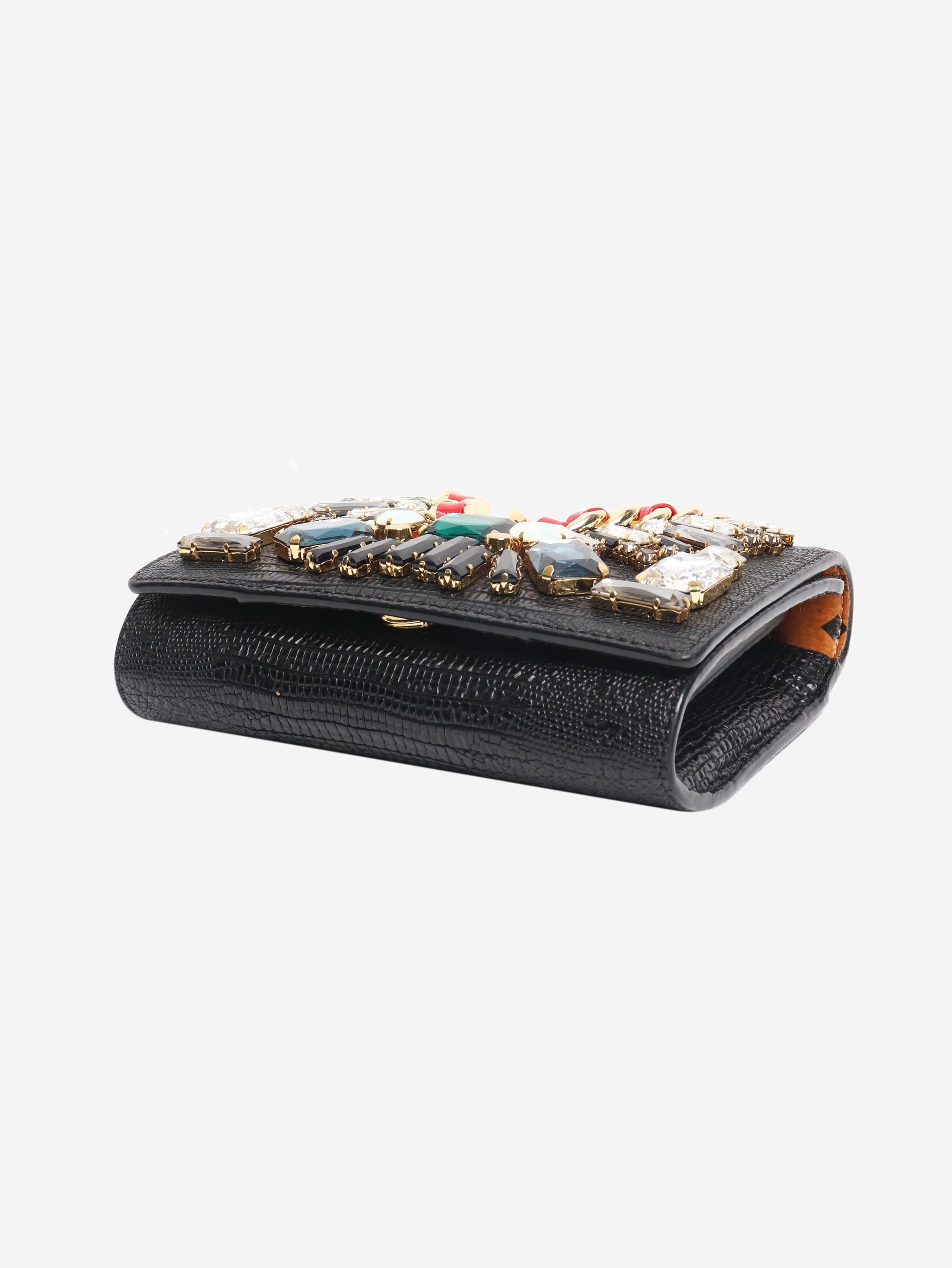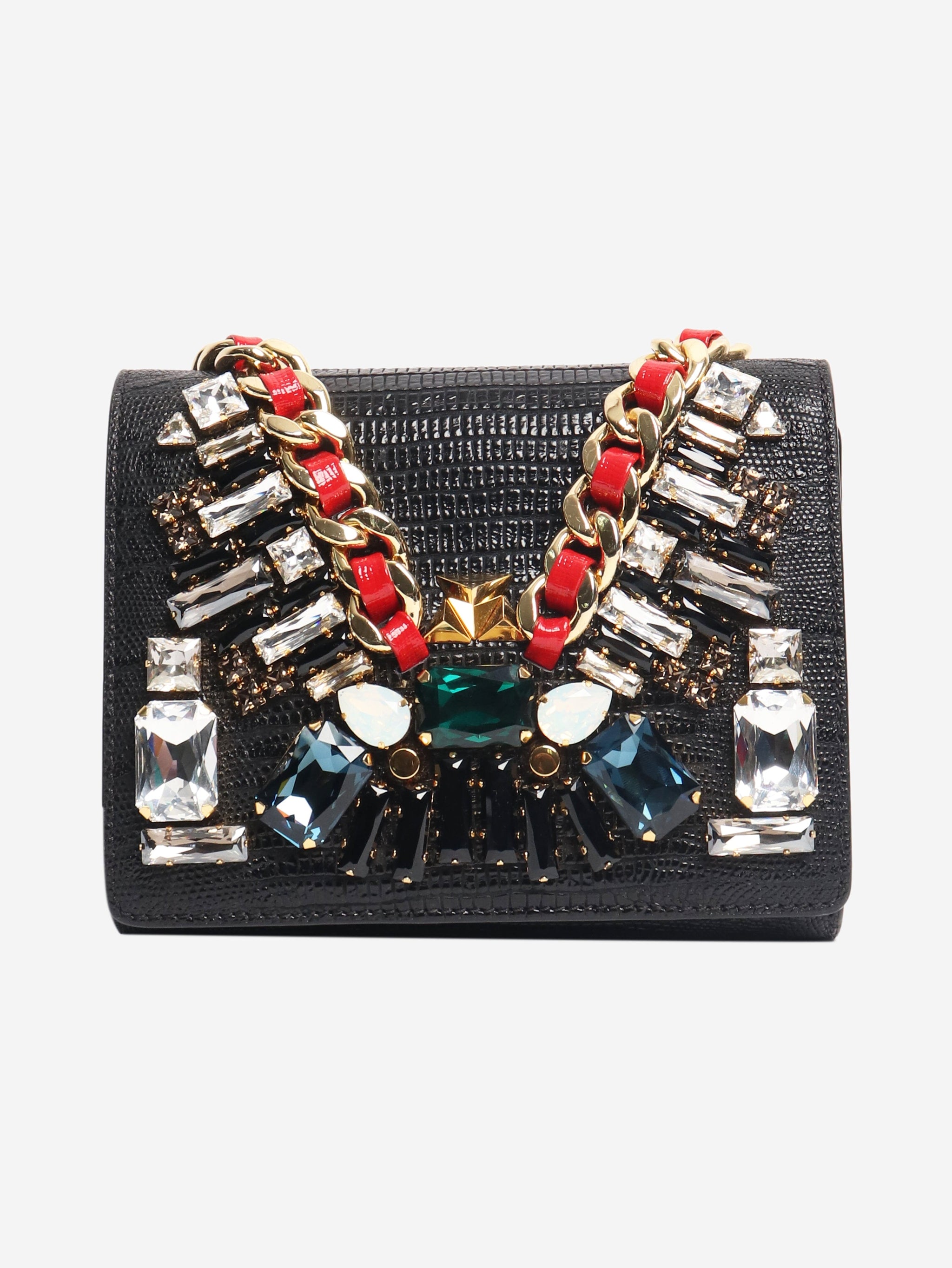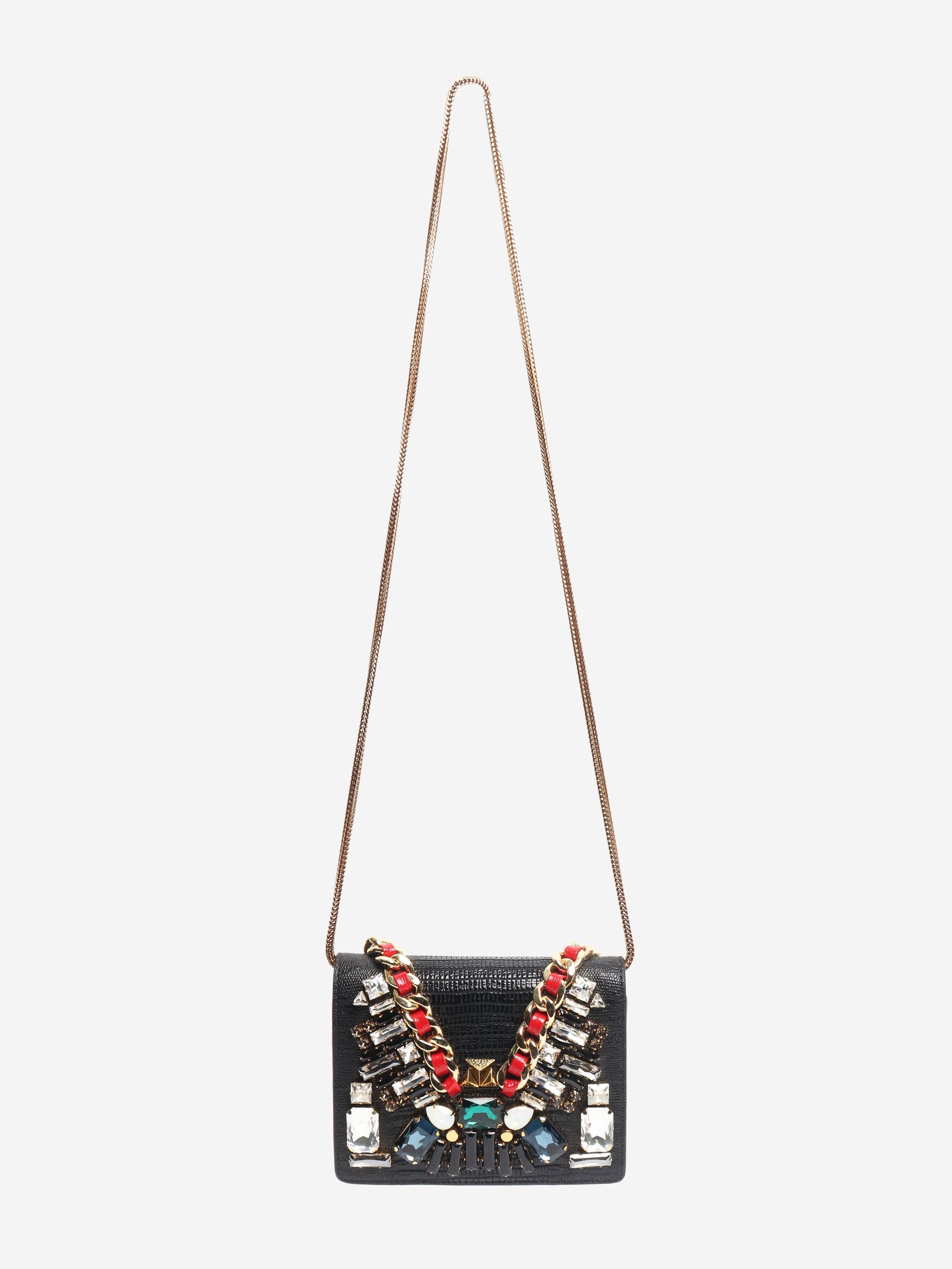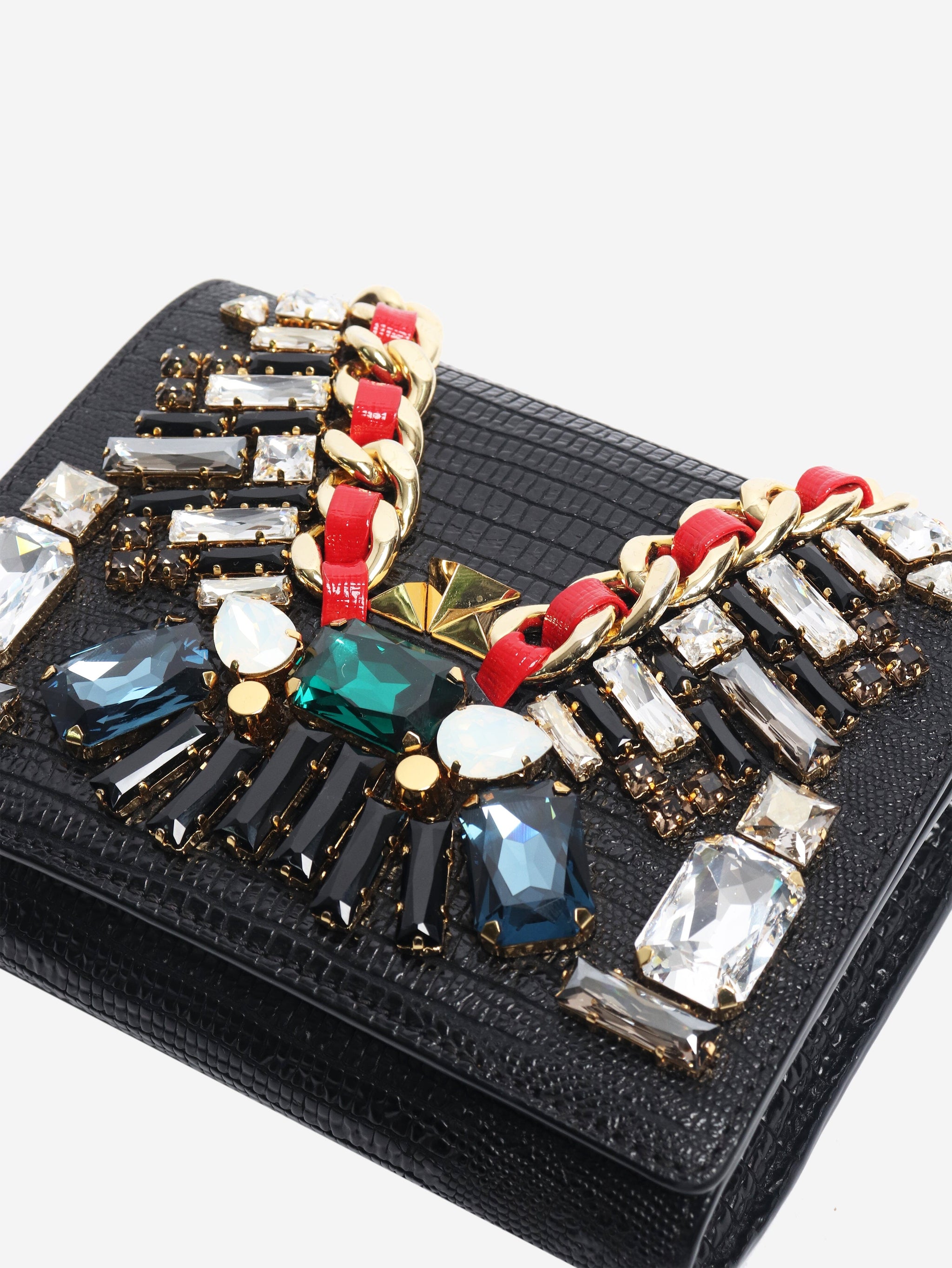 Black bejewelled chain crossbody bag