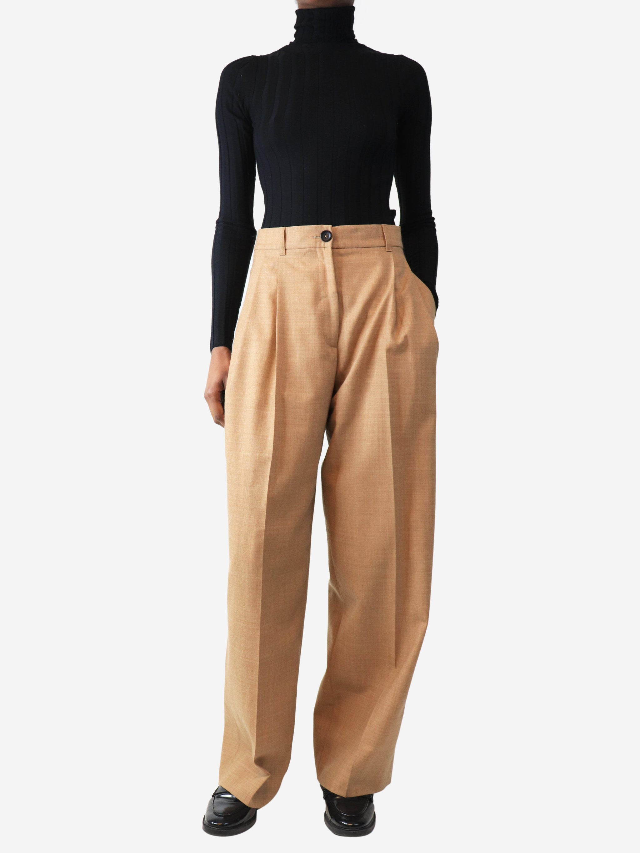 Biscuit pleat-front trousers - size UK 6