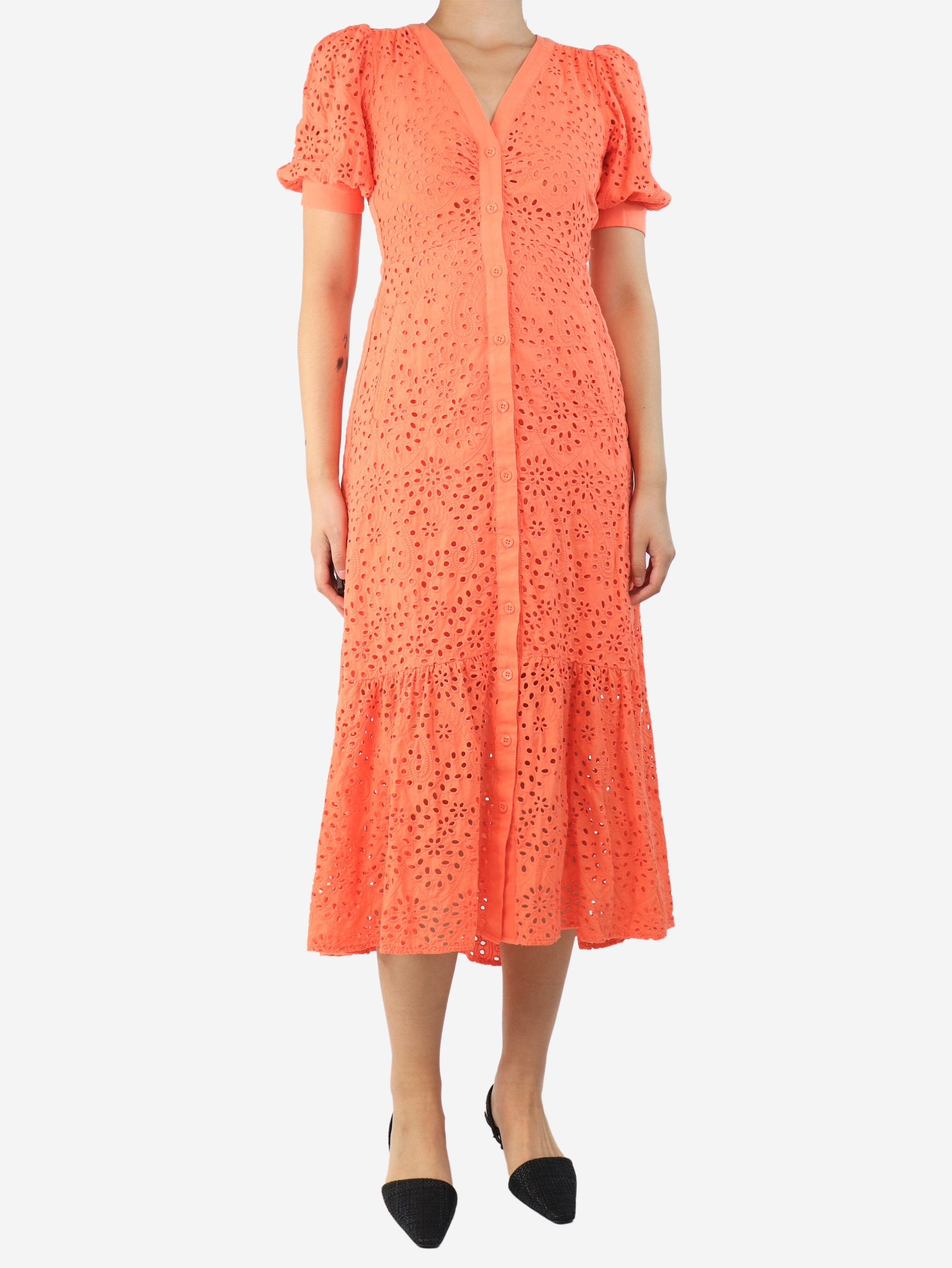 Coral broderie-anglaise midi dress - size UK 8