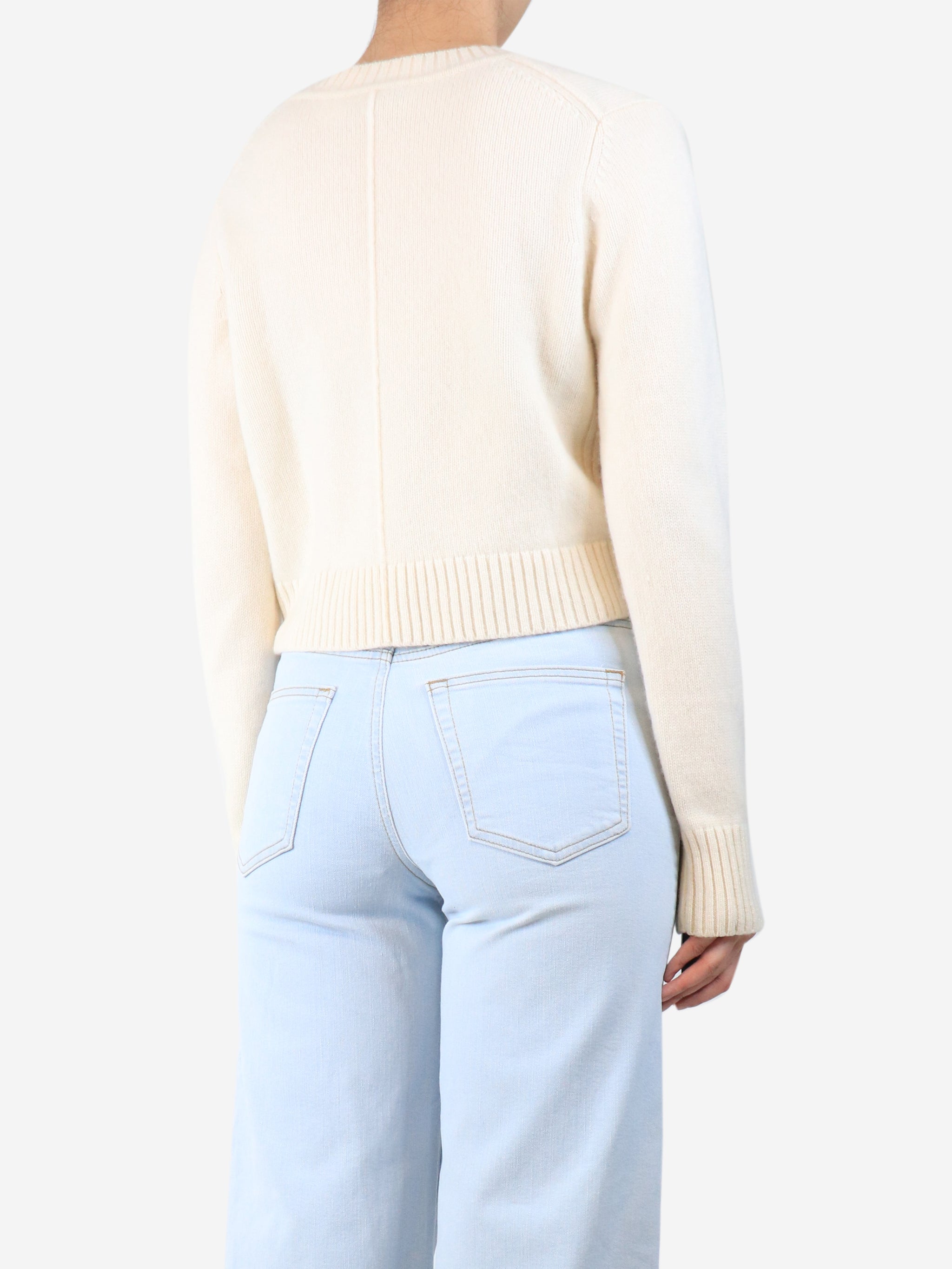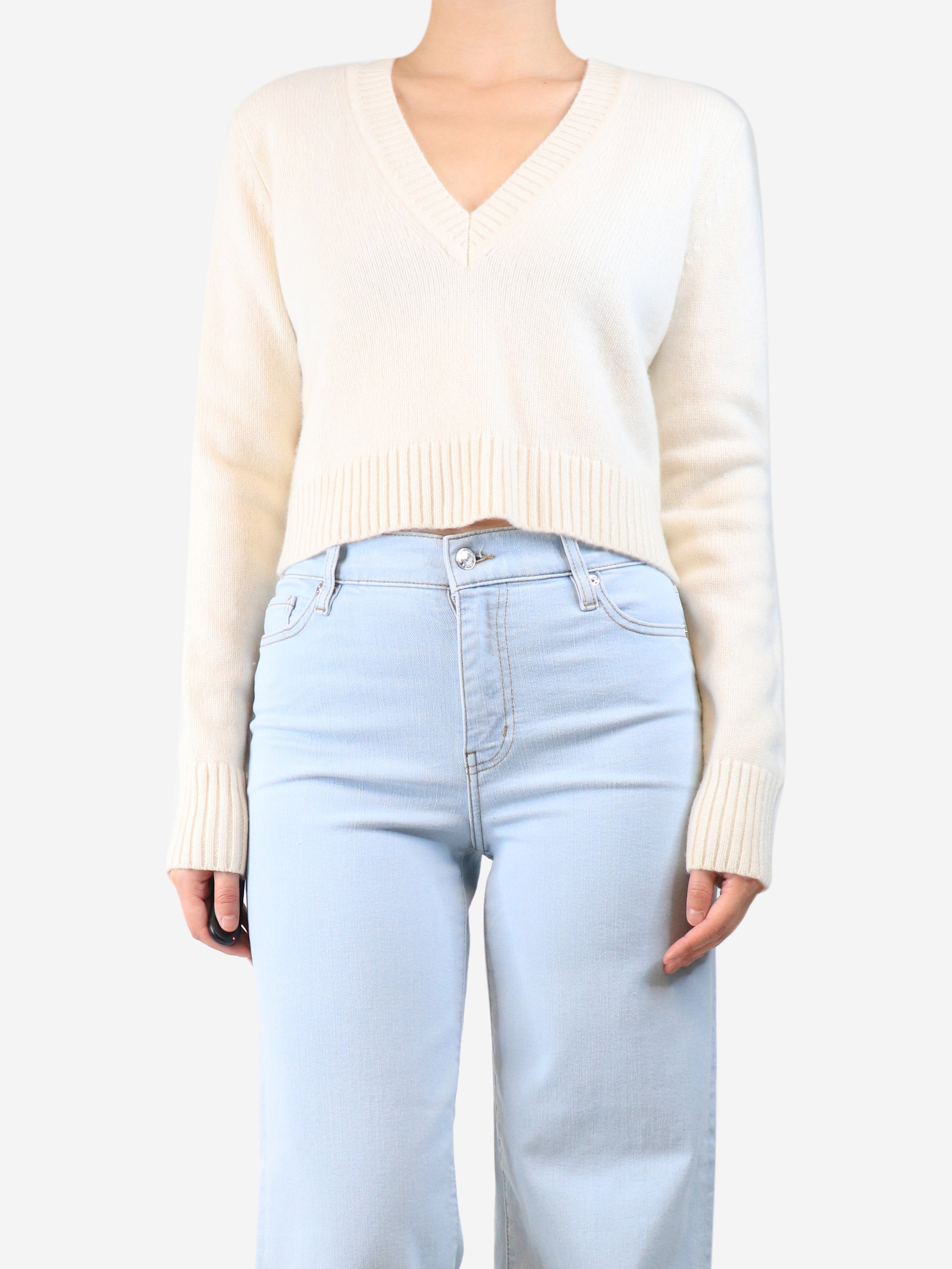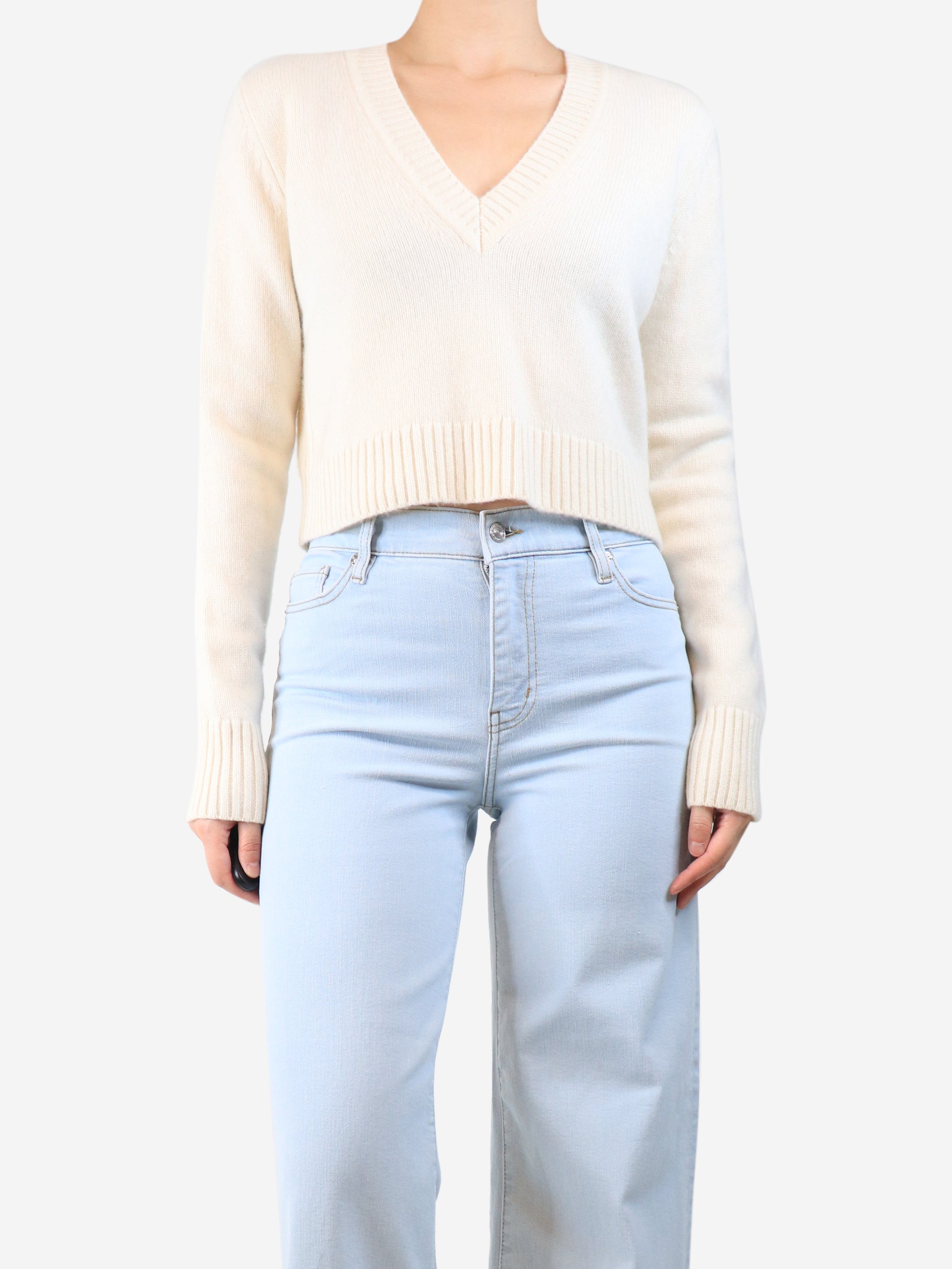 Cream cropped v-neck jumper - size S