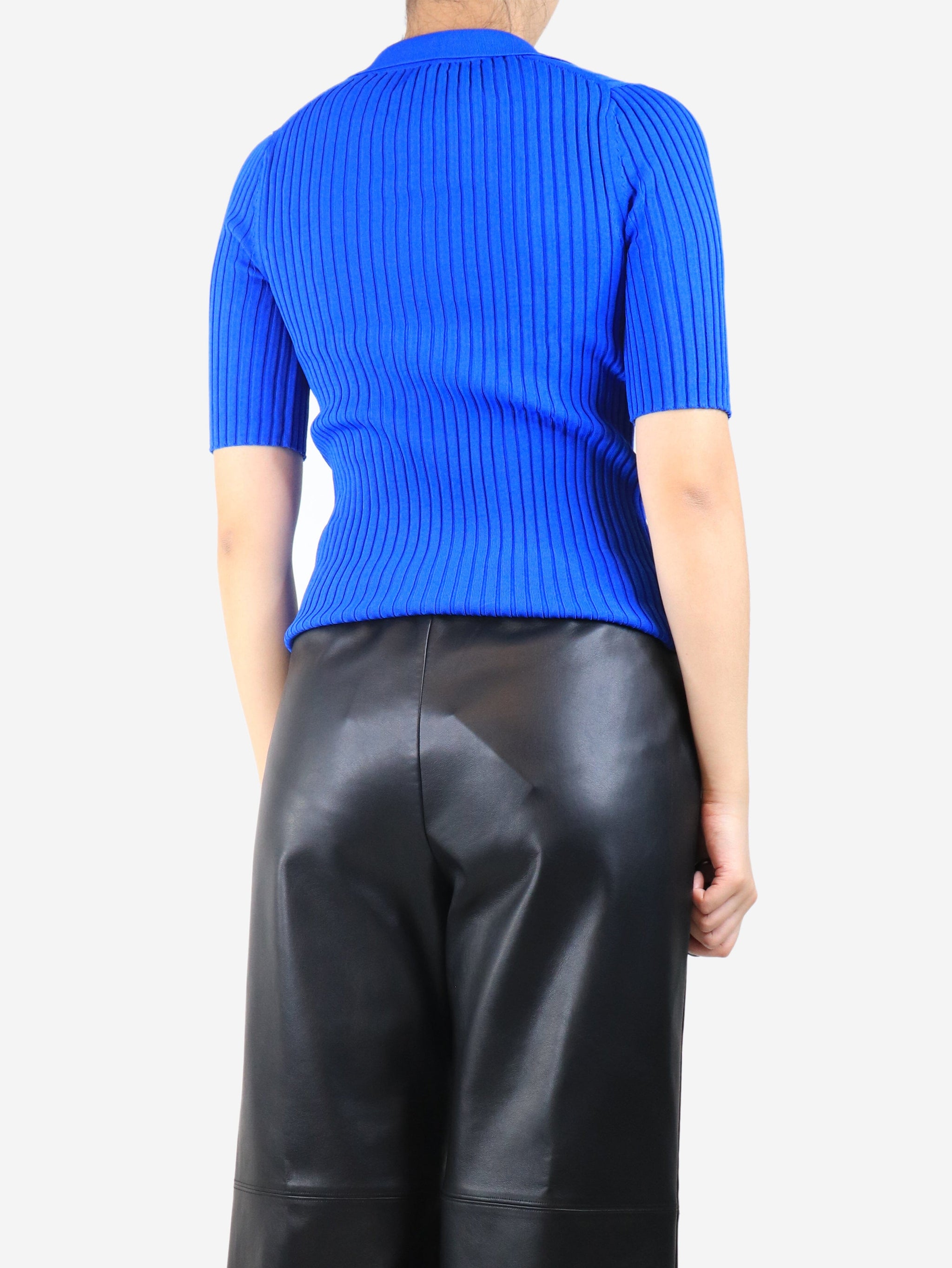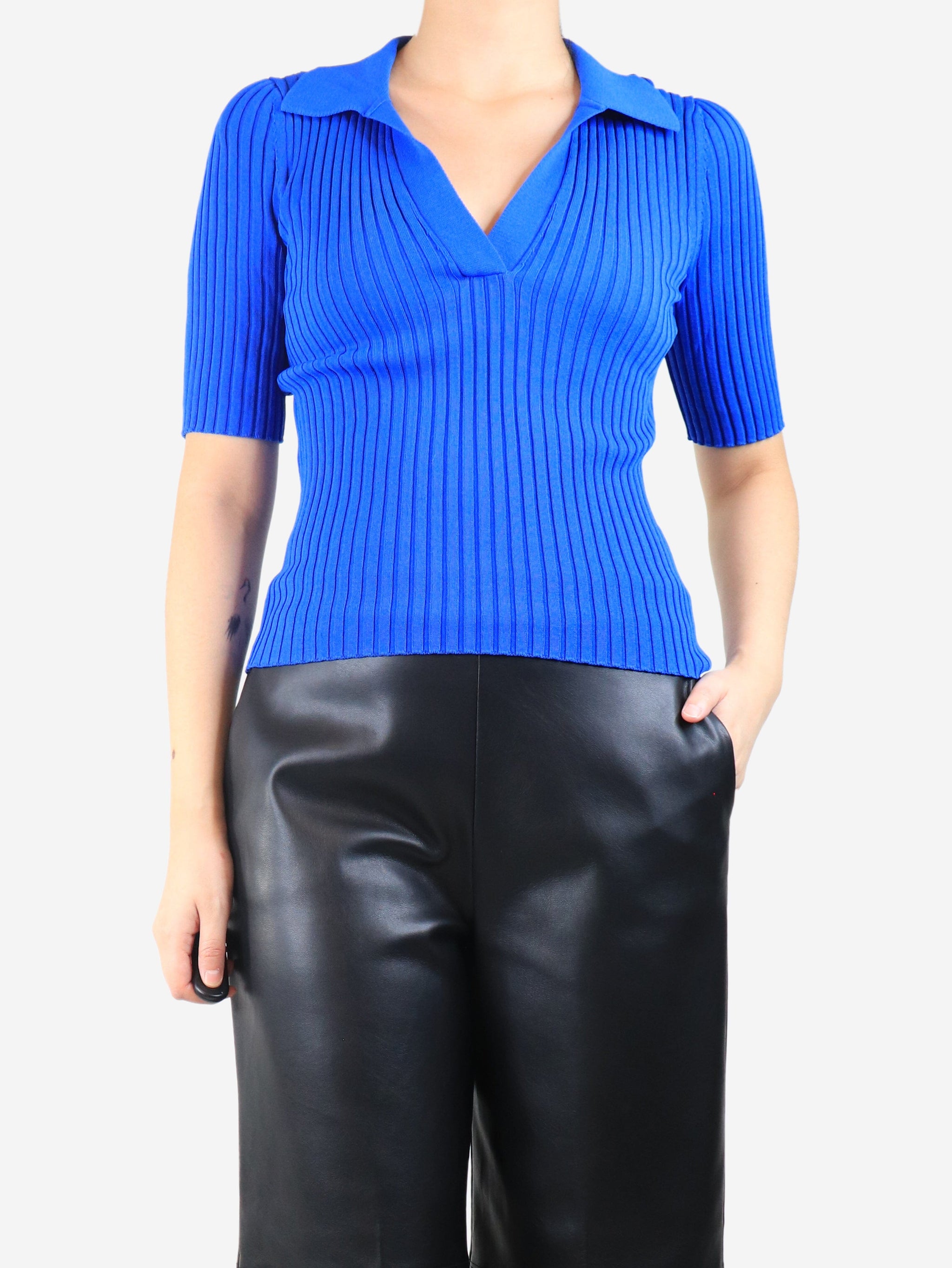 Electric blue ribbed v-neck top - size S