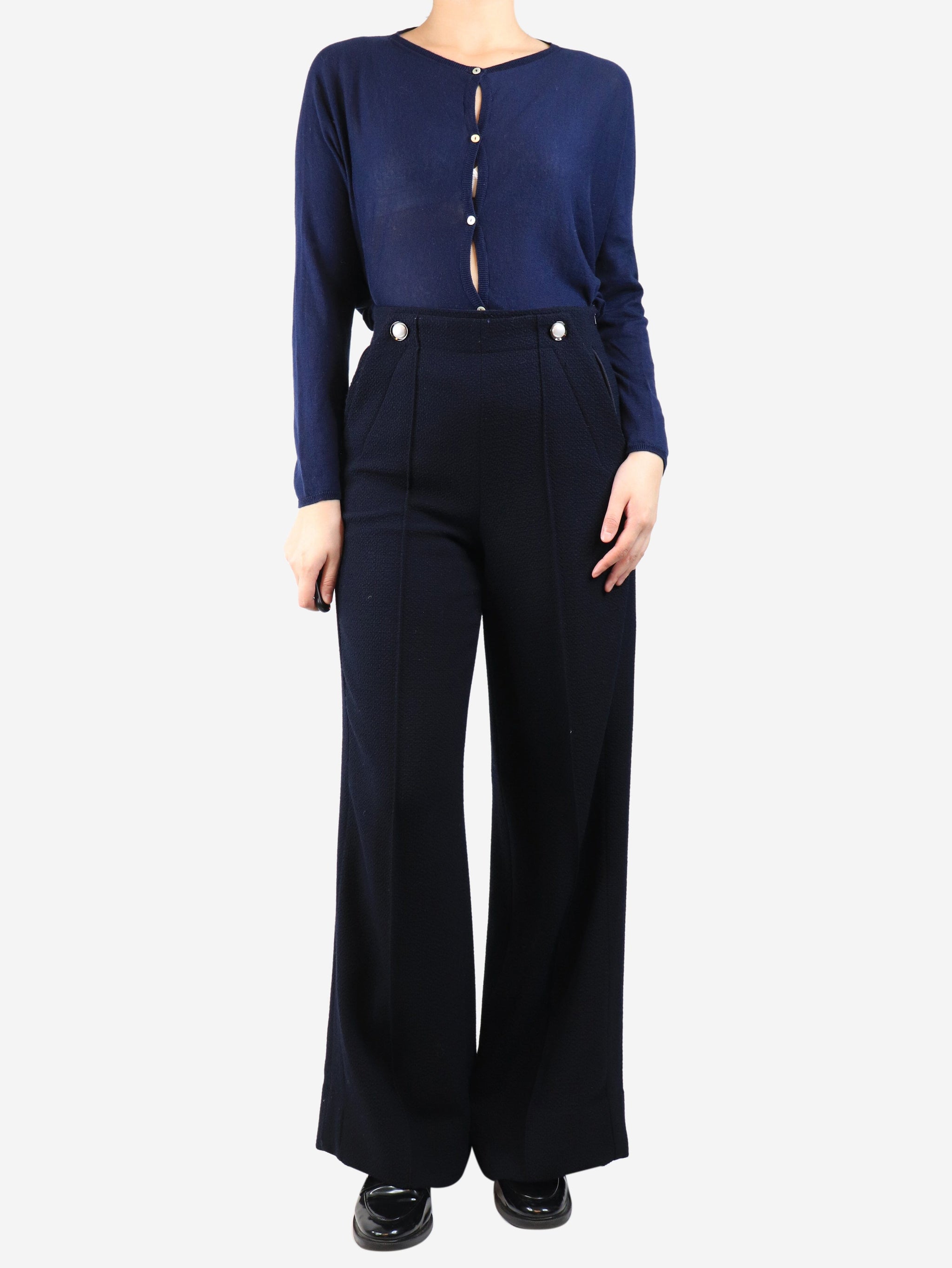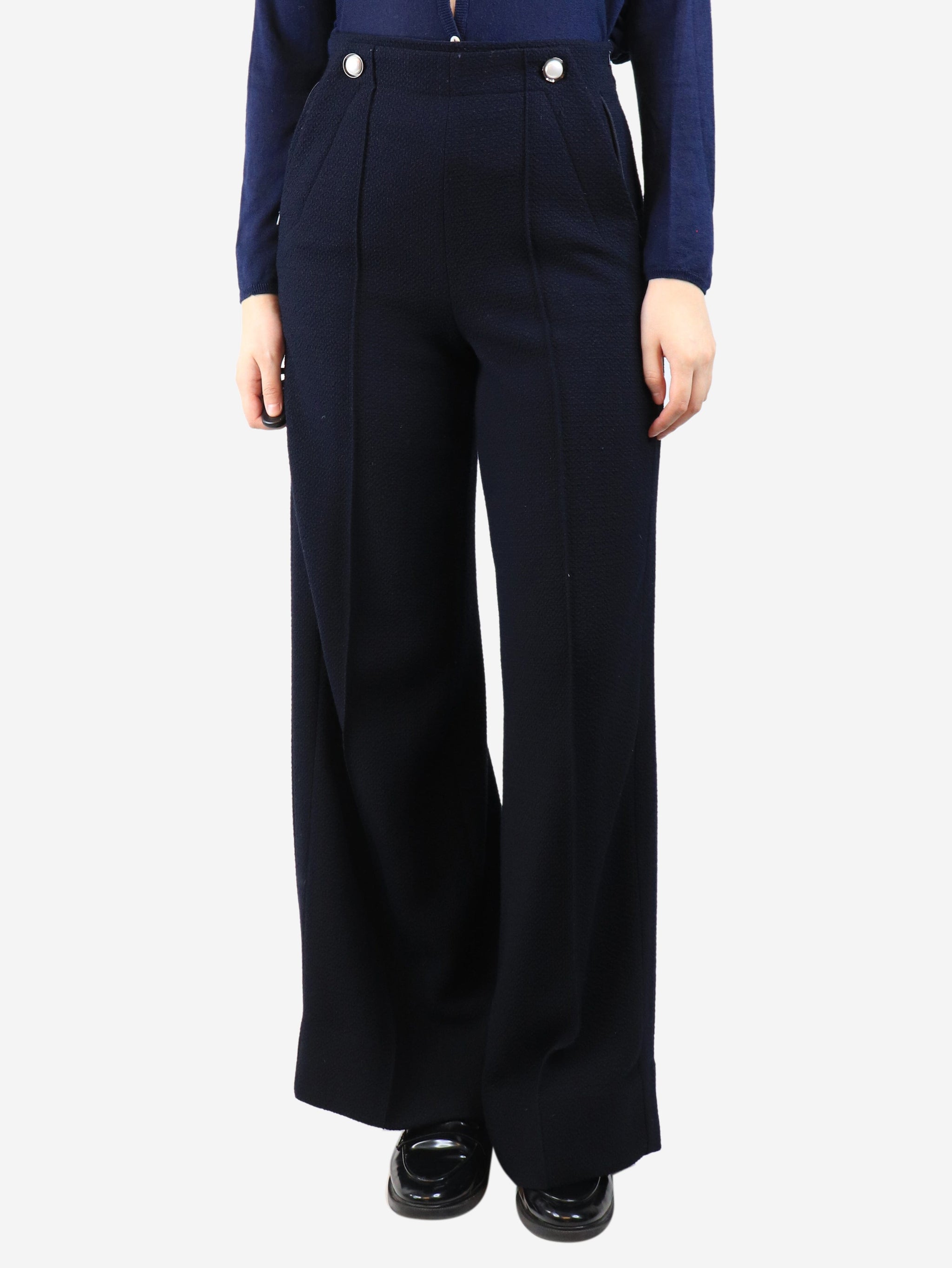 Navy boucle trousers - size UK 8