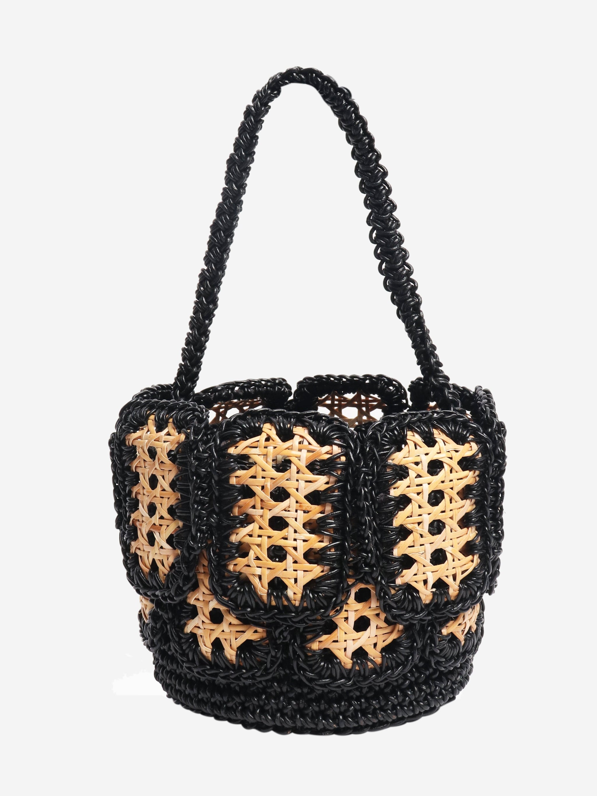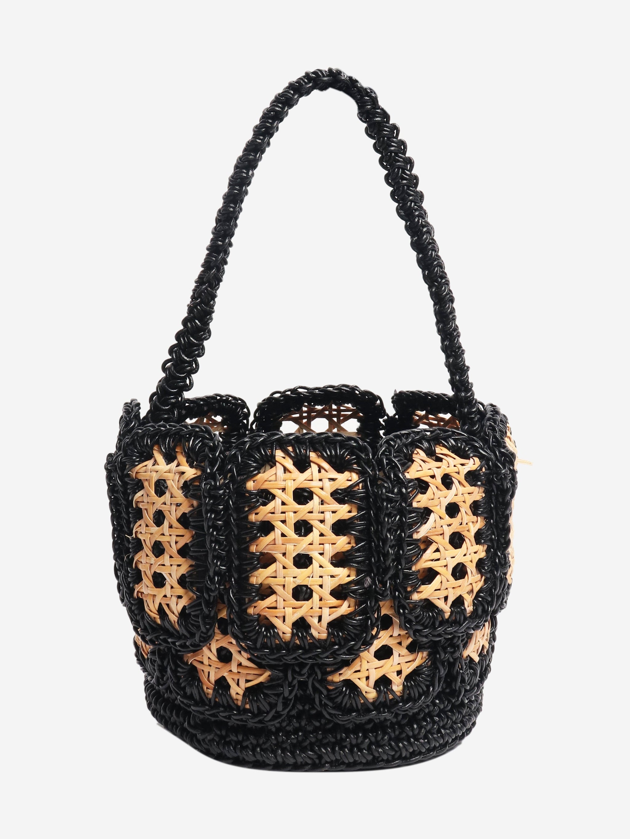 Neutral woven raffia top handle bag