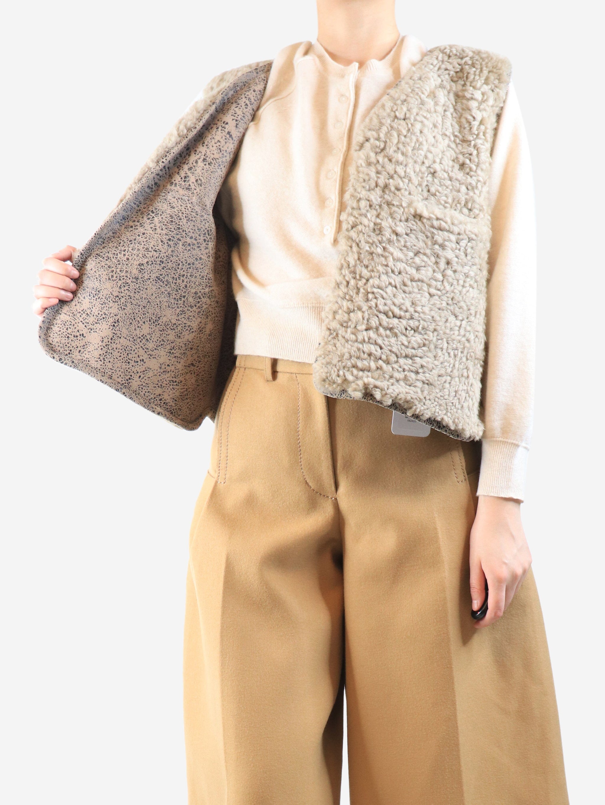 Neutral shearling moon vest - size M