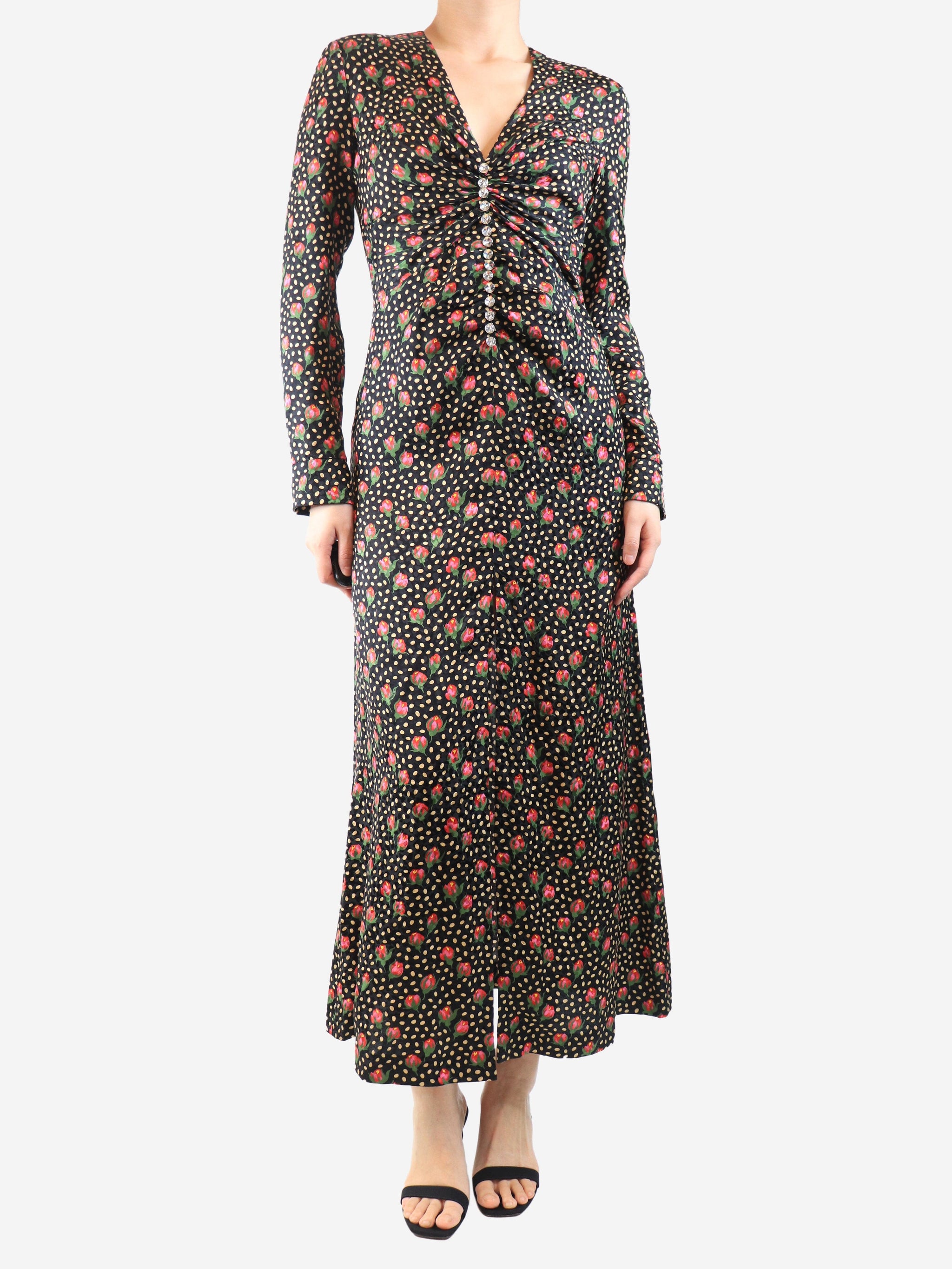 Black floral maxi dress - size UK 8