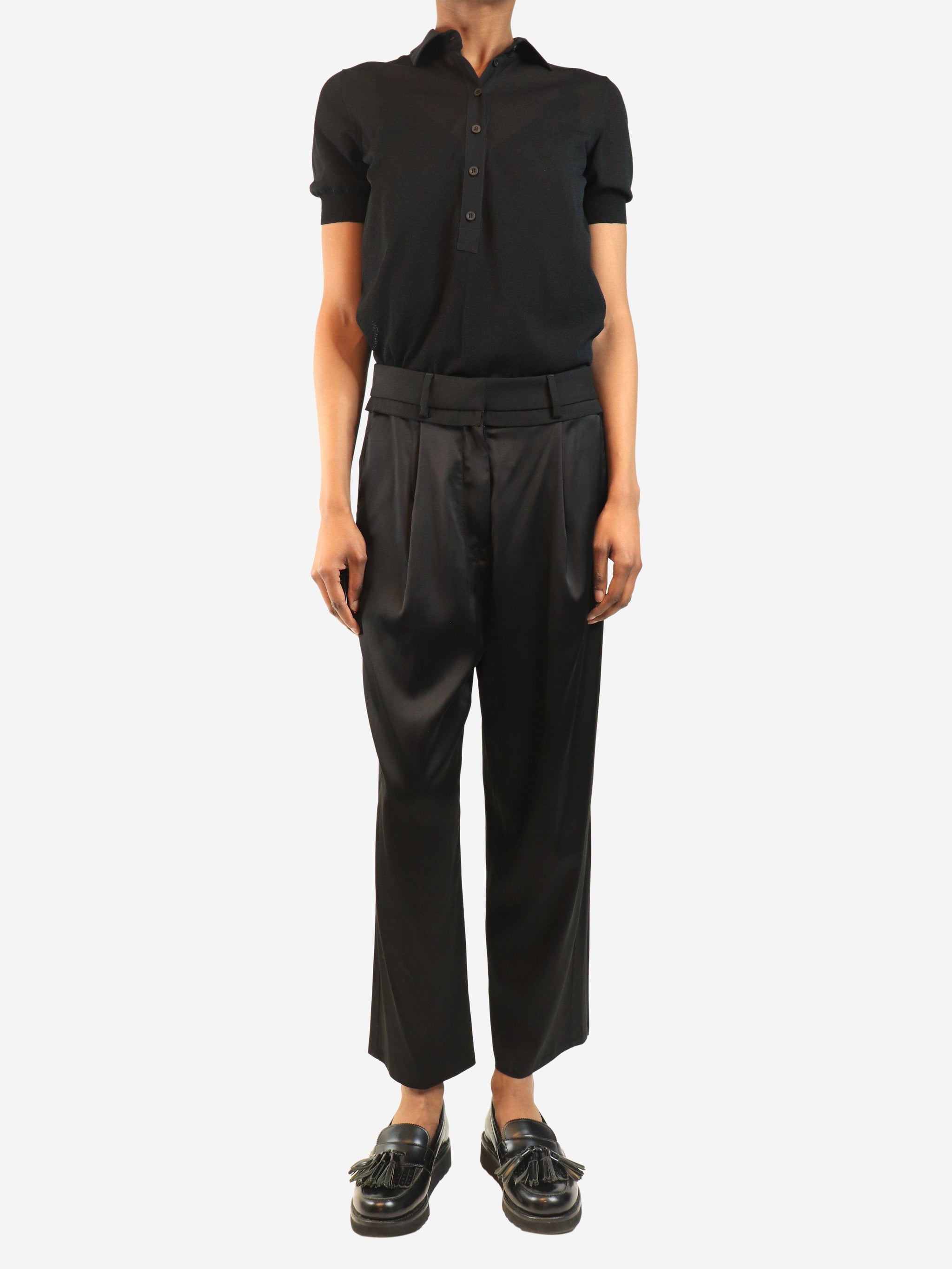 Black satin trousers - size UK 8