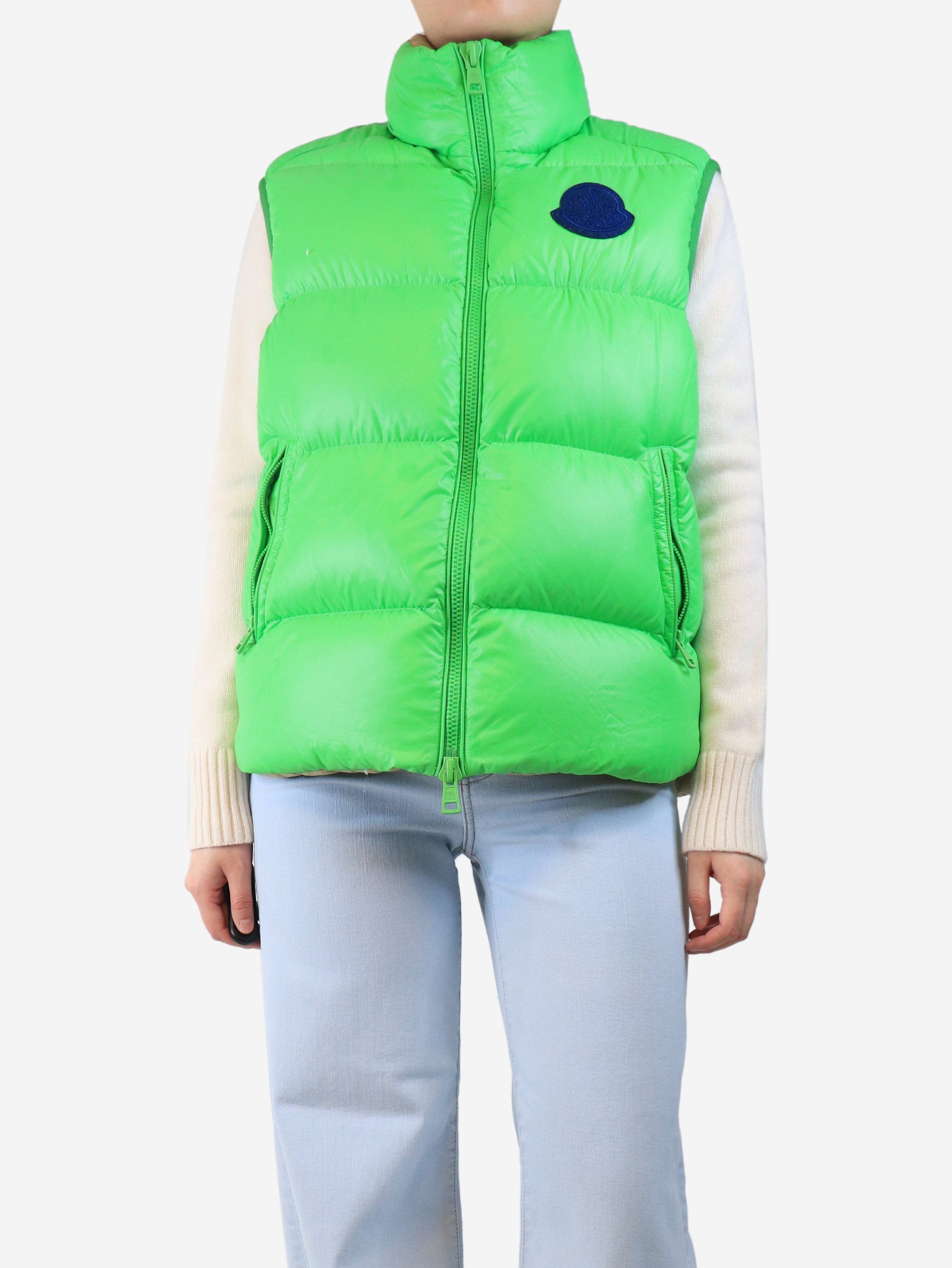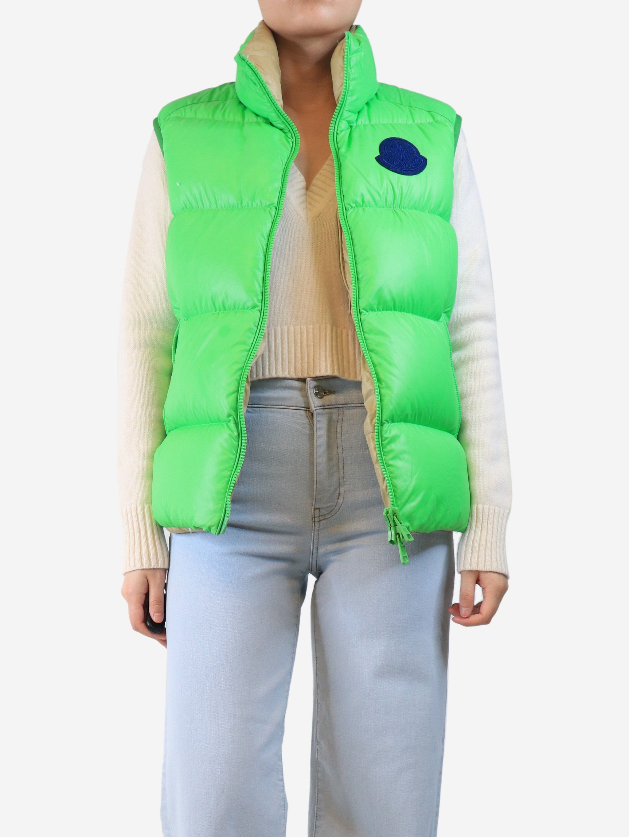 Bright green puffer vest - size UK 12