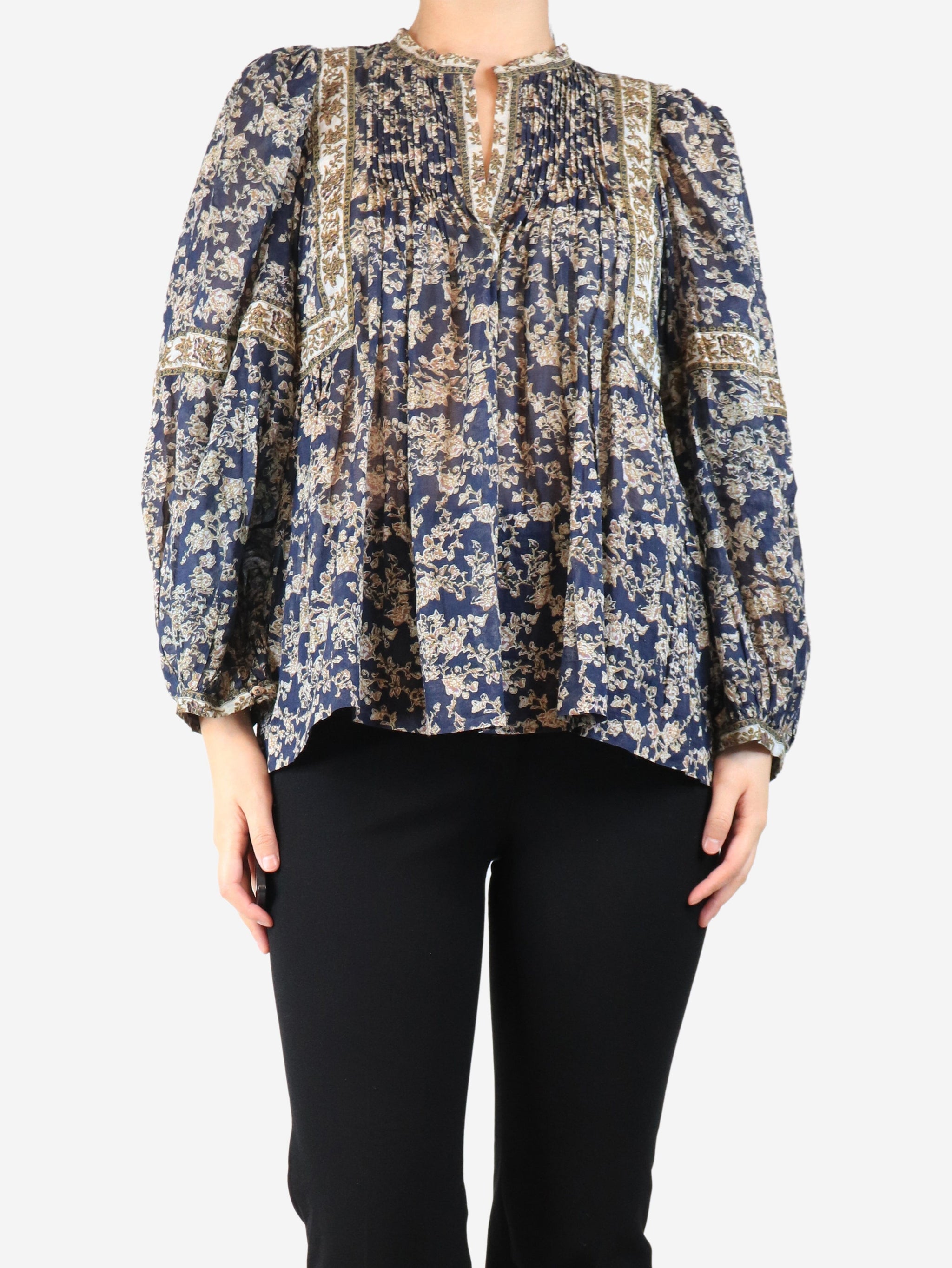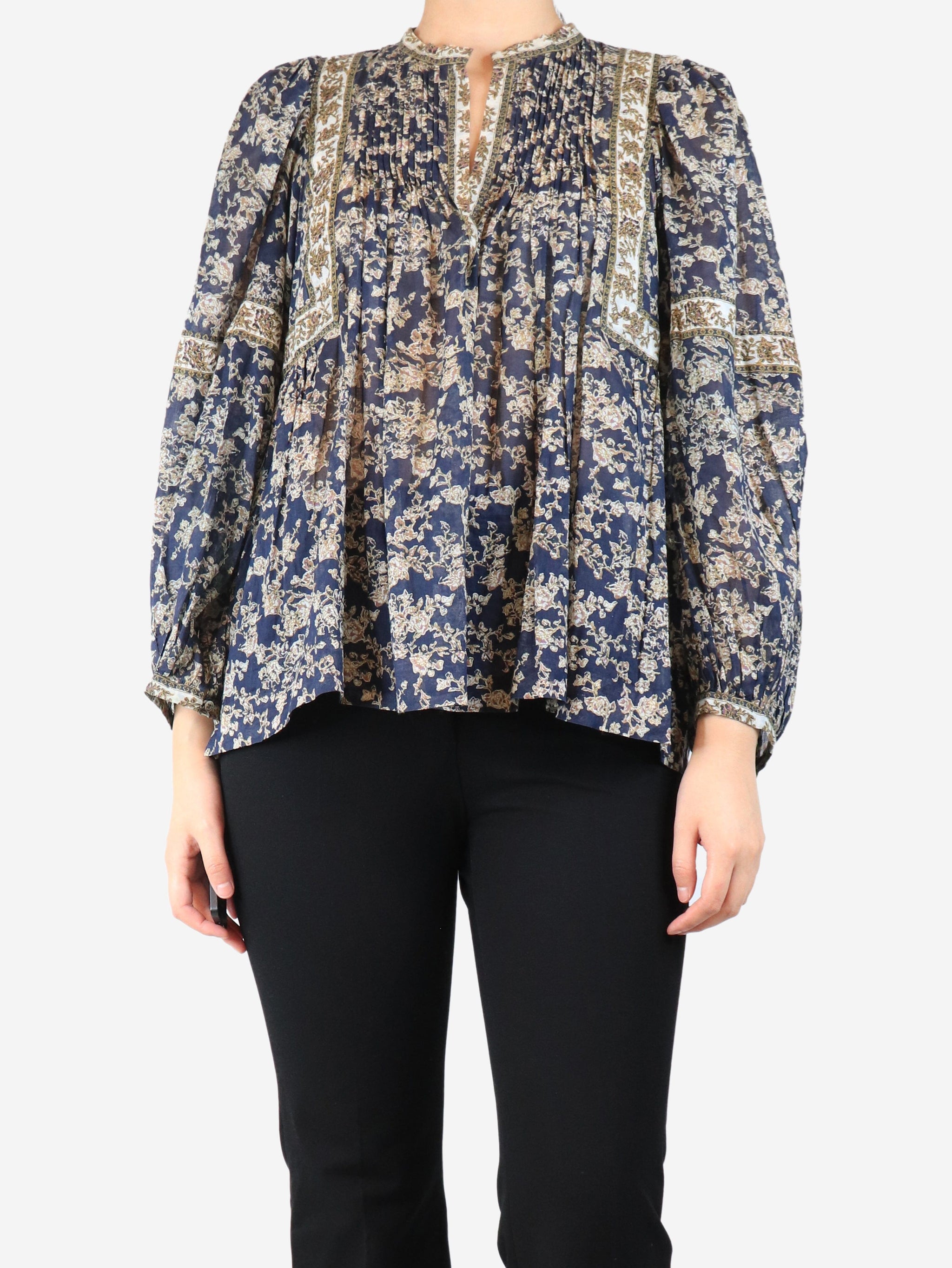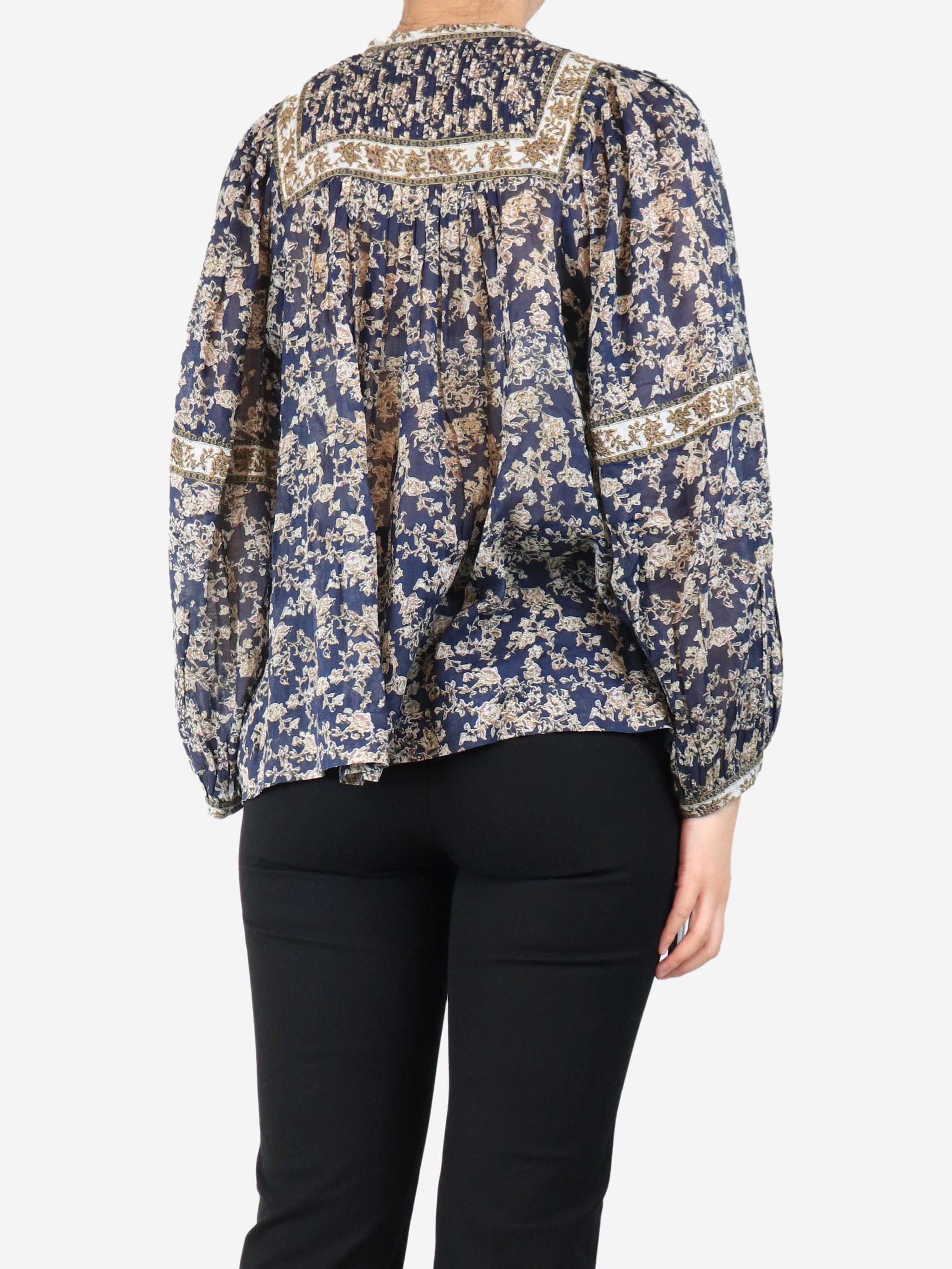 Navy sheer floral blouse - size UK 8