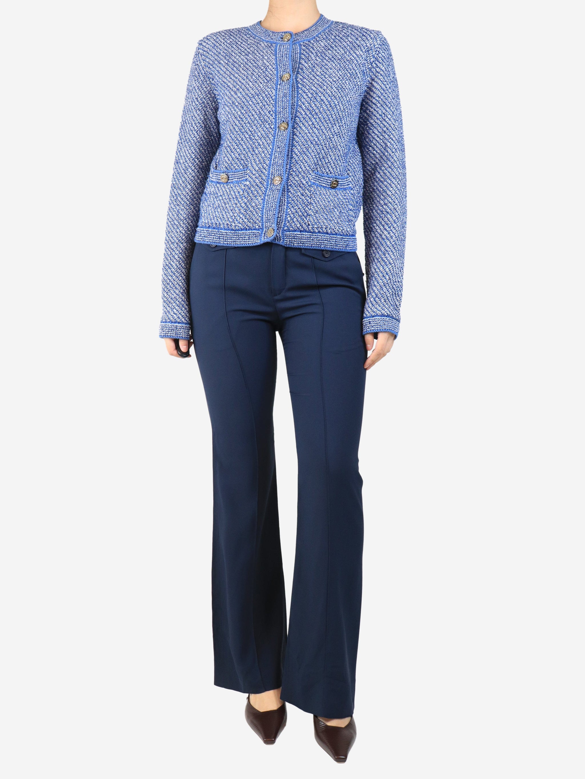Navy wide-leg tailored trousers - size UK 10