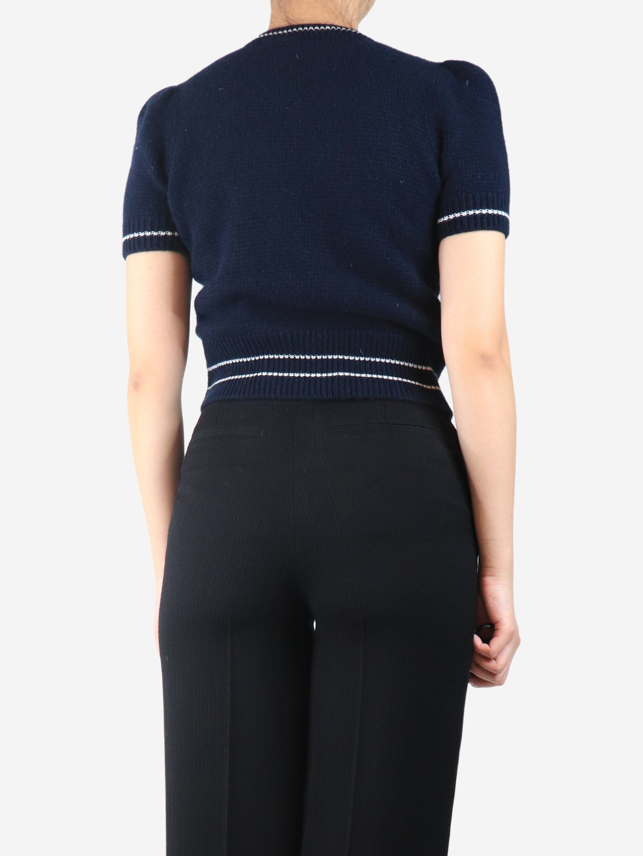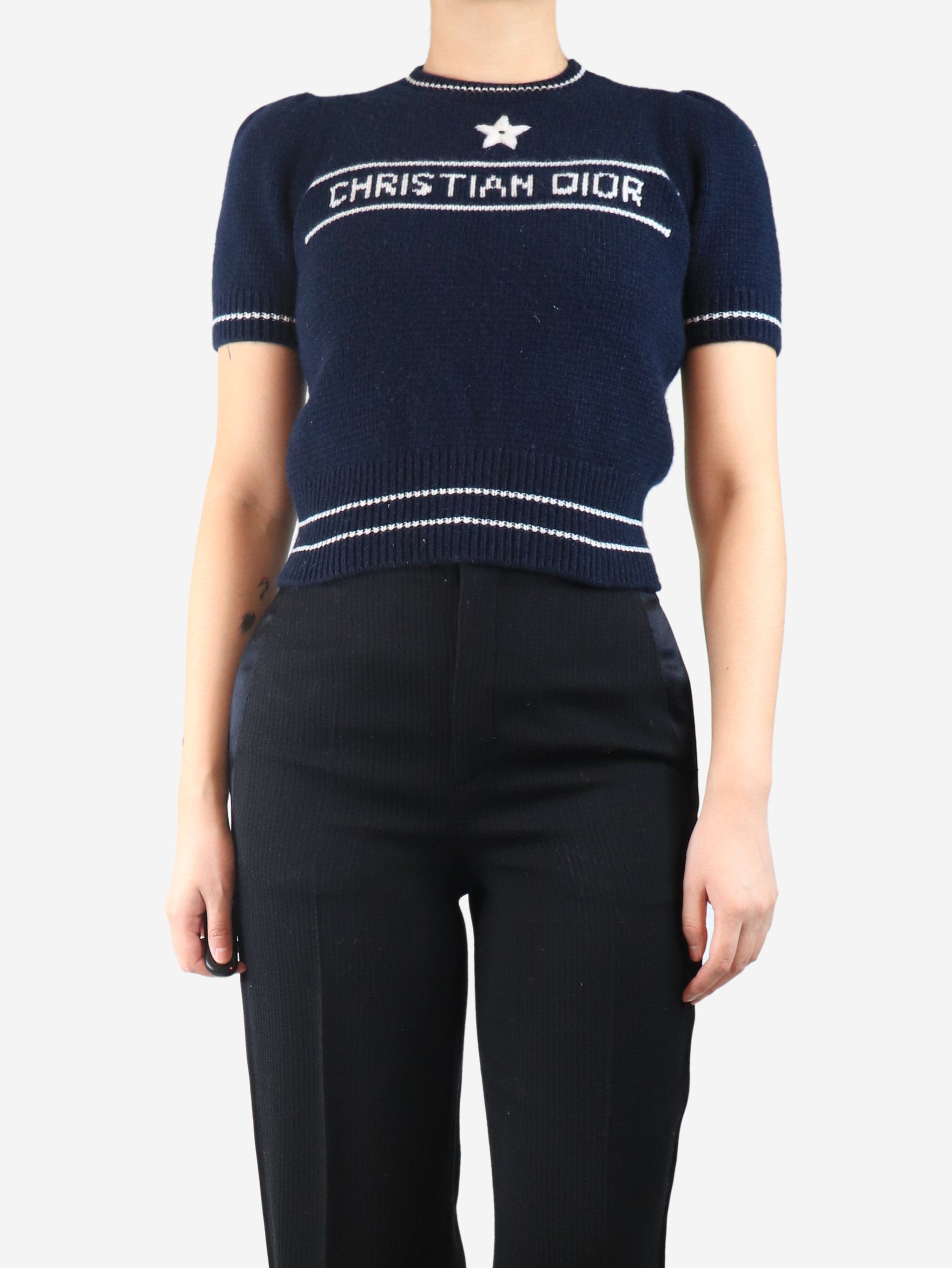 Navy wool spell-out top - size UK 10