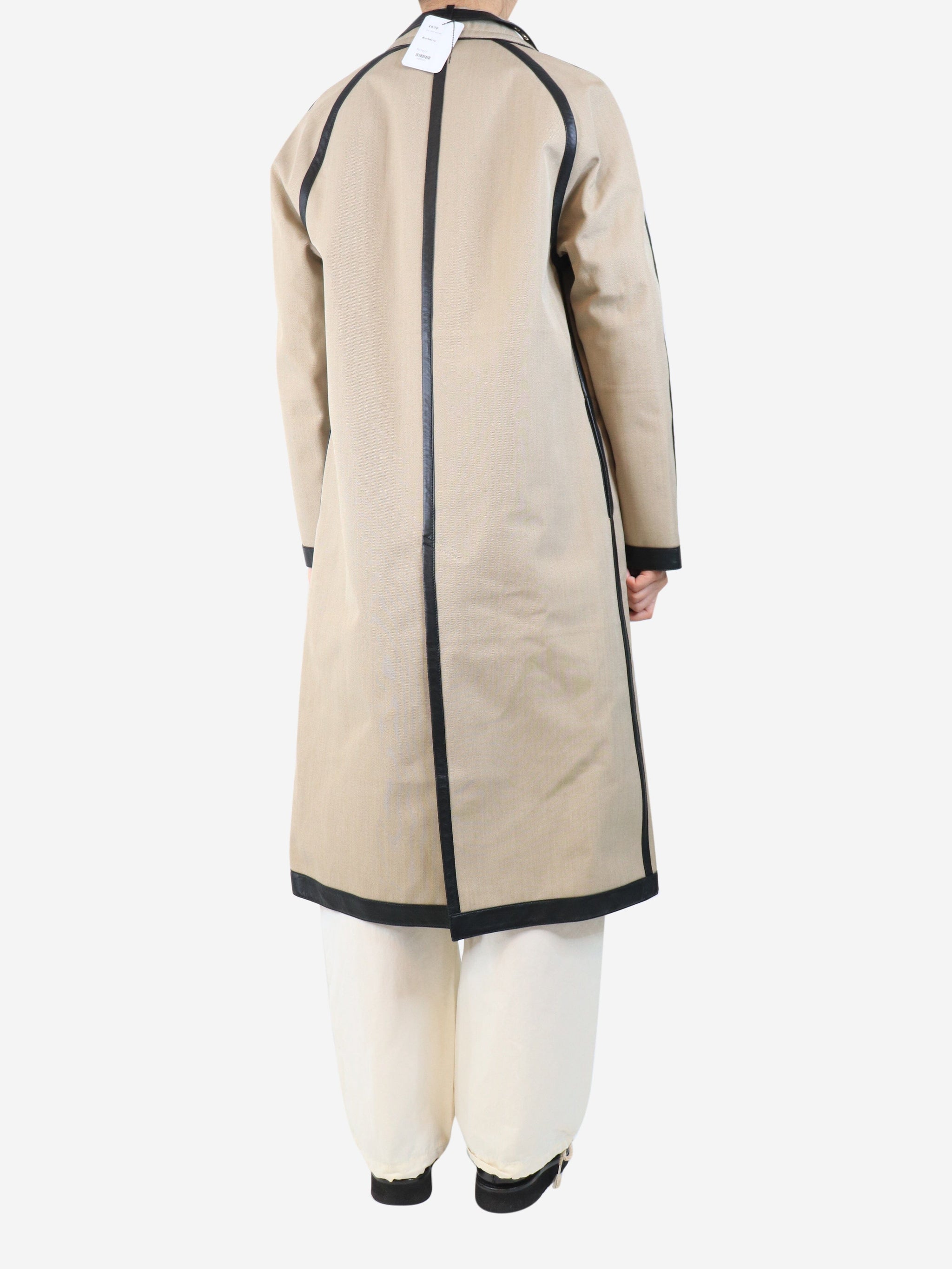 Neutral canvas and leather coat - size UK 8