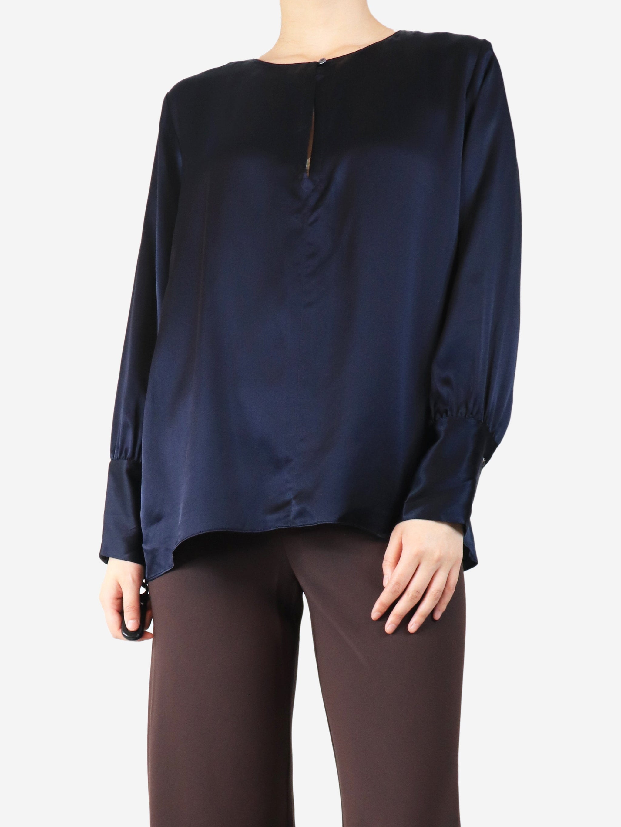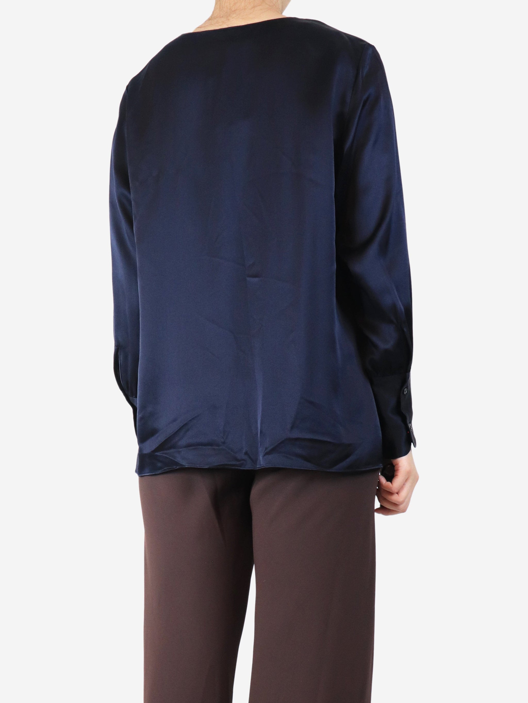 Navy silk satin blouse - size L
