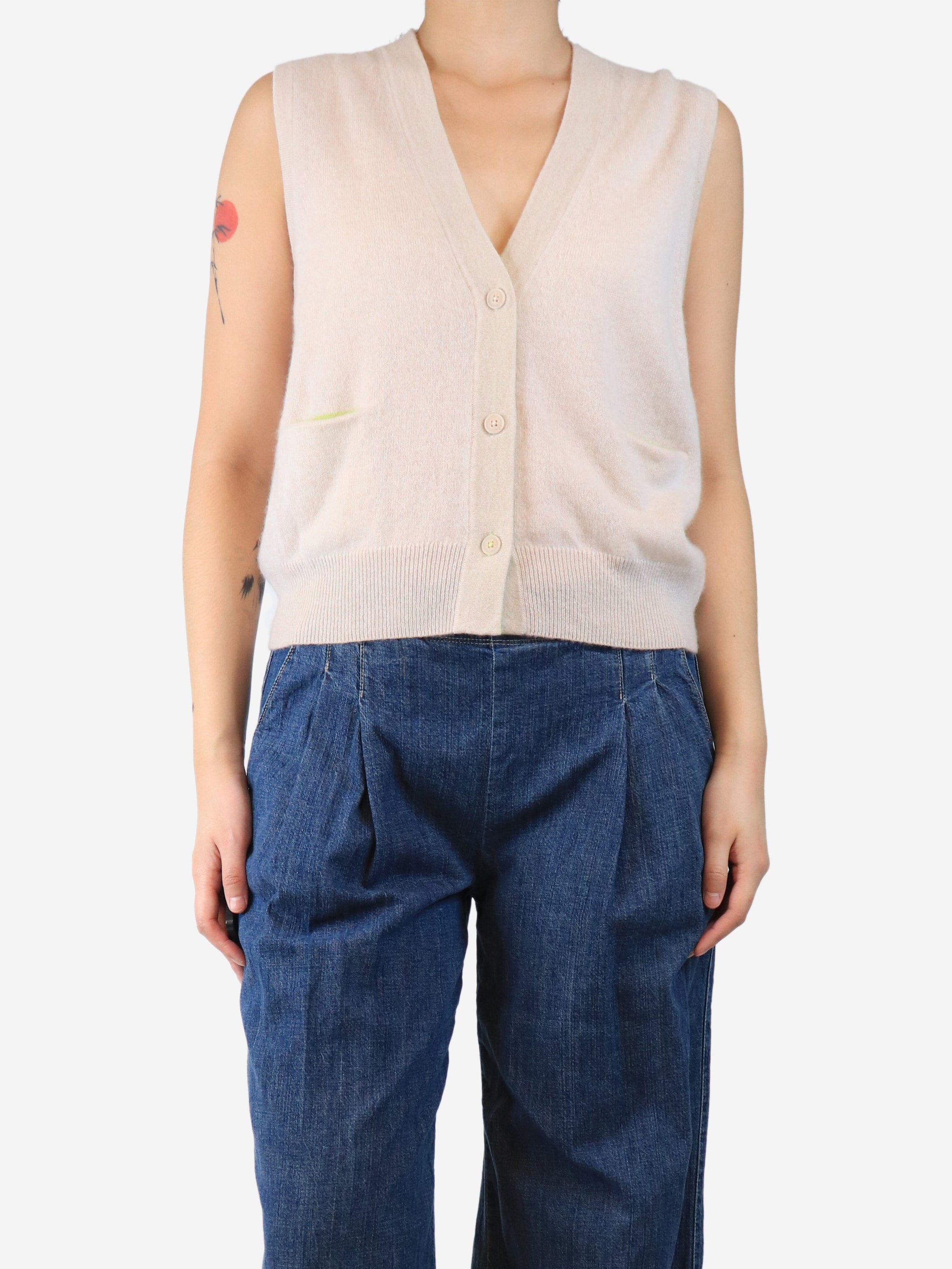 Beige sleeveless cardigan - size L