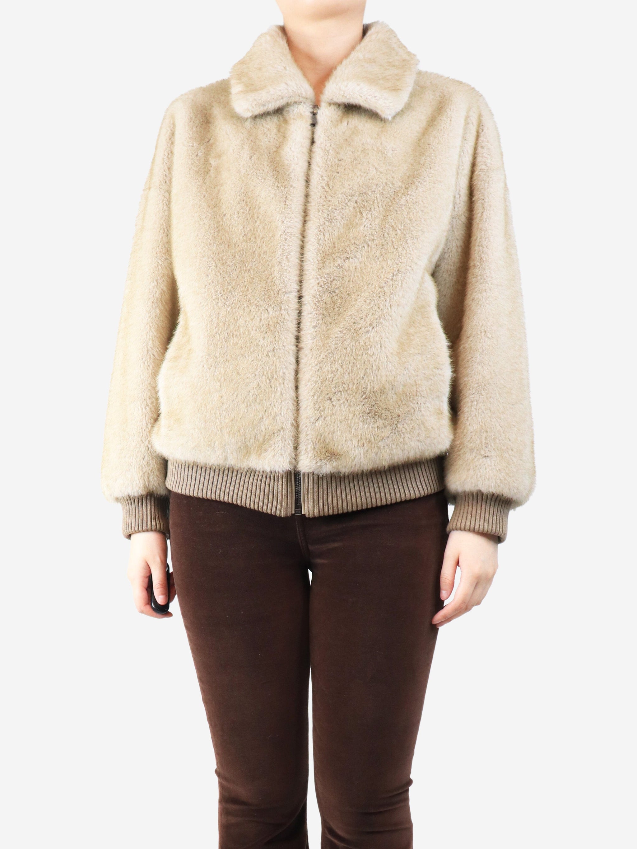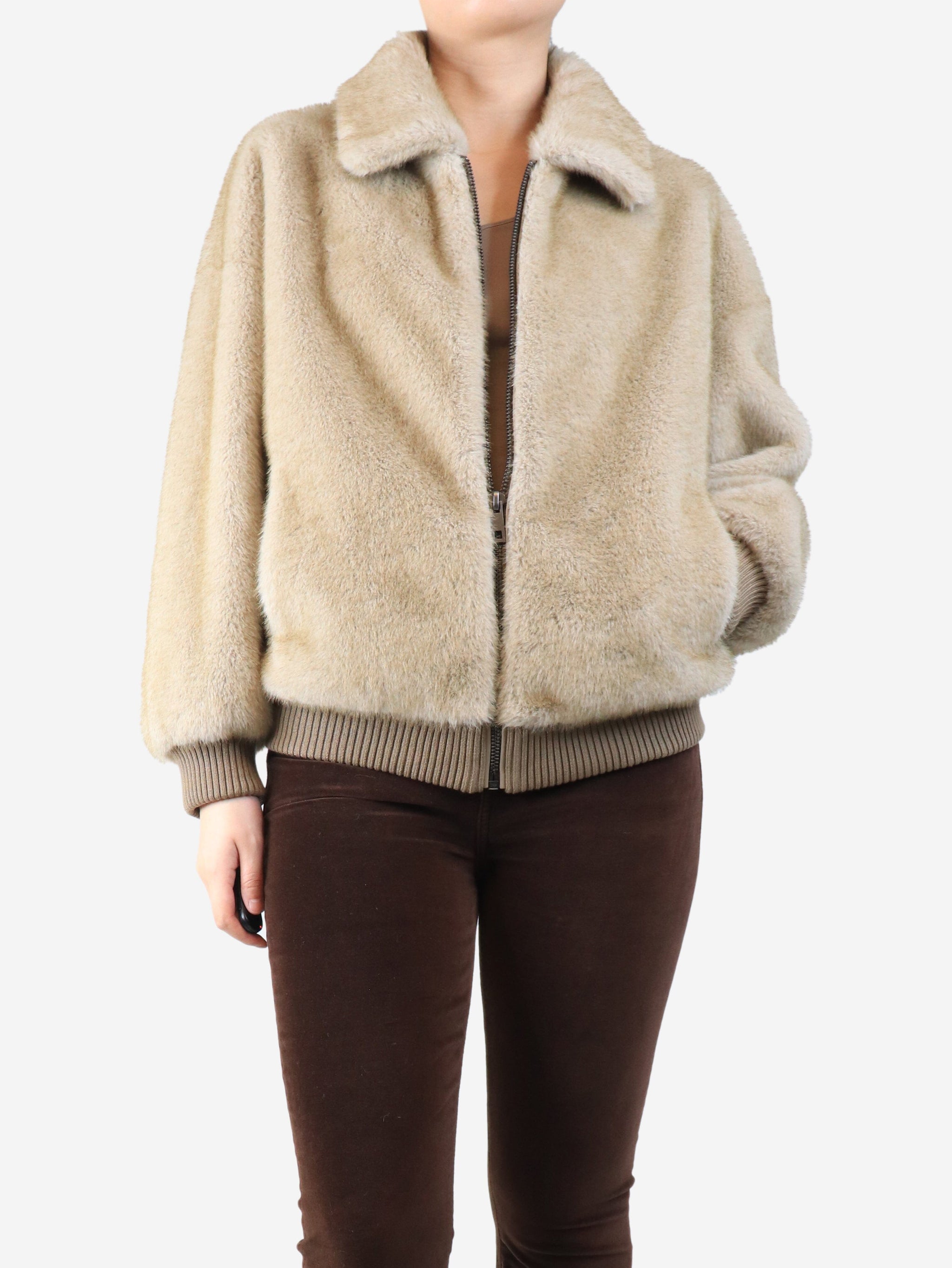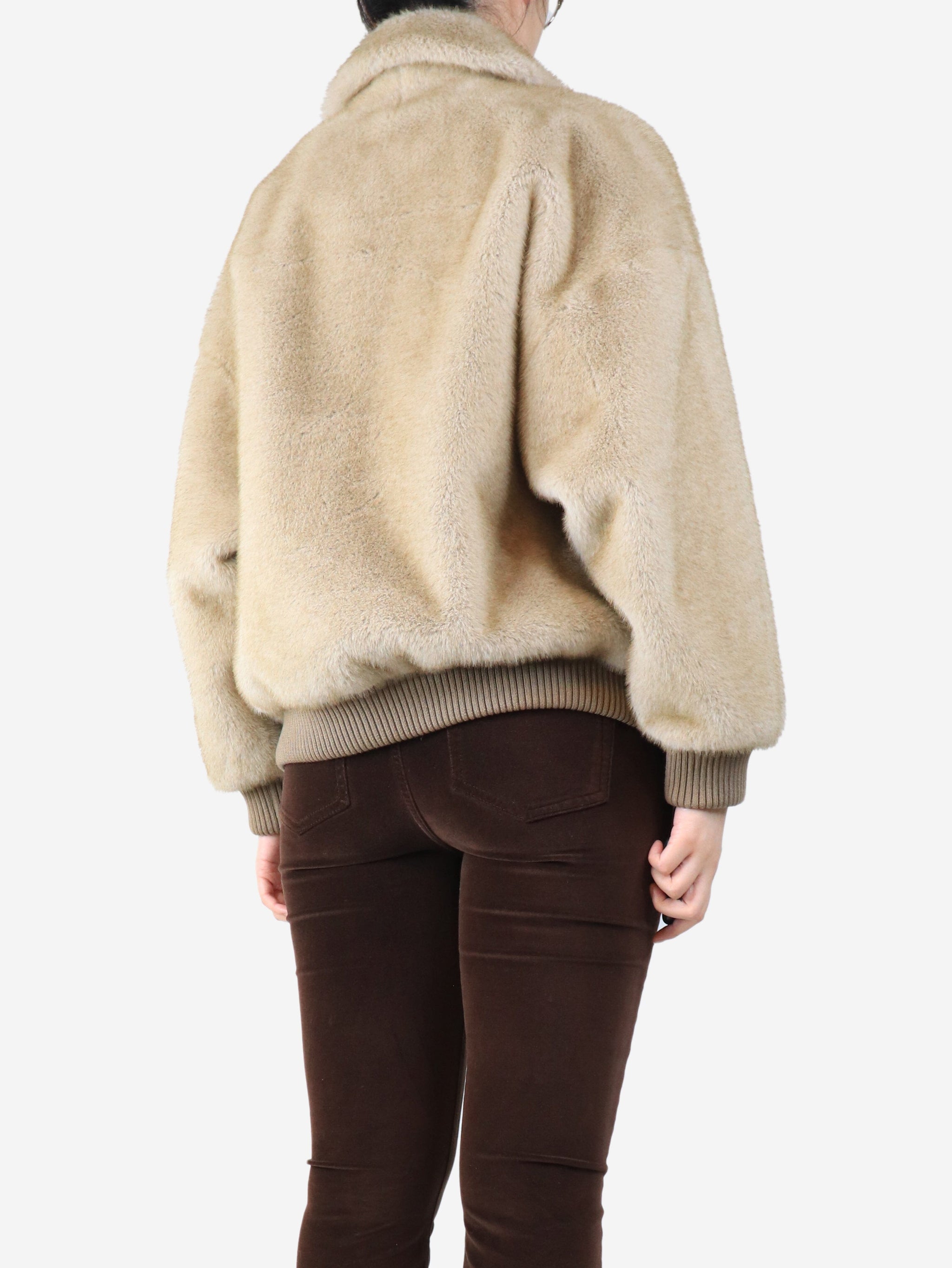 Brown faux fur jacket - size UK 8