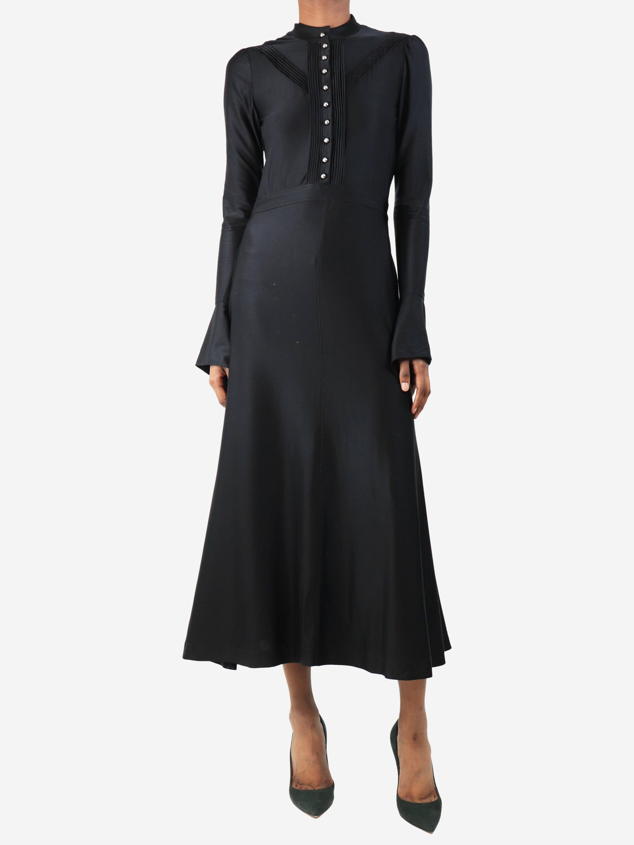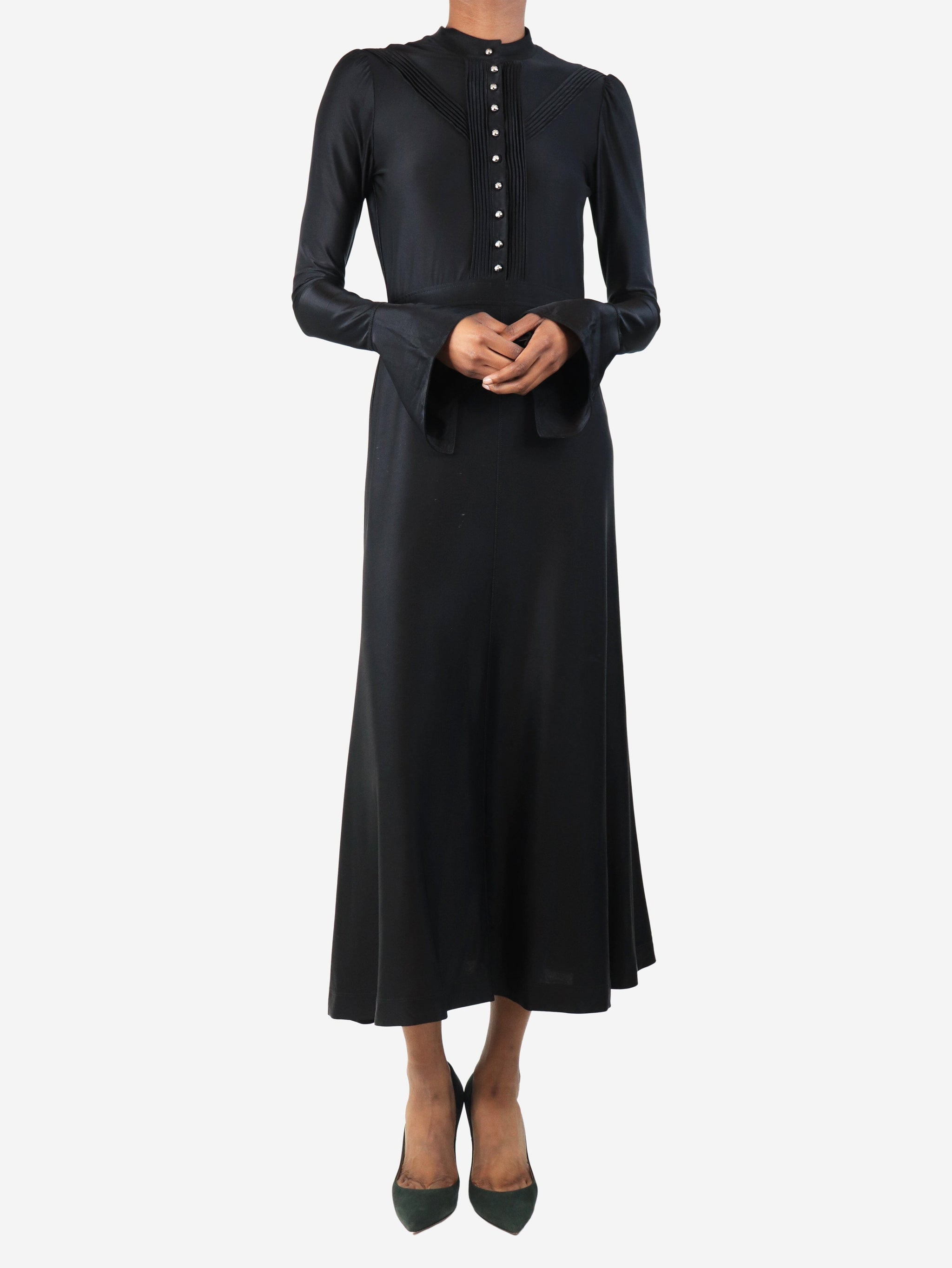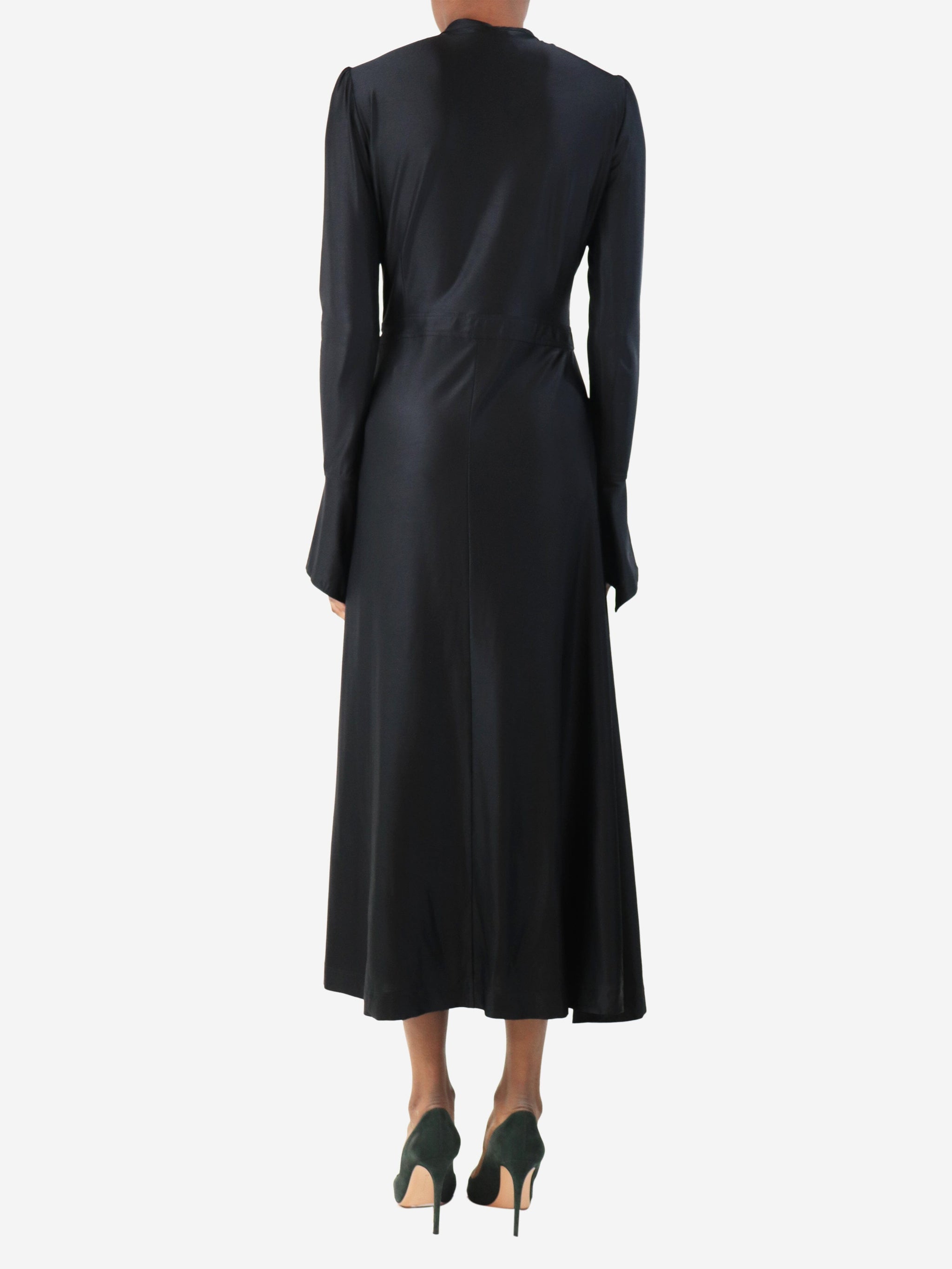 Black satin midi dress - size UK 8