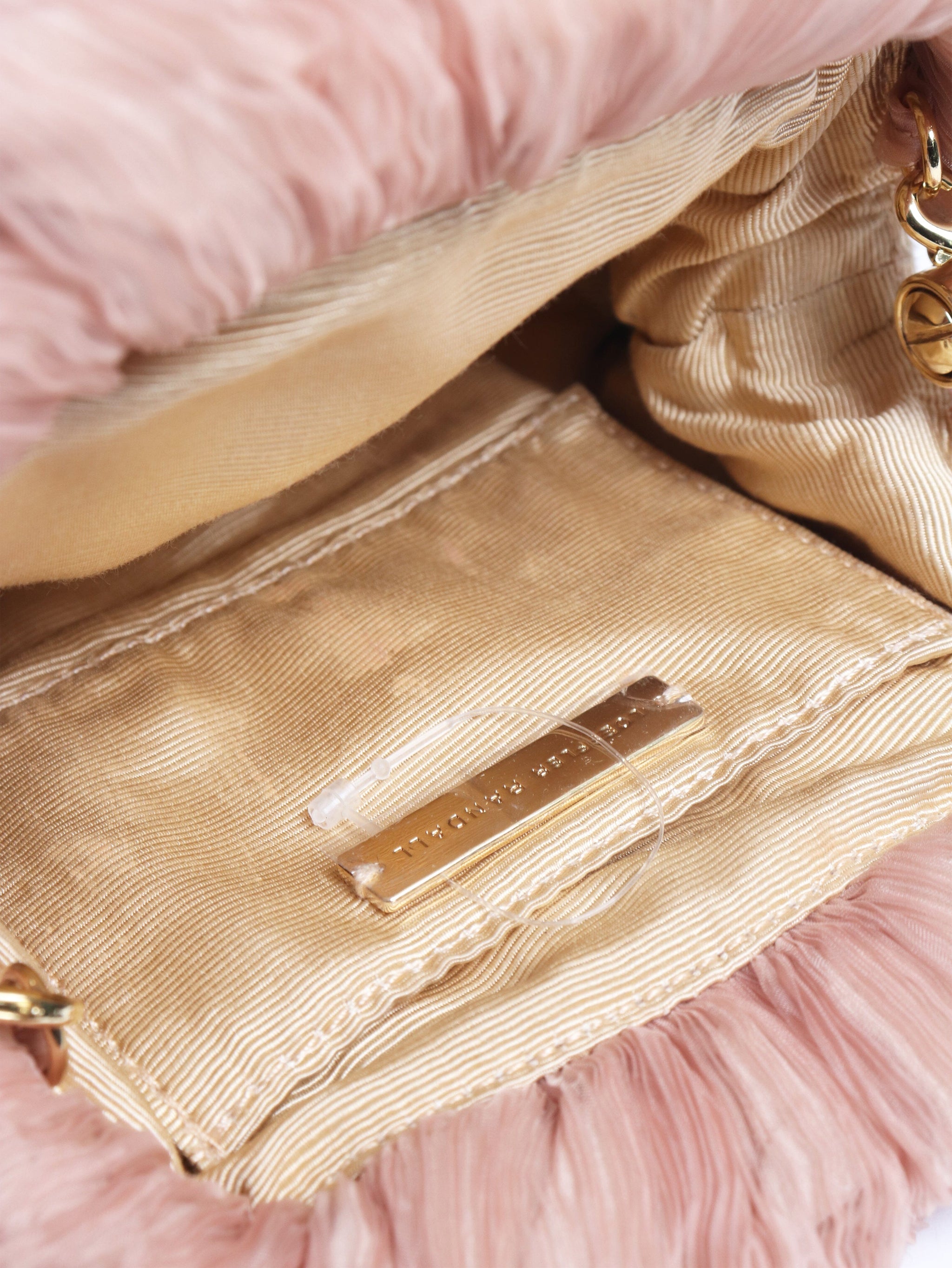 Peach organza-plisse clutch