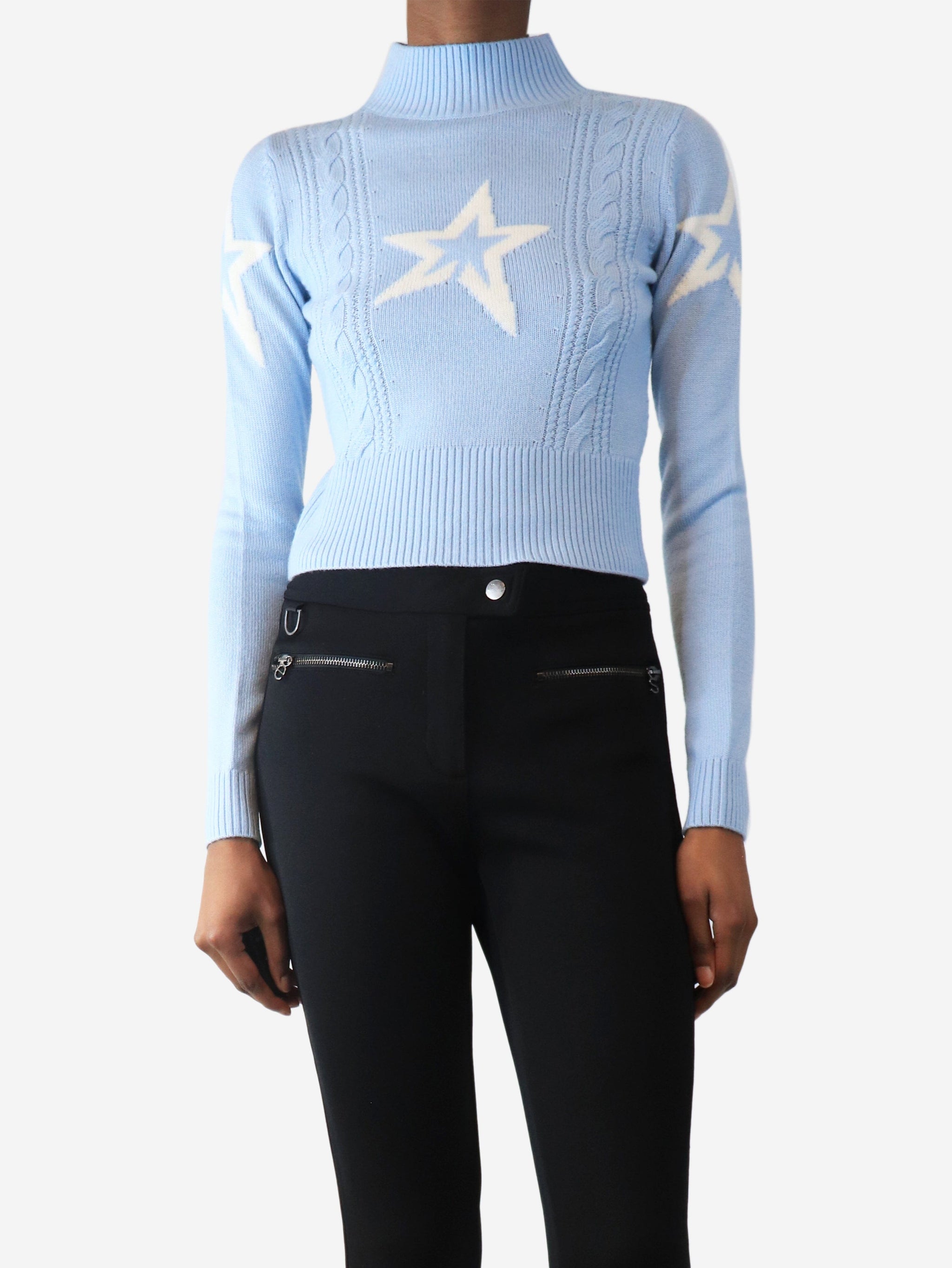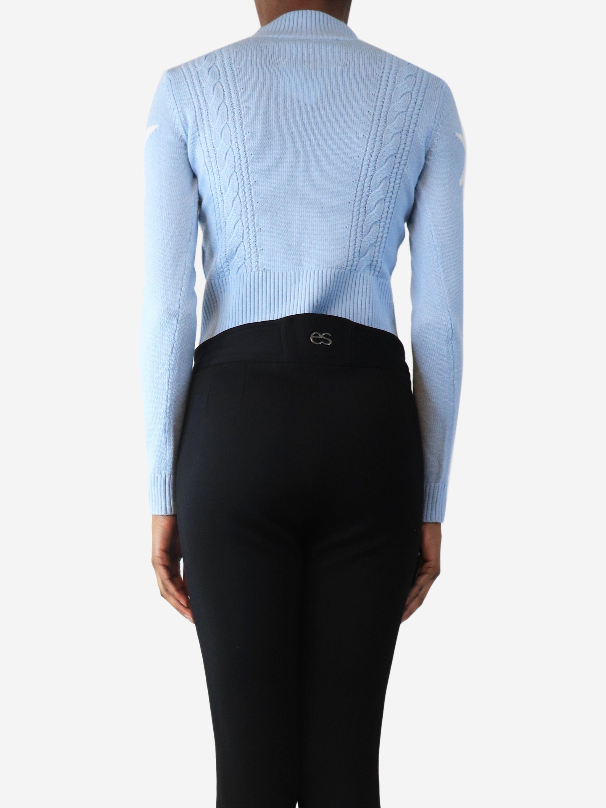 Light blue cropped cable-knit star jumper - size XS