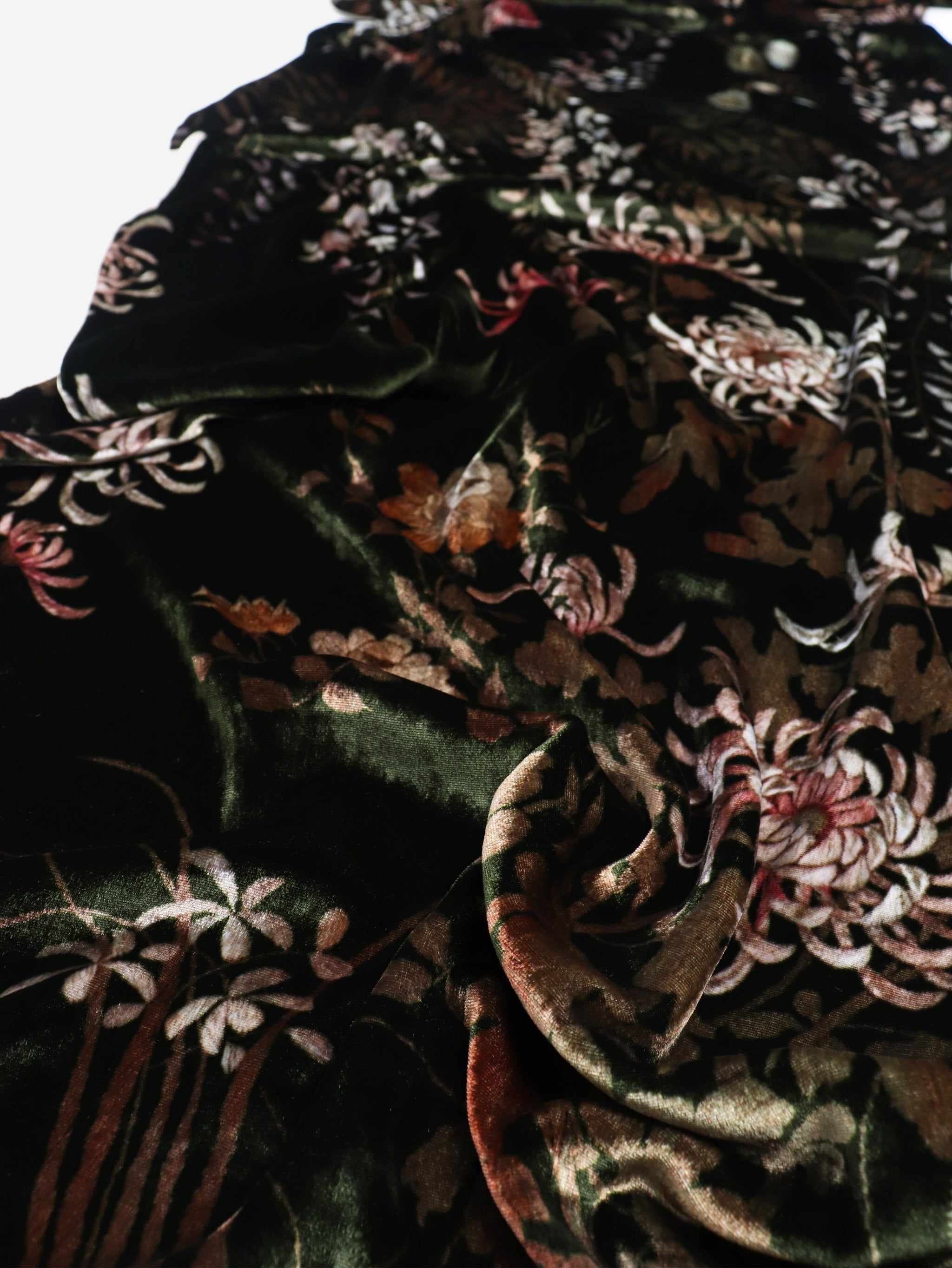Green floral velvet scarf