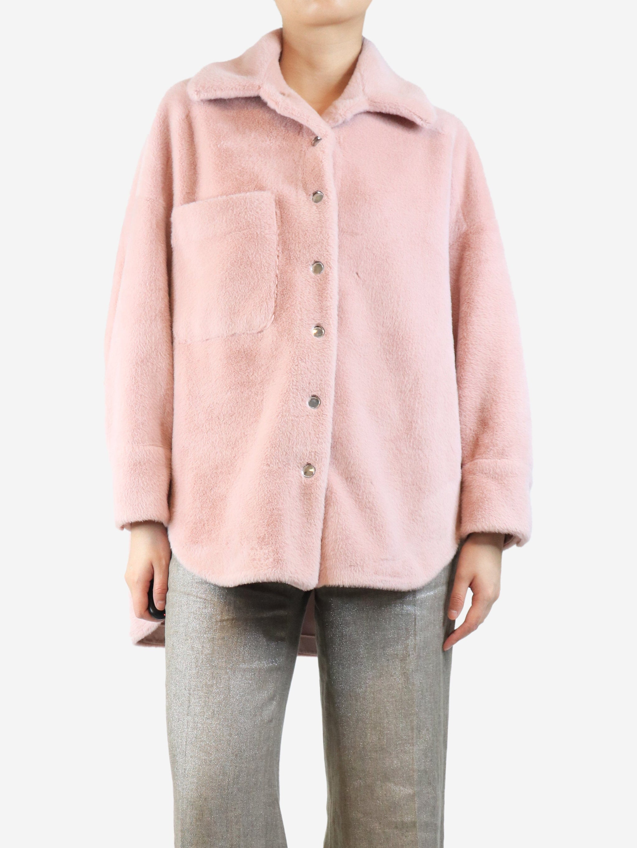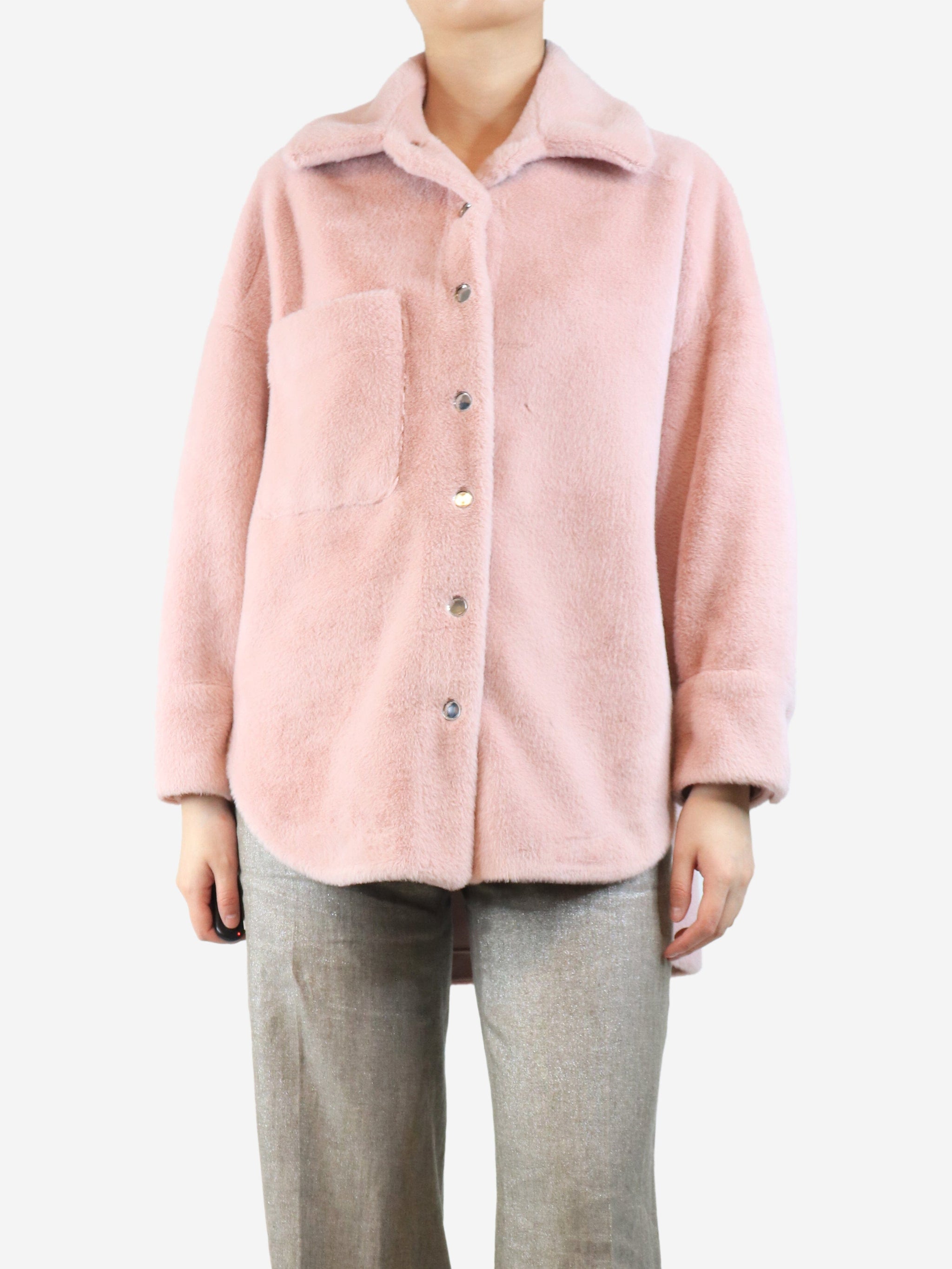 Pink faux-fur shacket - size S
