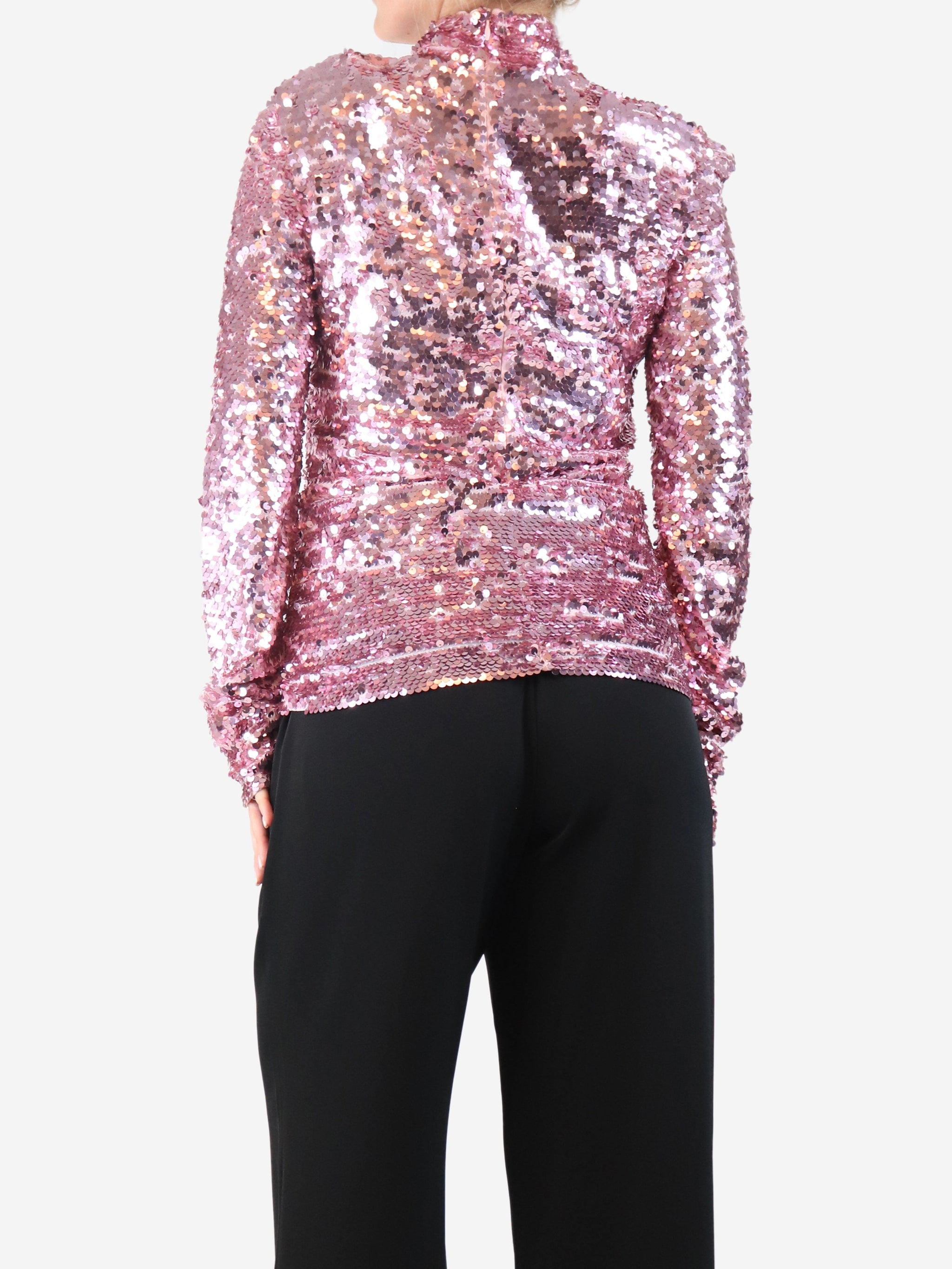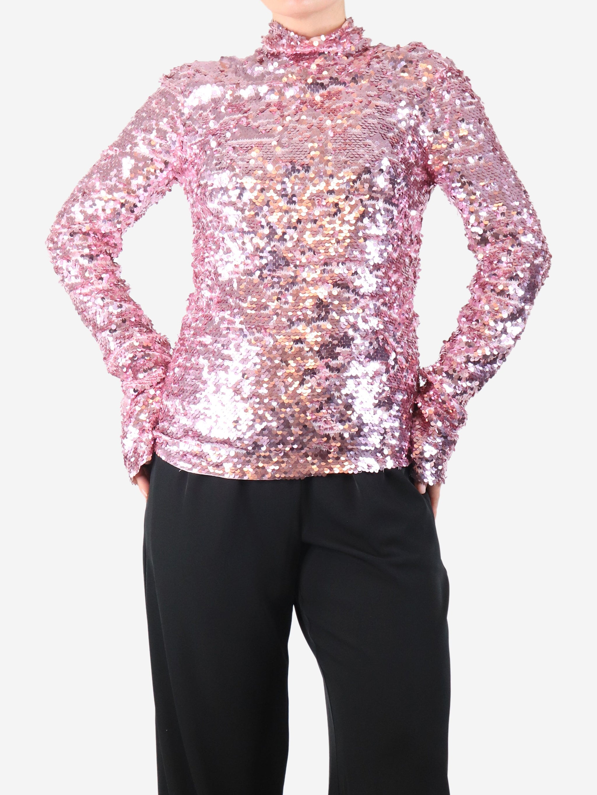 Pink long-sleeve sequin top - size UK 10