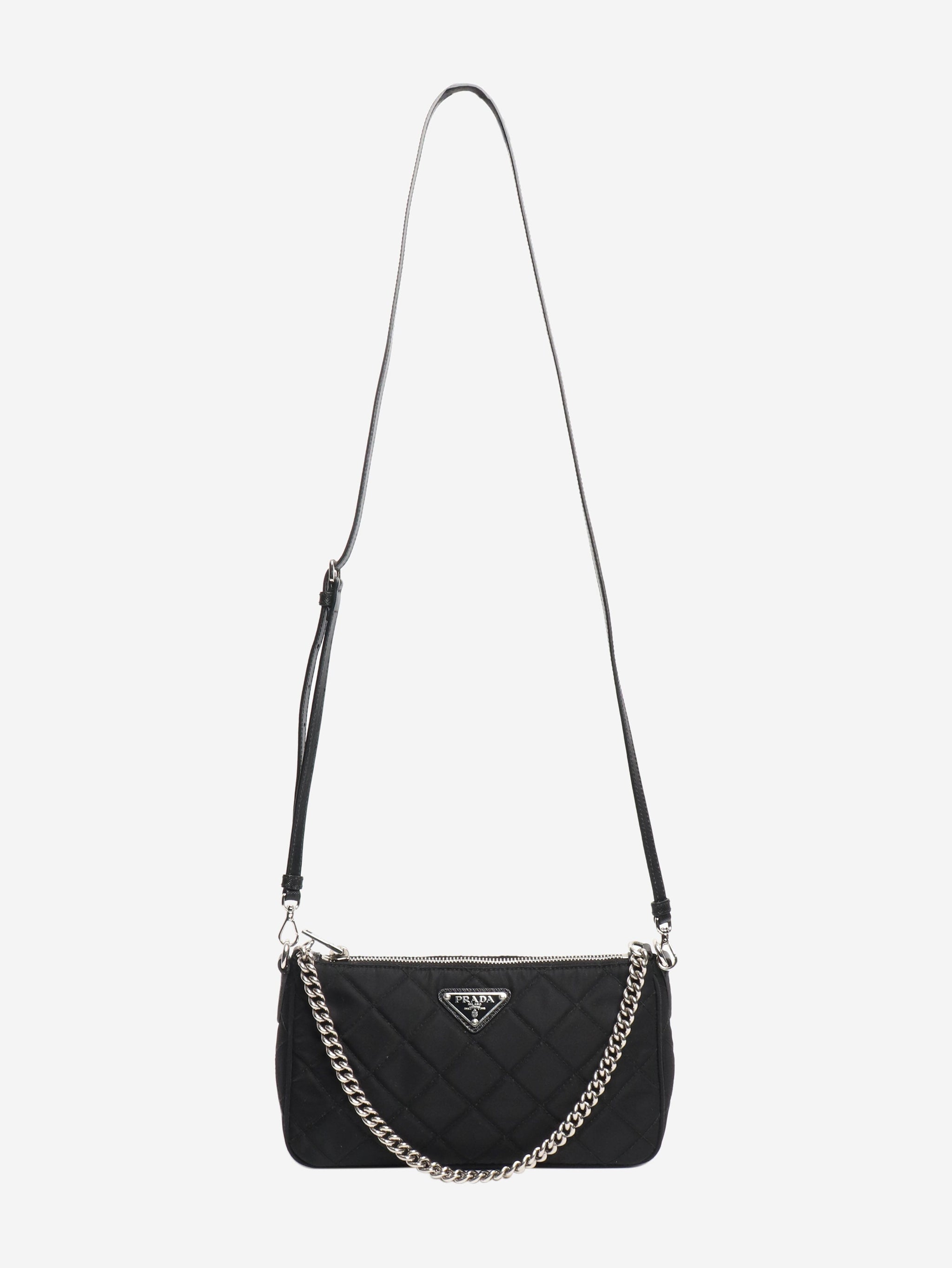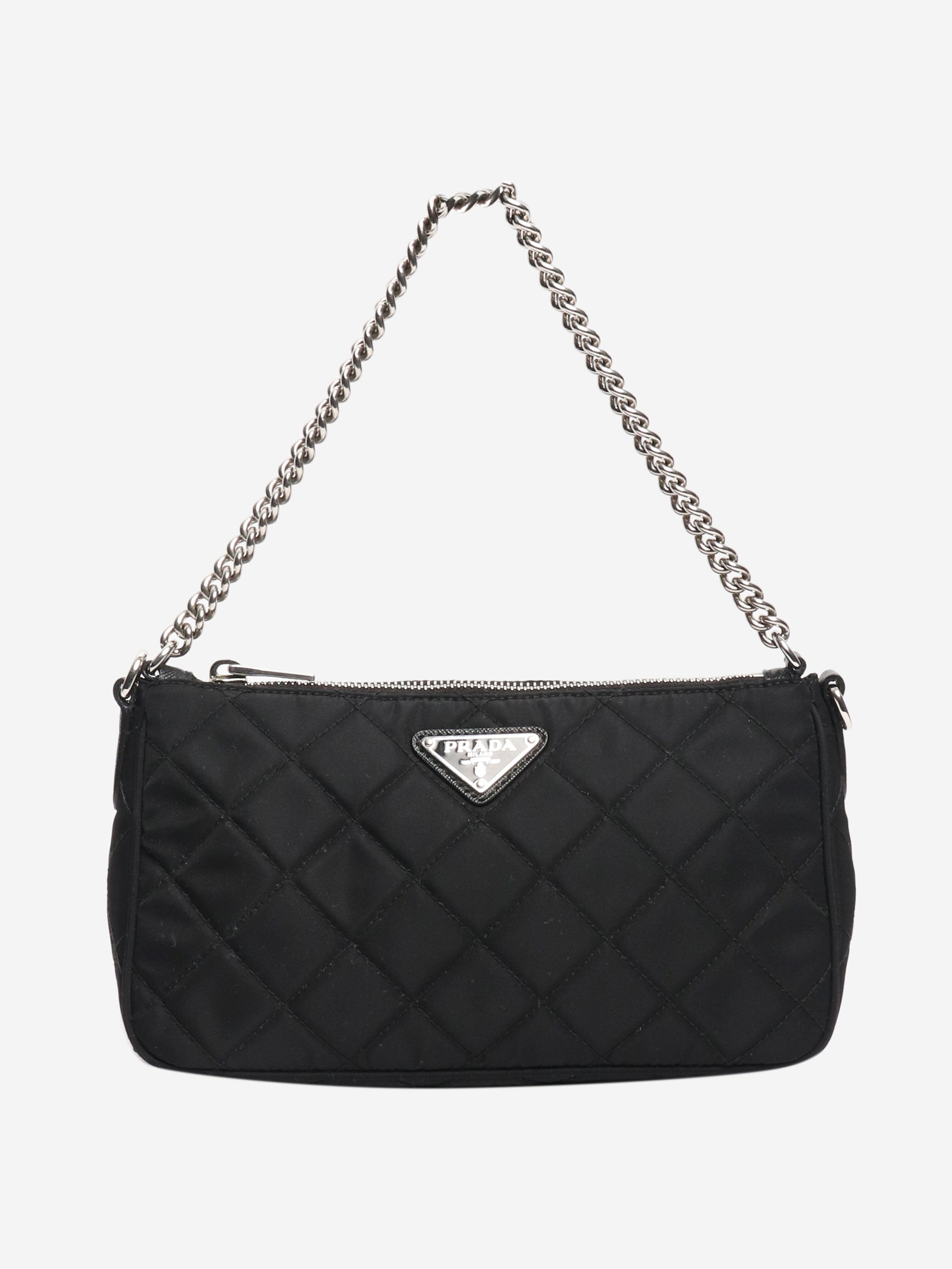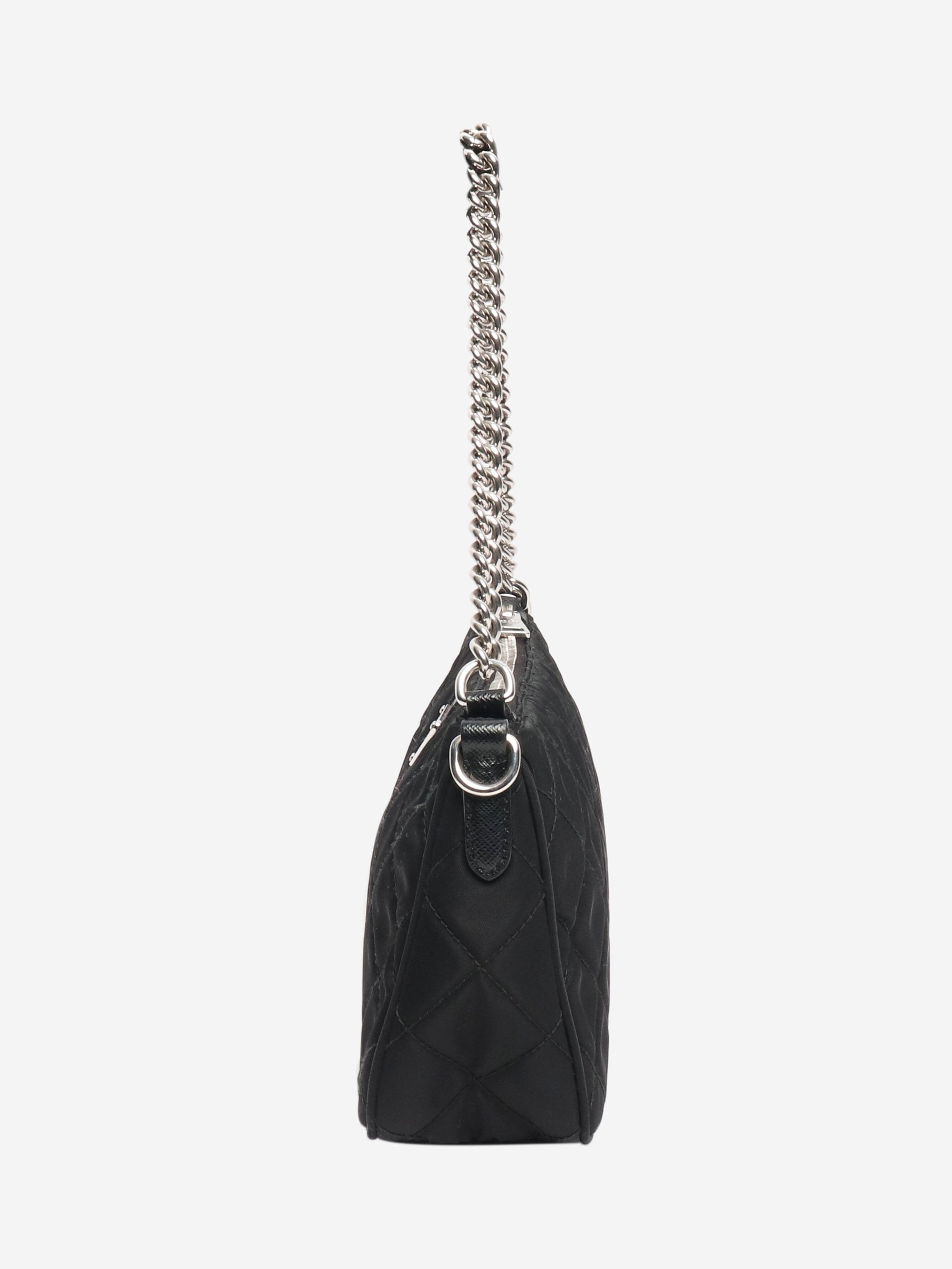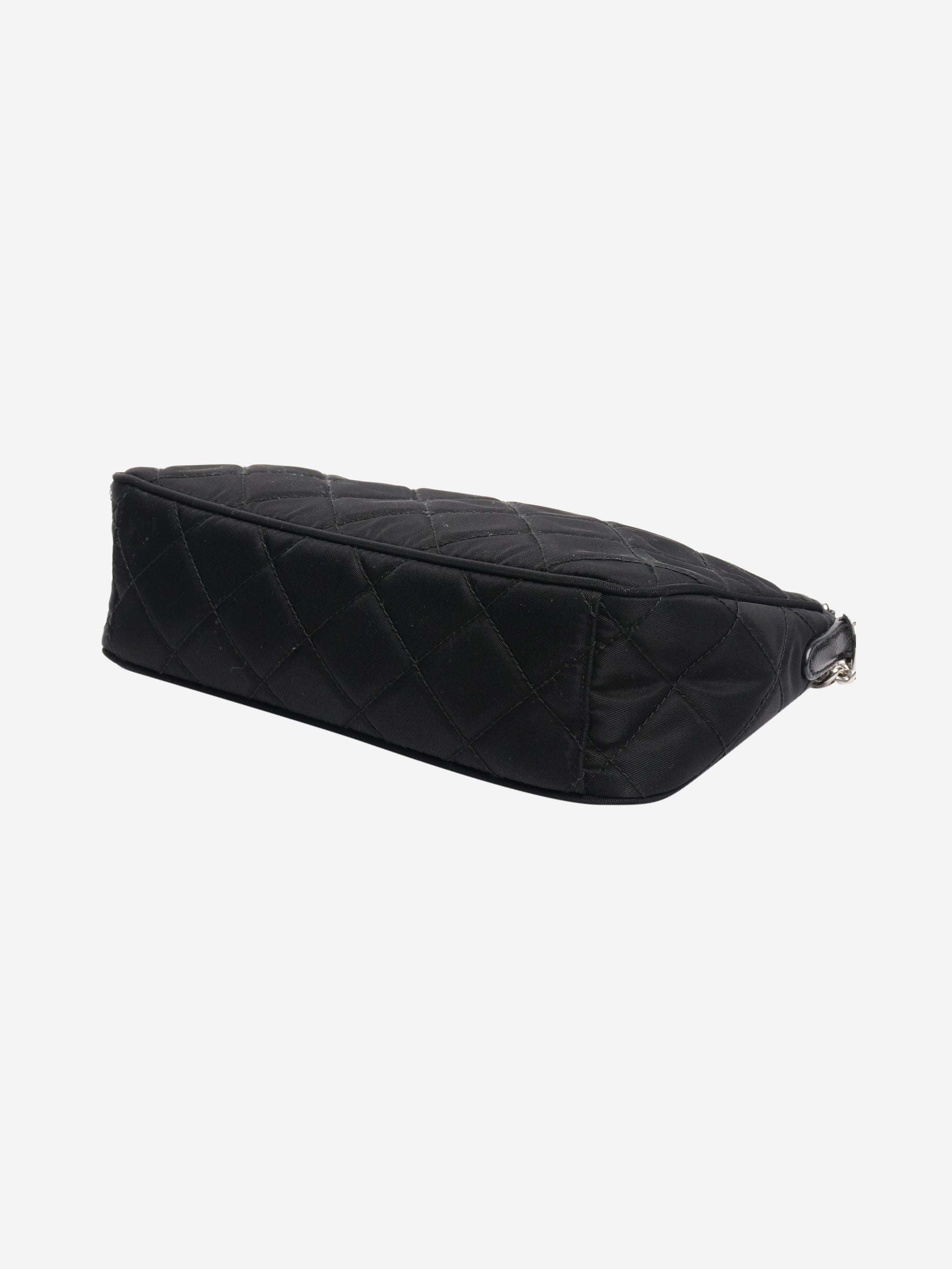 Black diamond stitching nylon shoulder bag