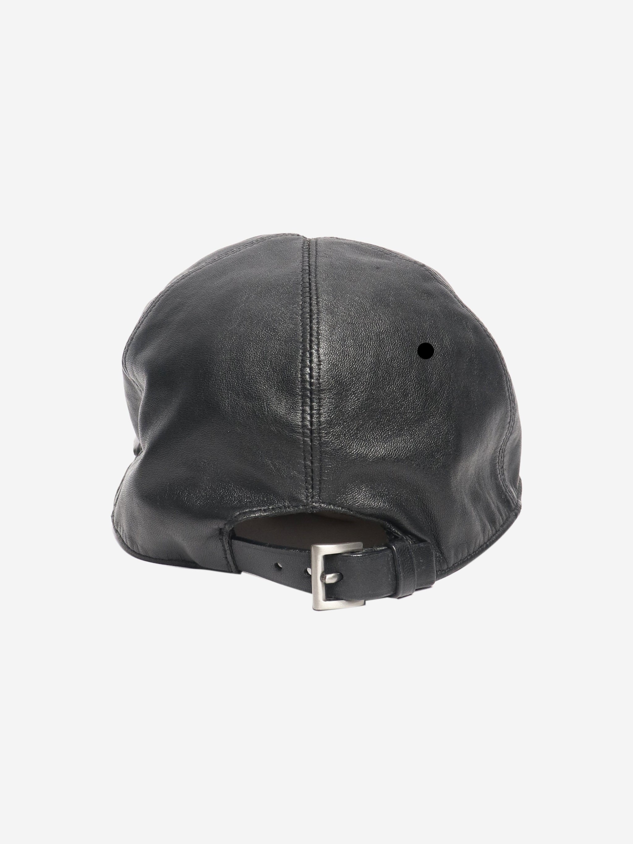 Black leather baseball cap