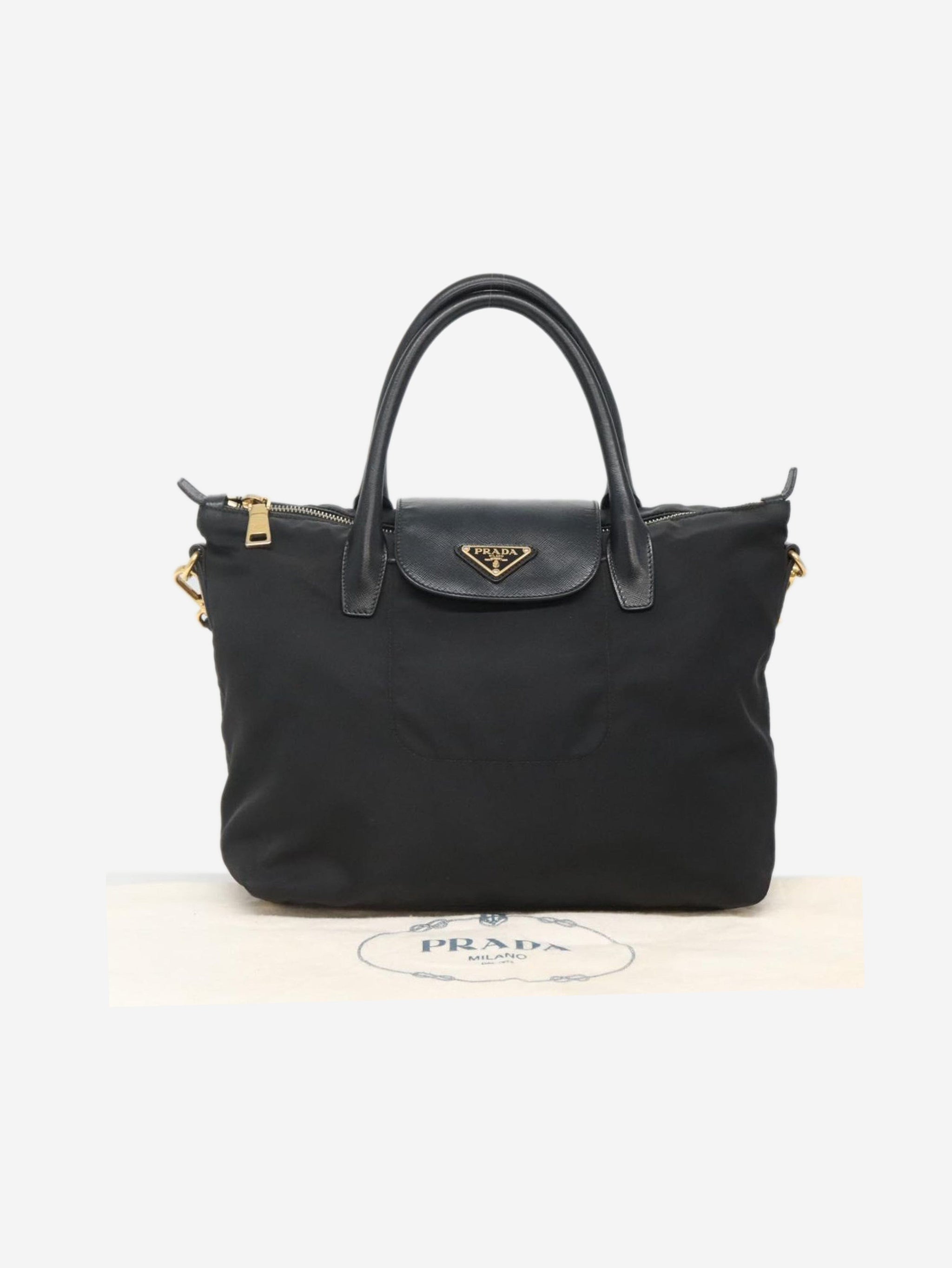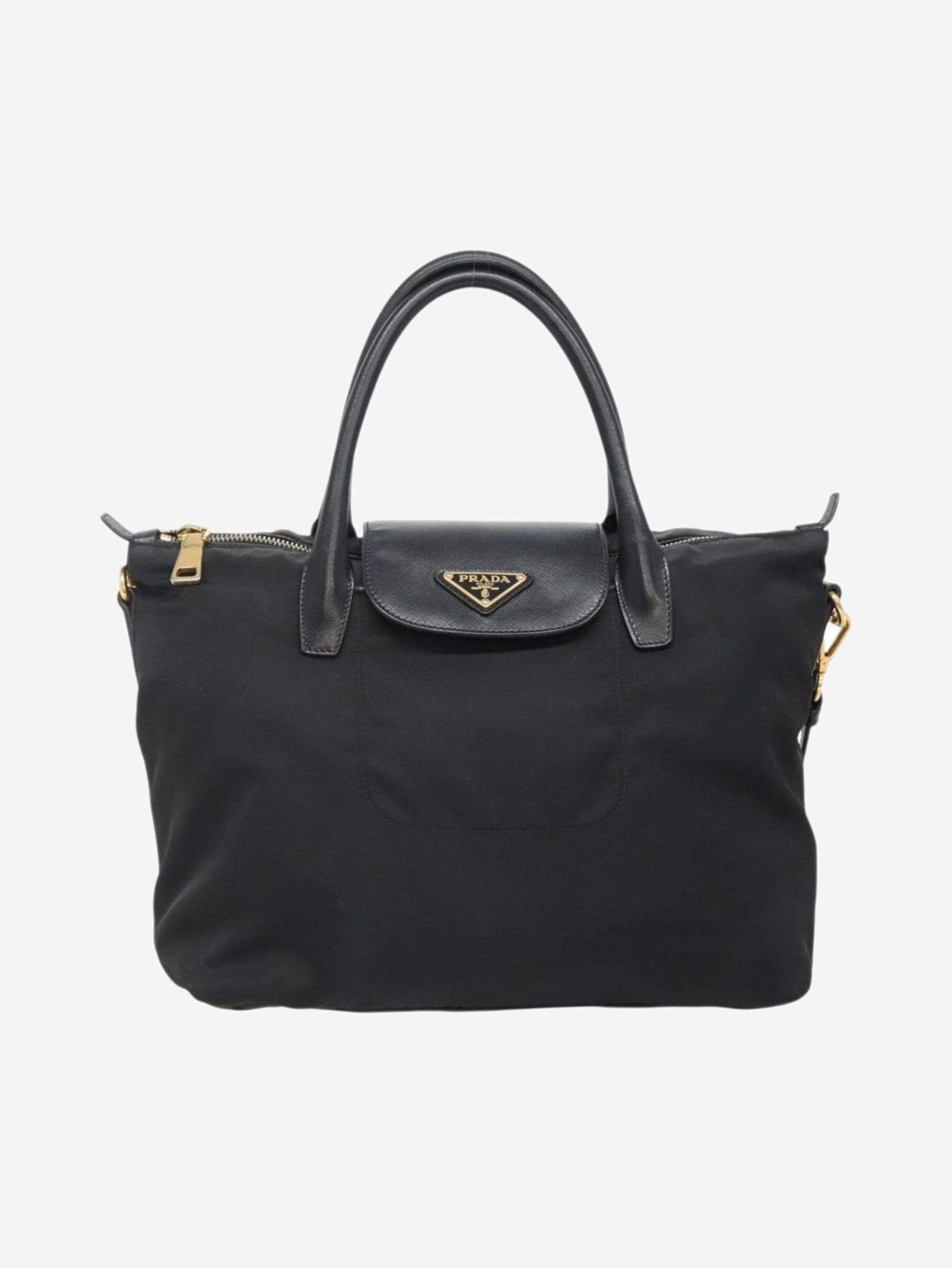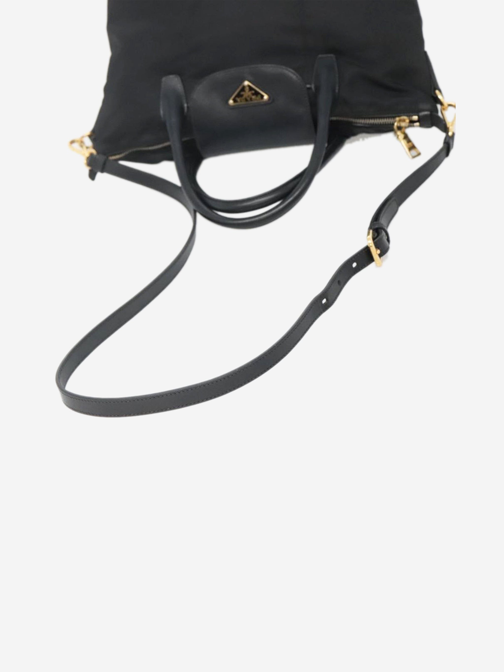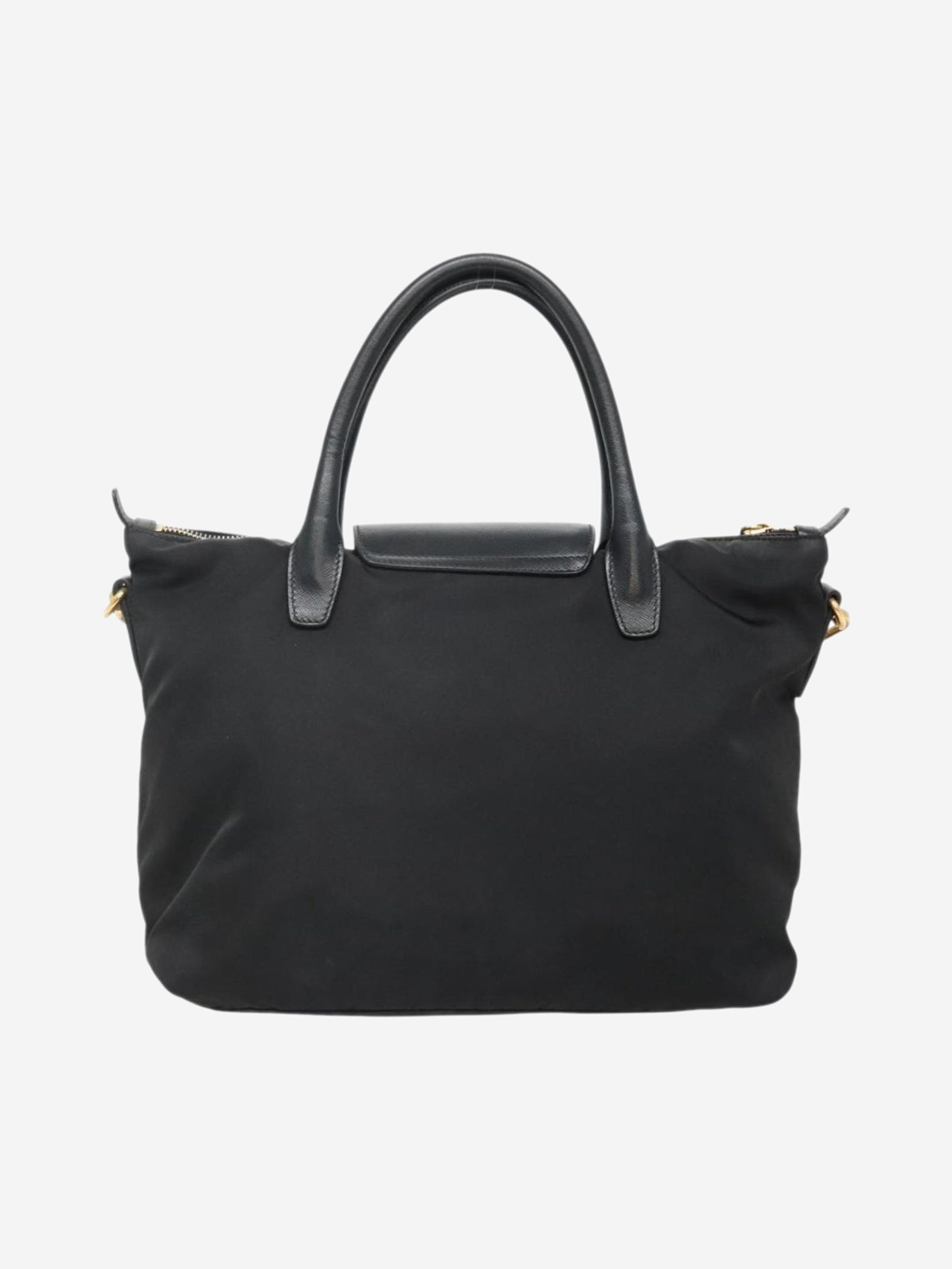 Black nylon 2way tote bag