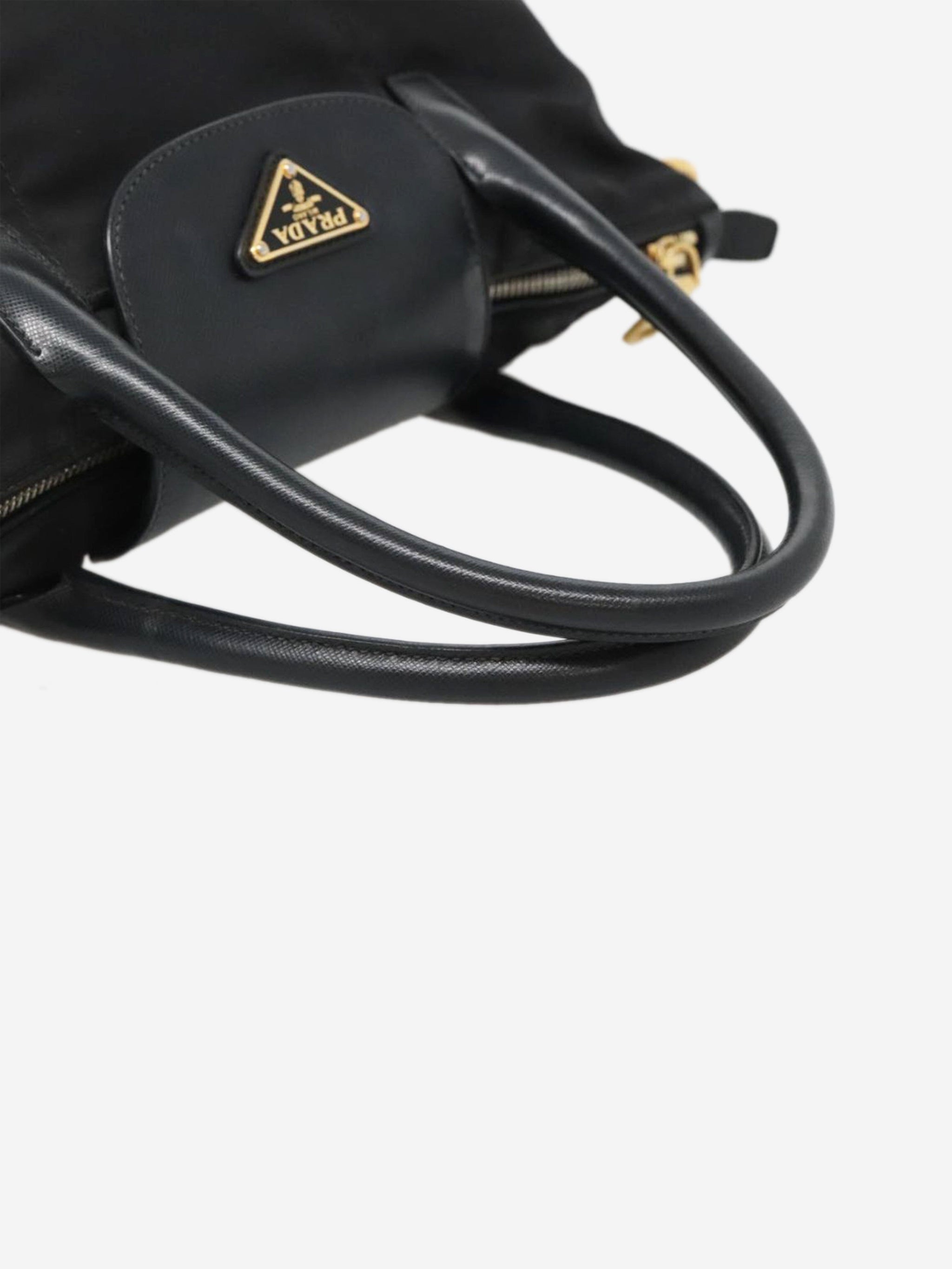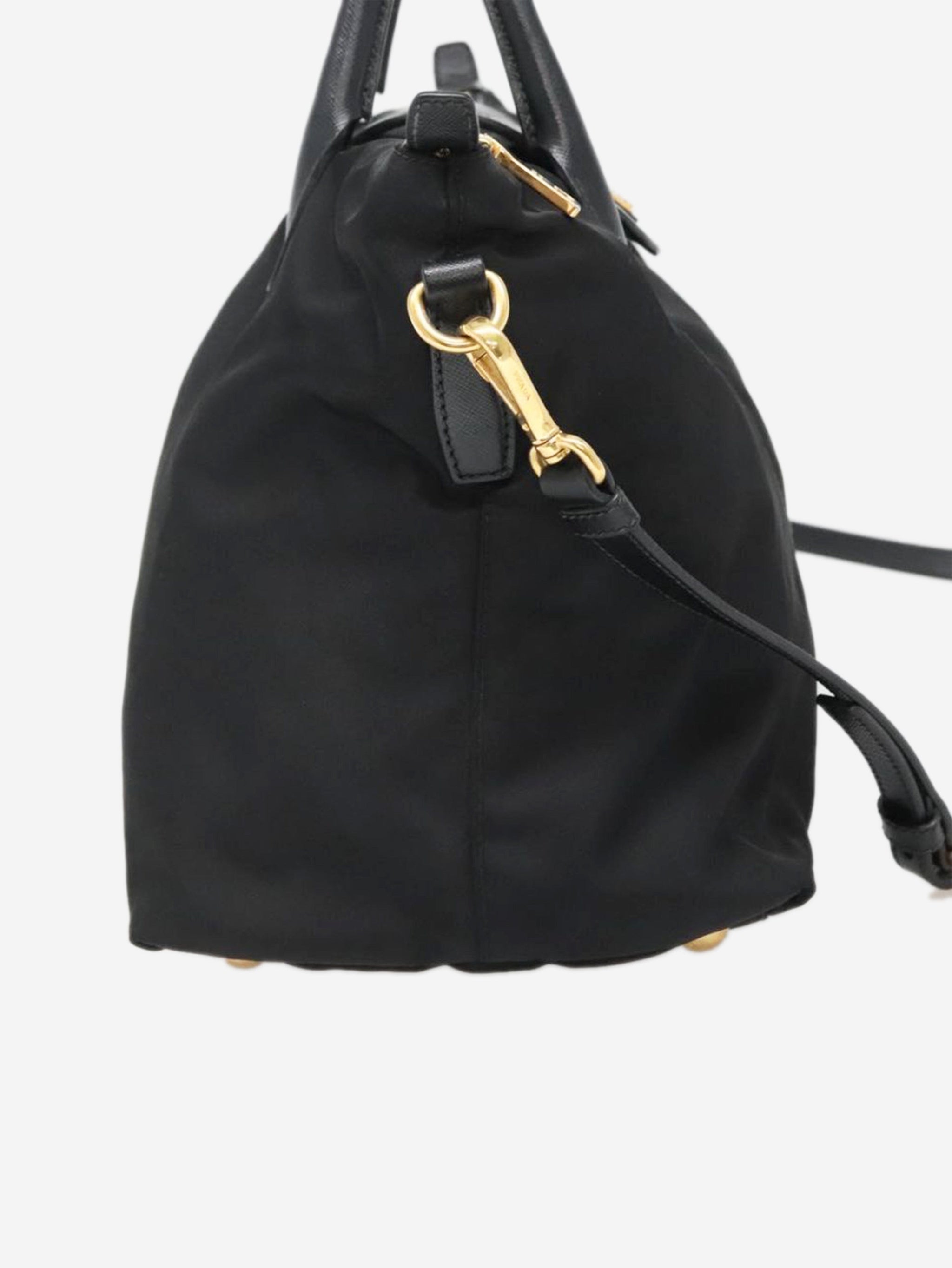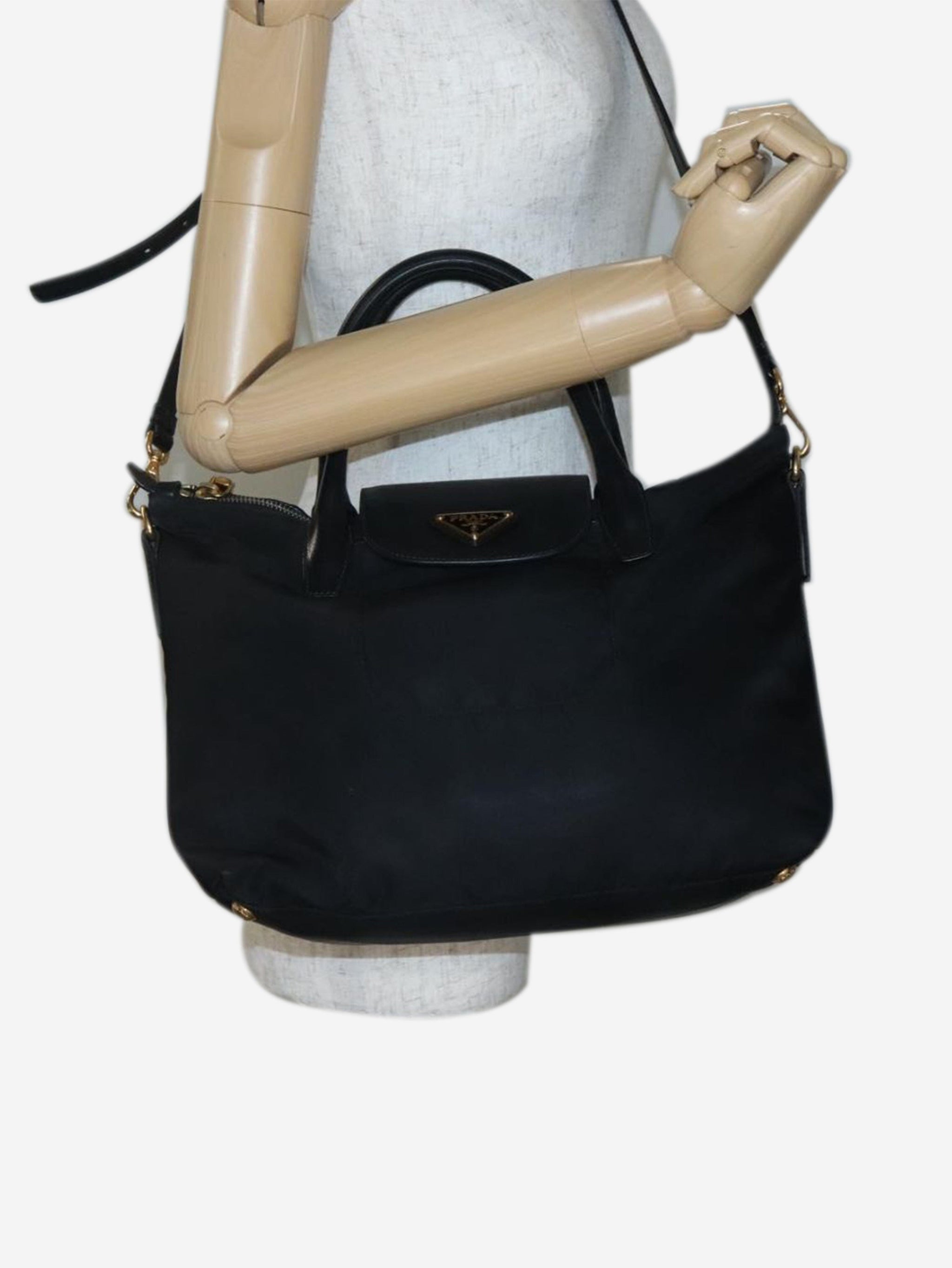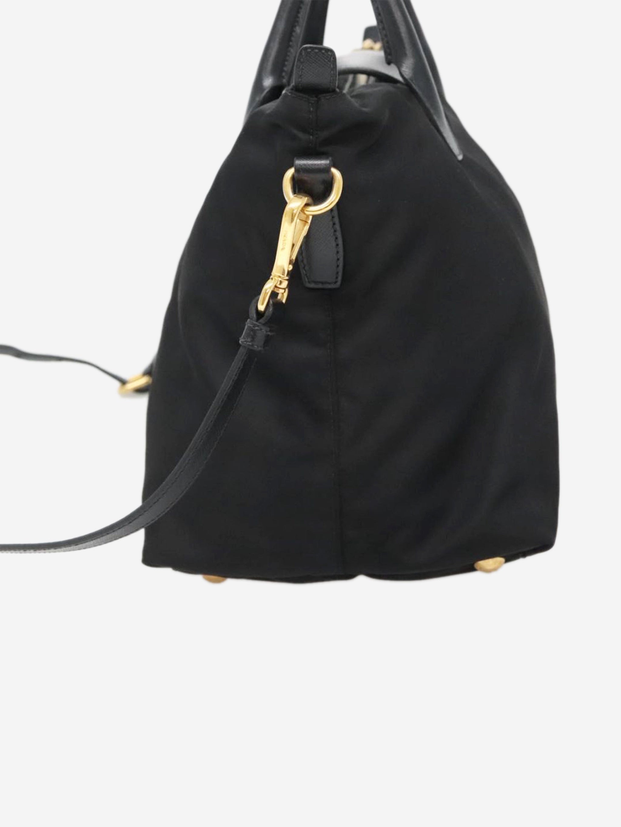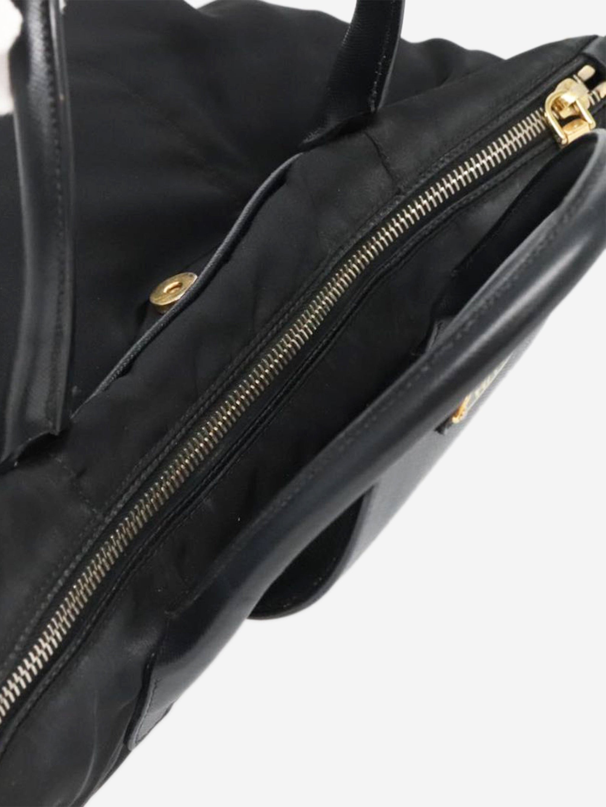 Black nylon 2way tote bag