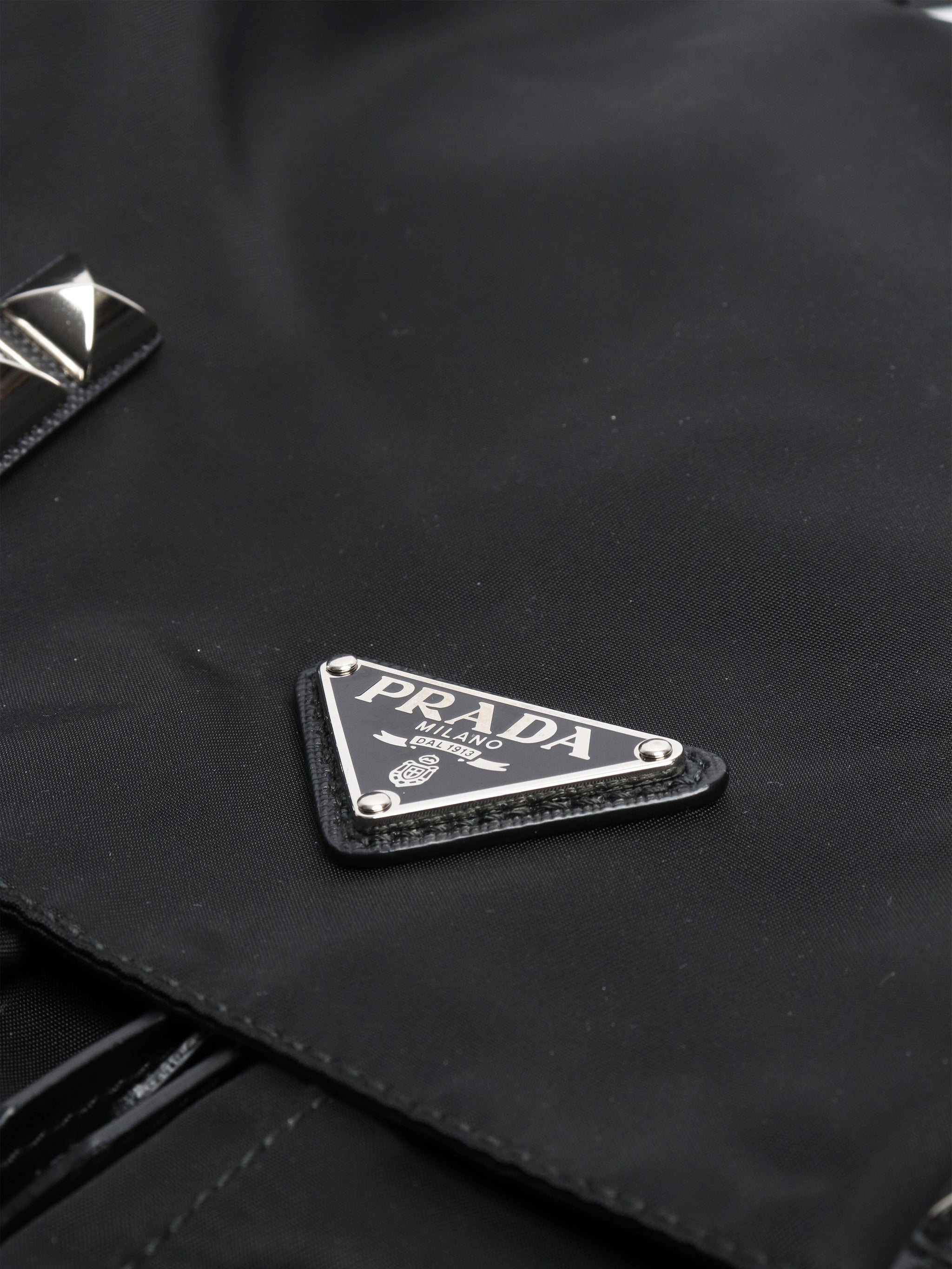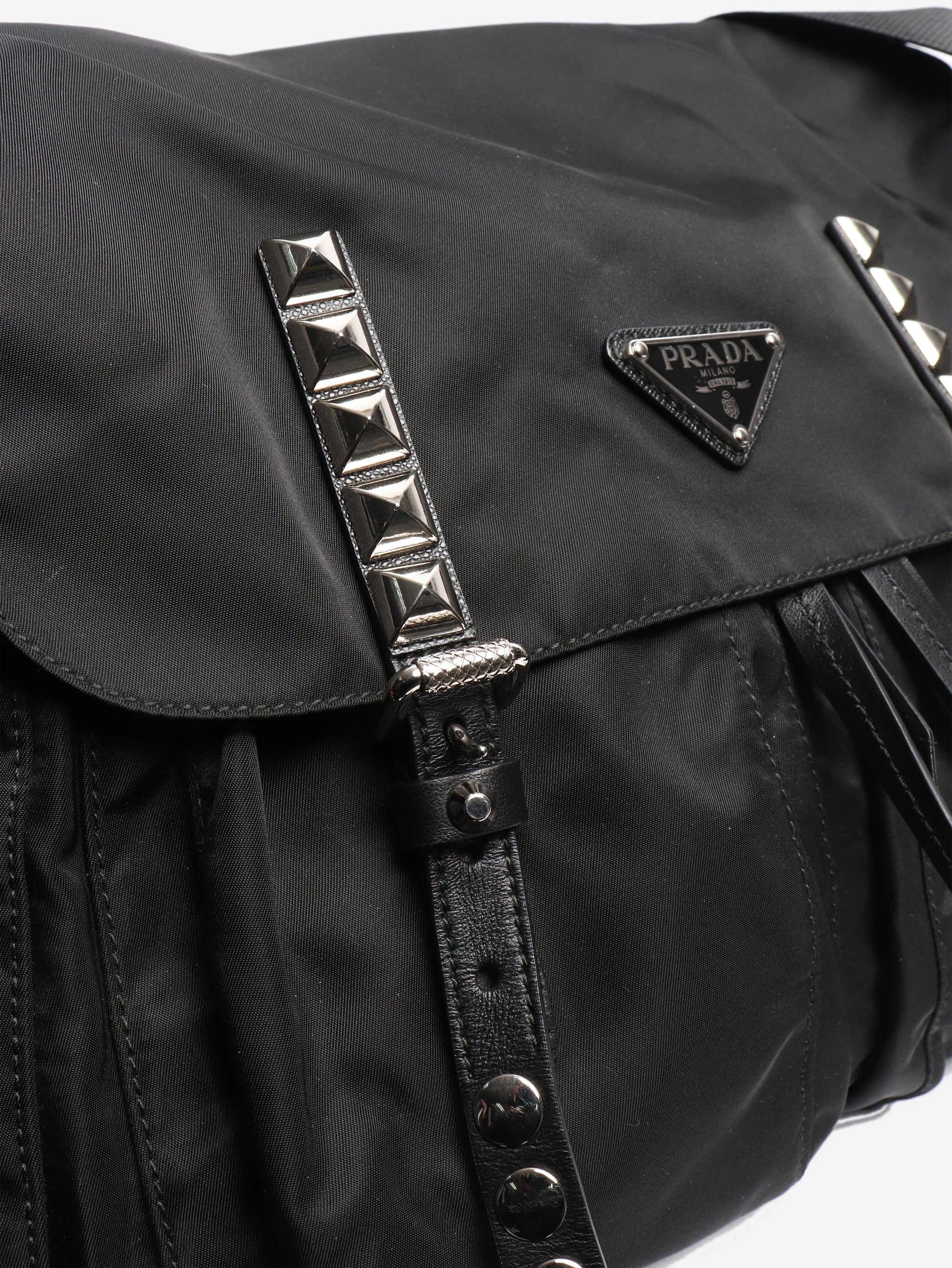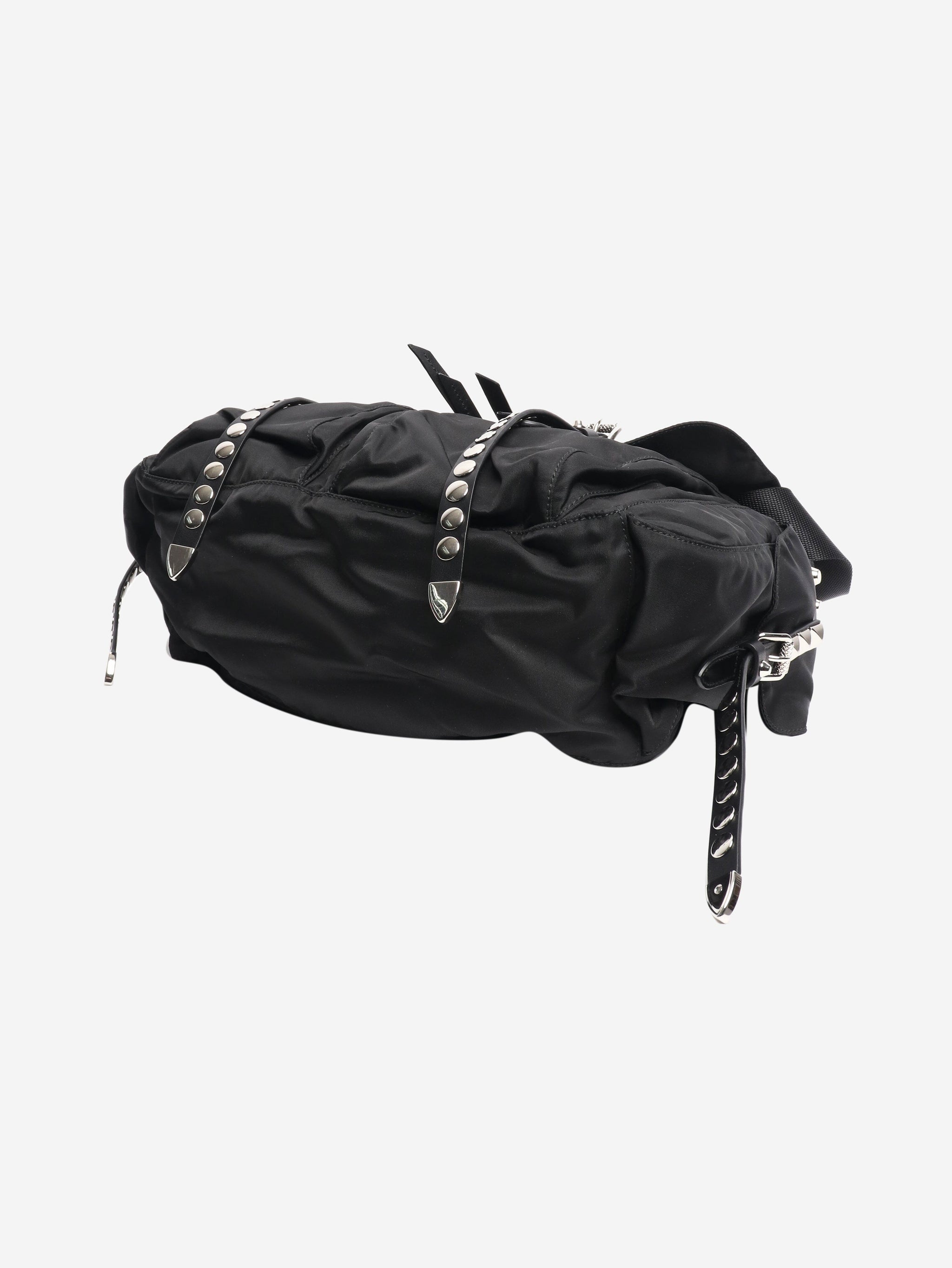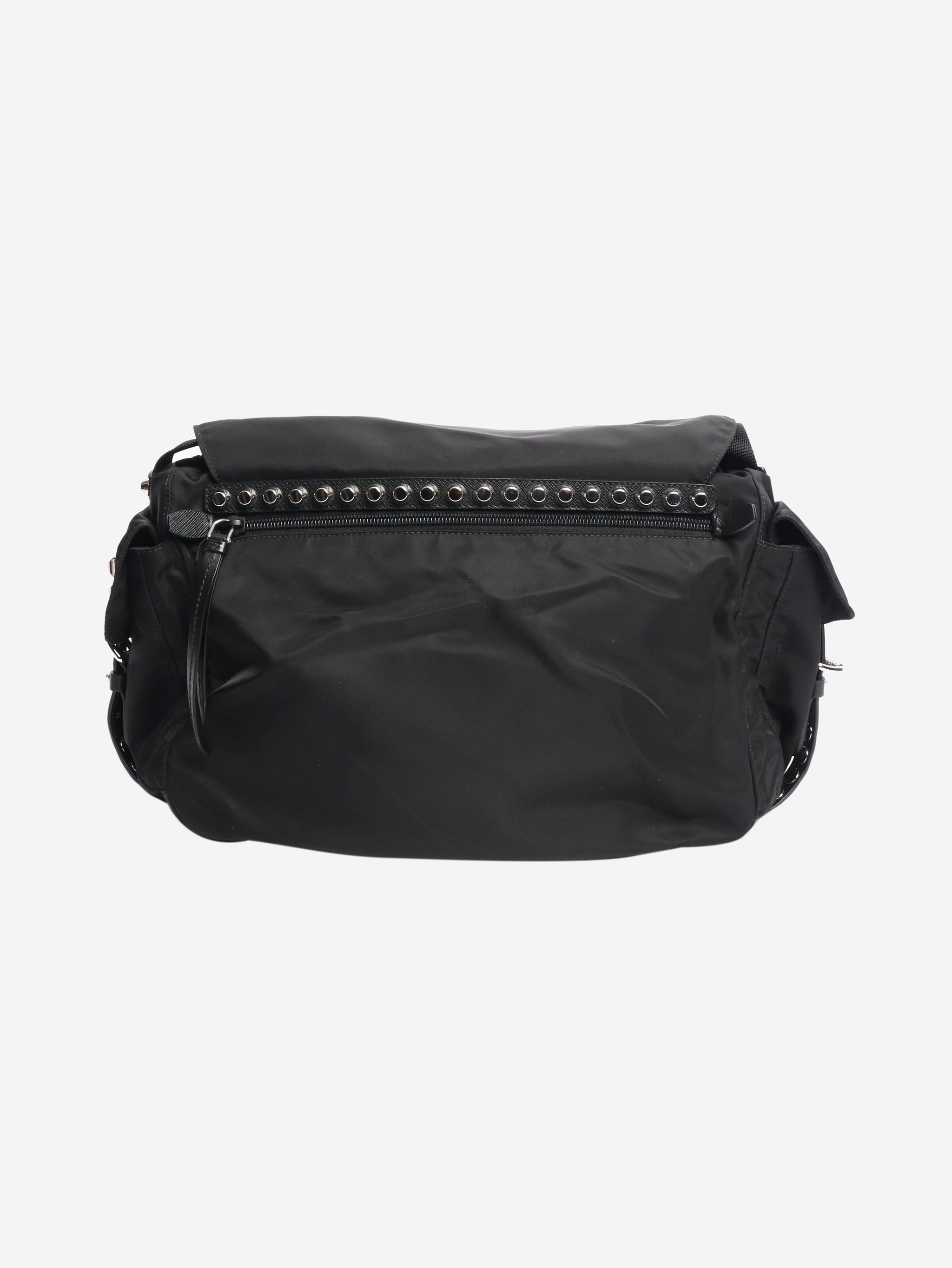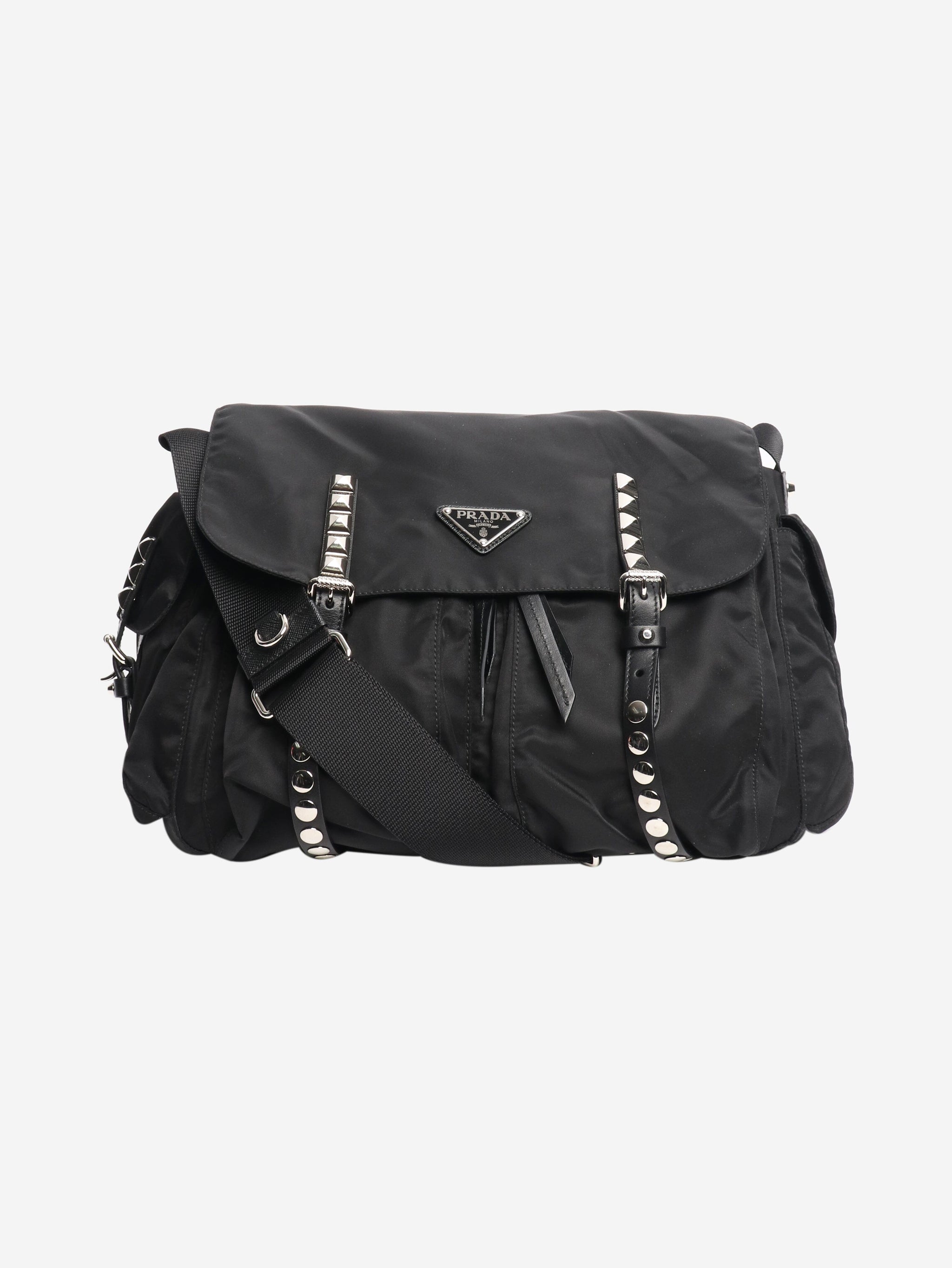 Black nylon studded messenger bag