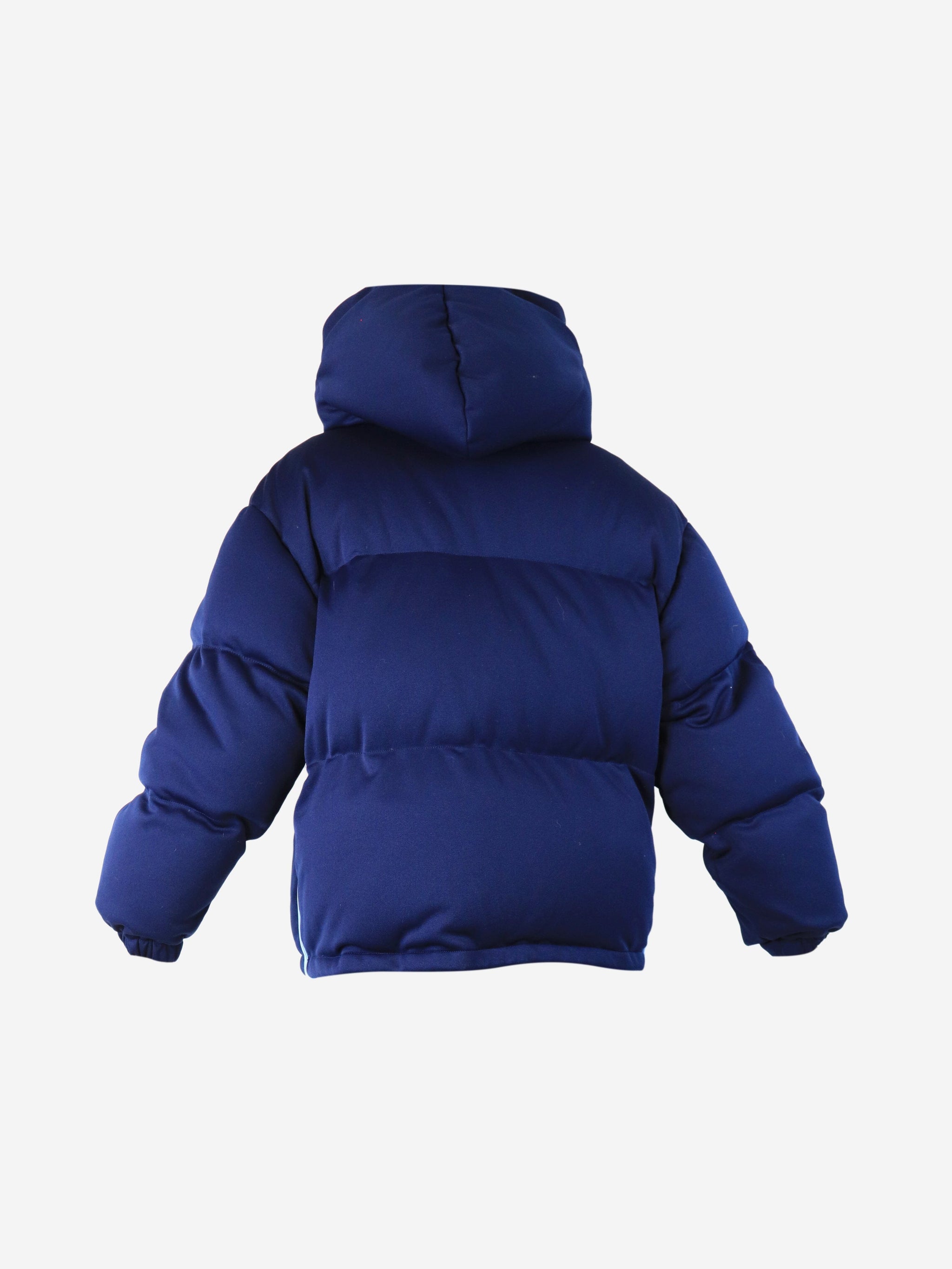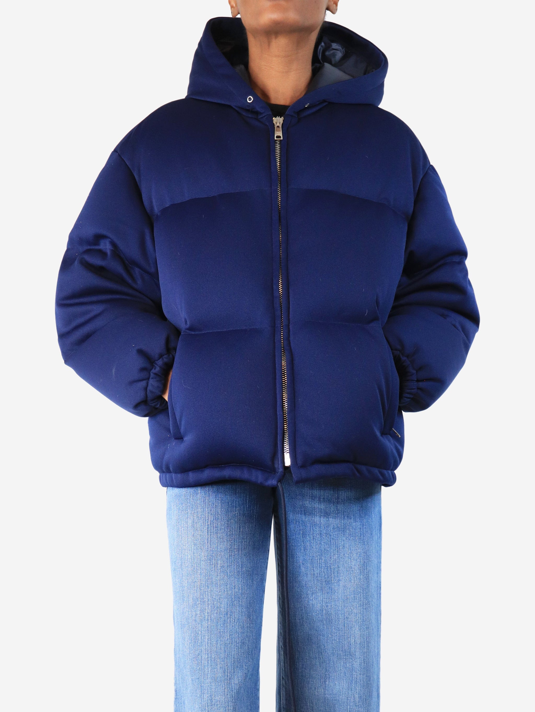Blue hooded puffer jacket - size UK 6